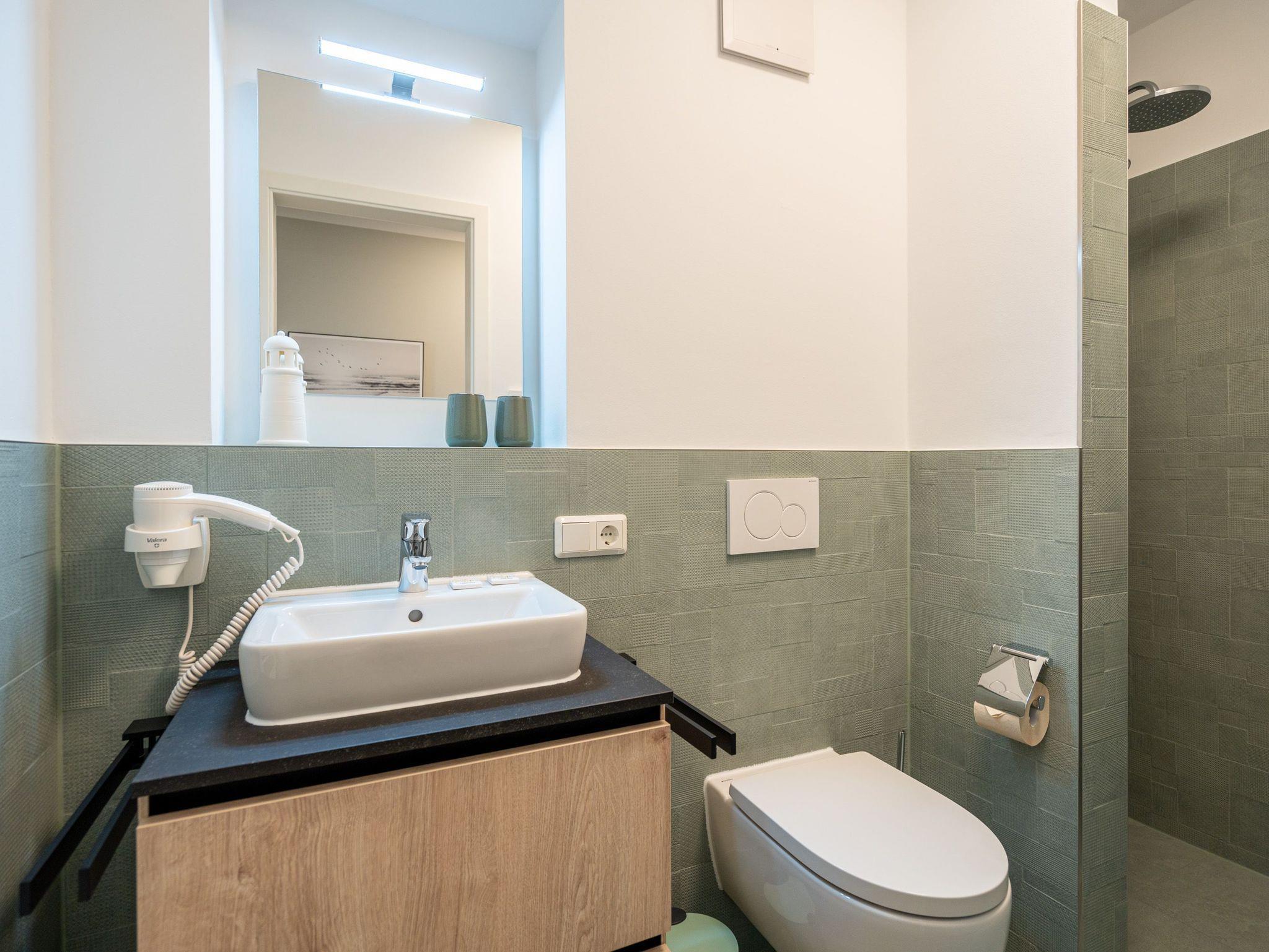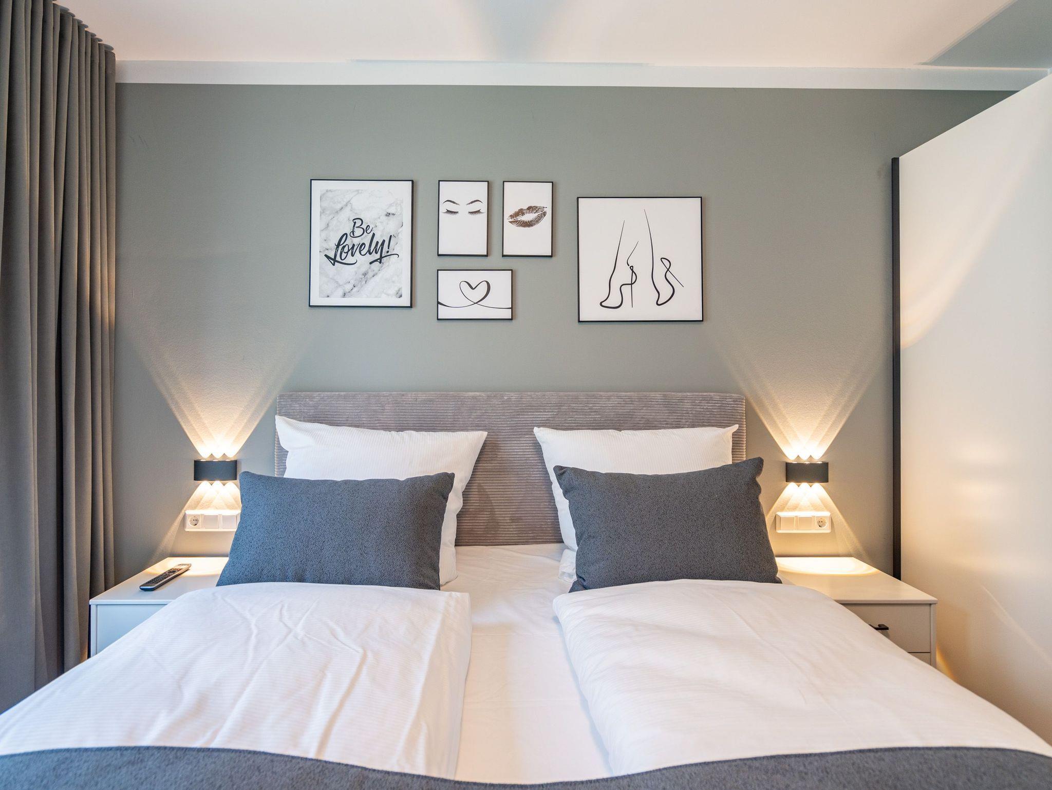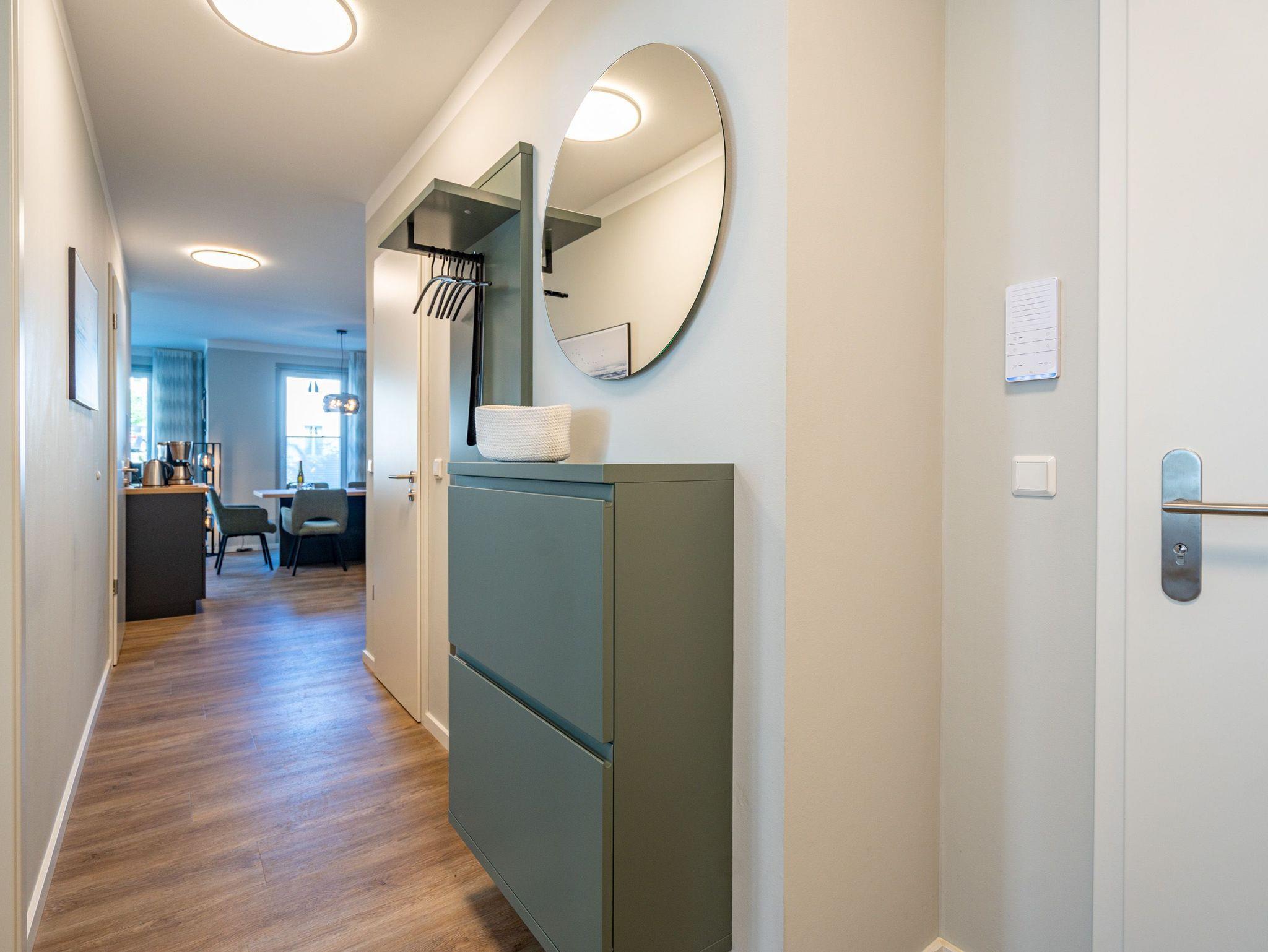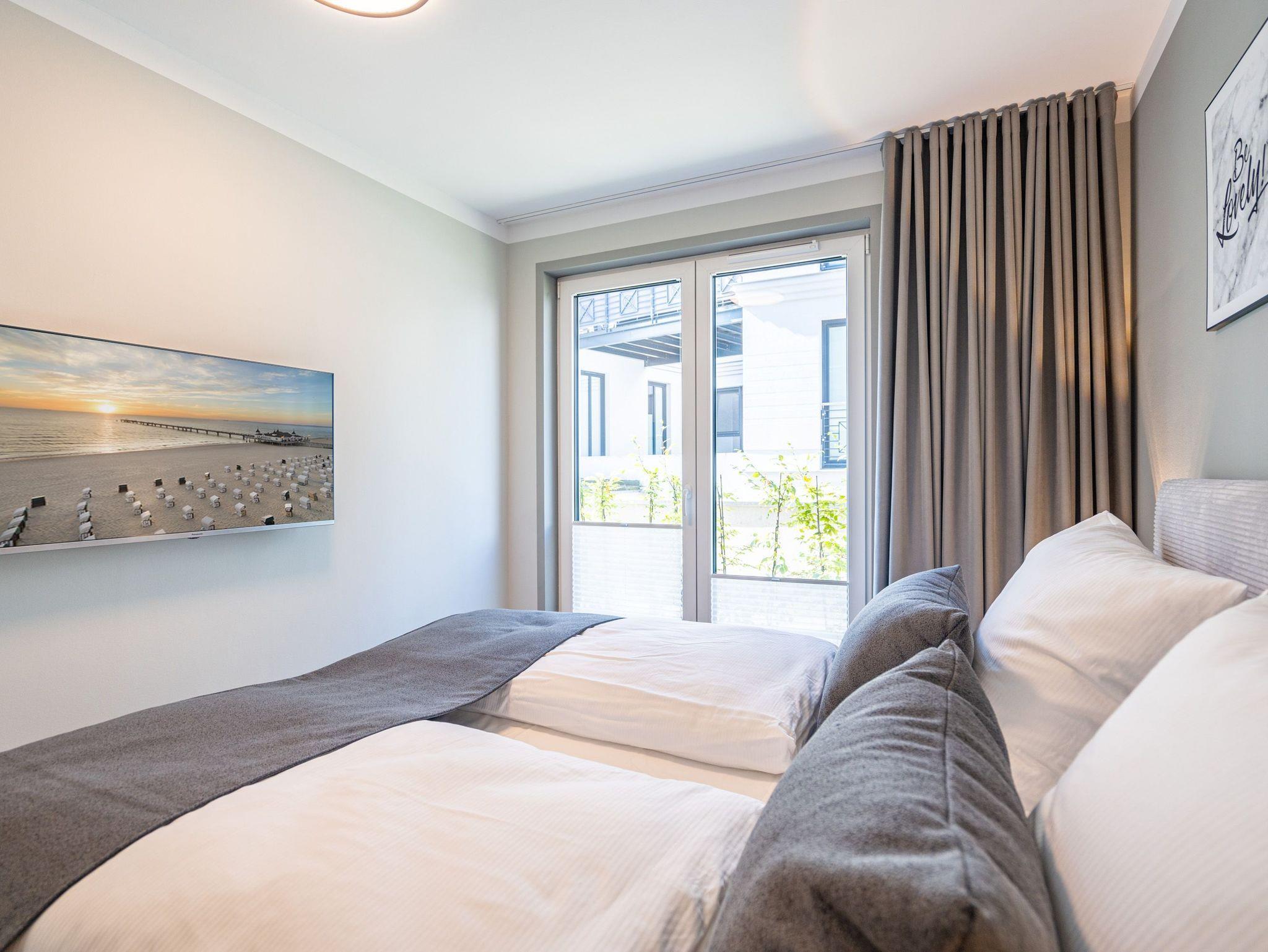 Herzlich willkommen in unserem 3-Raum-Appartement N° 1 im Erdgeschoss des Quartier 6! Auf 72 Quadratmetern bietet dieses gemütliche Domizil Platz für bis zu 4 Personen. Der offene Wohnbereich lädt mit einer voll ausgestatteten Küchenzeile, einem Essplatz für 4 Personen und einer gemütlichen Sitzgruppe zum Verweilen ein. Ein Flat-TV mit 50 Zoll und ein Gas-Kamin mit Fernbedienung sorgen für entspannte Abende. Von hier aus haben Sie direkten Zugang zur Nord-West-Terrasse, die mit Gartenmöbeln und einem Strandkorb ausgestattet ist. Die beiden Schlafzimmer sind mit komfortablen Boxspringdoppelbetten (1,80 m x 2,00 m), Kleiderschränken und weiteren Flat-TVs ausgestattet und garantieren erholsamen Schlaf. Für Ihr Wohlbefinden sorgen zudem zwei moderne Duschbäder, eines davon mit einer Finnischen Sauna ? ideal für entspannte Stunden nach einem ereignisreichen Tag. Zu Ihrer Unterkunft gehört ein PKW-Stellplatz in der Tiefgarage sowie ein eigener Abstellraum für Fahrräder. Selbstverständlich steht Ihnen kostenfreies WLAN zur Verfügung, sodass Sie auch im Urlaub stets verbunden bleiben können. Wir freuen uns darauf, Sie in unserem Appartement willkommen zu heißen!