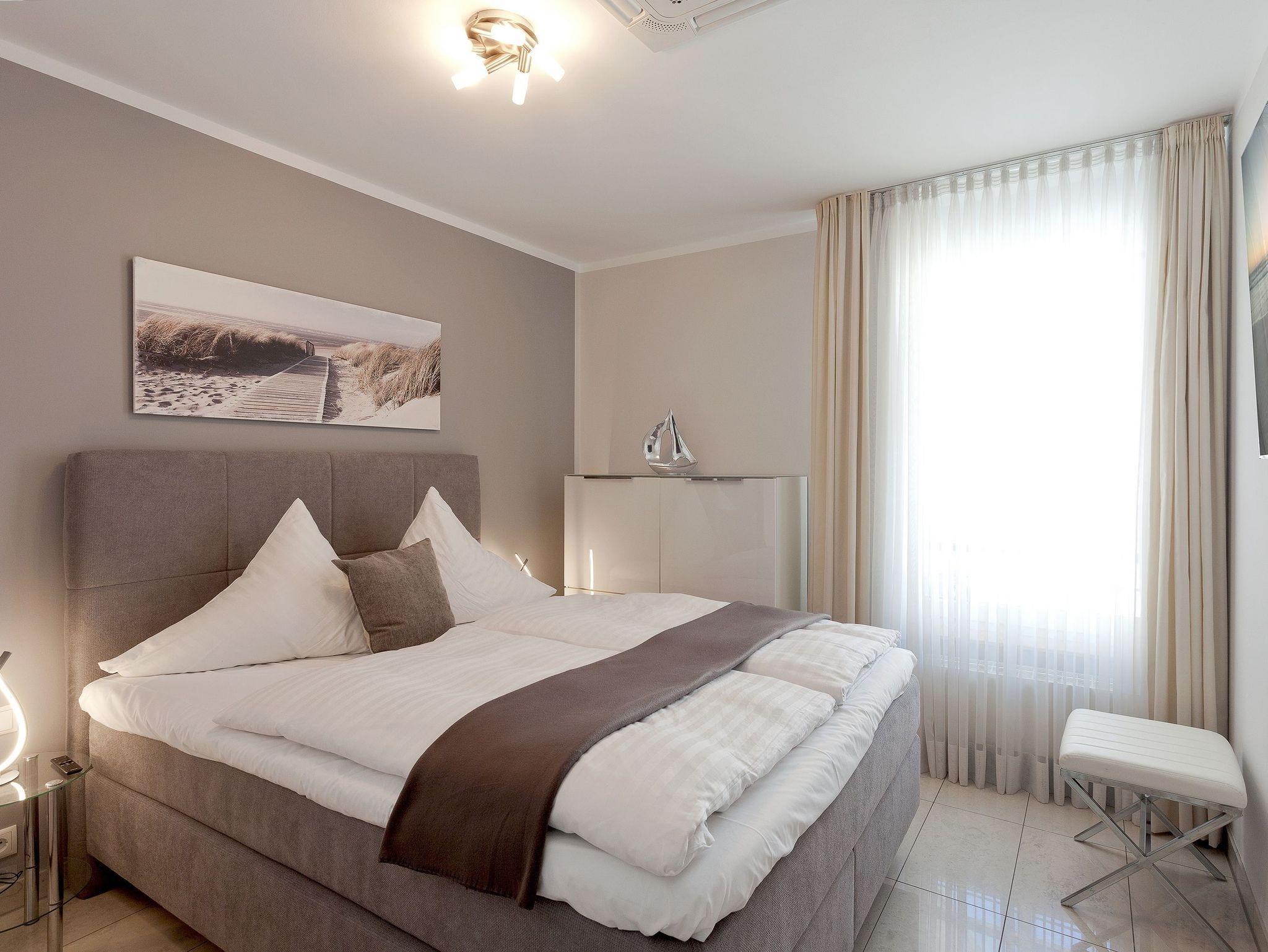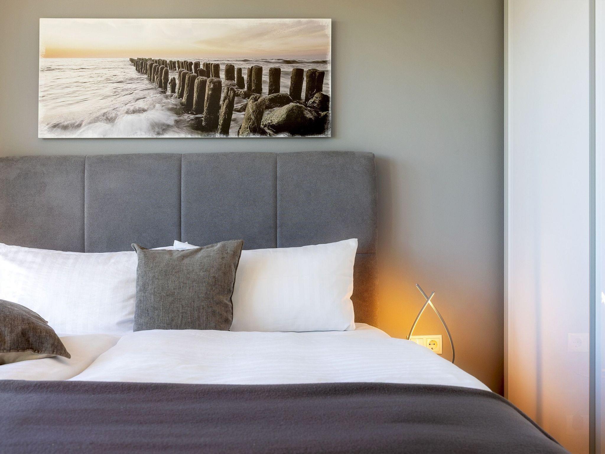 Vom Wohnbereich aus erreichen Sie den Nordostbalkon, der einen wundervollen Blick auf das glitzernde Meer und die Ahlbecker Seebrücke preisgibt. Der Strandkorb bietet den idealen Ruheort. Das Schlafzimmer ist mit einem Boxspringbett (160 x 200cm / durchgehende Matratze) und einem geräumigen Schrank für Ihr Hab und Gut ausgestattet. Auch vom Schlafzimmer haben Sie eine wundervolle Sicht auf die Ostsee und die Möglichkeit auf den Balkon zu gelangen. Das zweite Schlafzimmer ist ebenfalls mit einem hochwertigen Boxspringbett (160 x 200cm / zwei getrennte Matratzen) ausgestattet. Alle Wohn- und Schlafräume verfügen über einen Flat TV. Das exquisite Badezimmer besitzt eine bodengleiche Echtglasdusche, ein WC und ein Haartrockner sowie einen großen Waschtisch mit zwei Wasserhähnen und viele kleine Extras.
