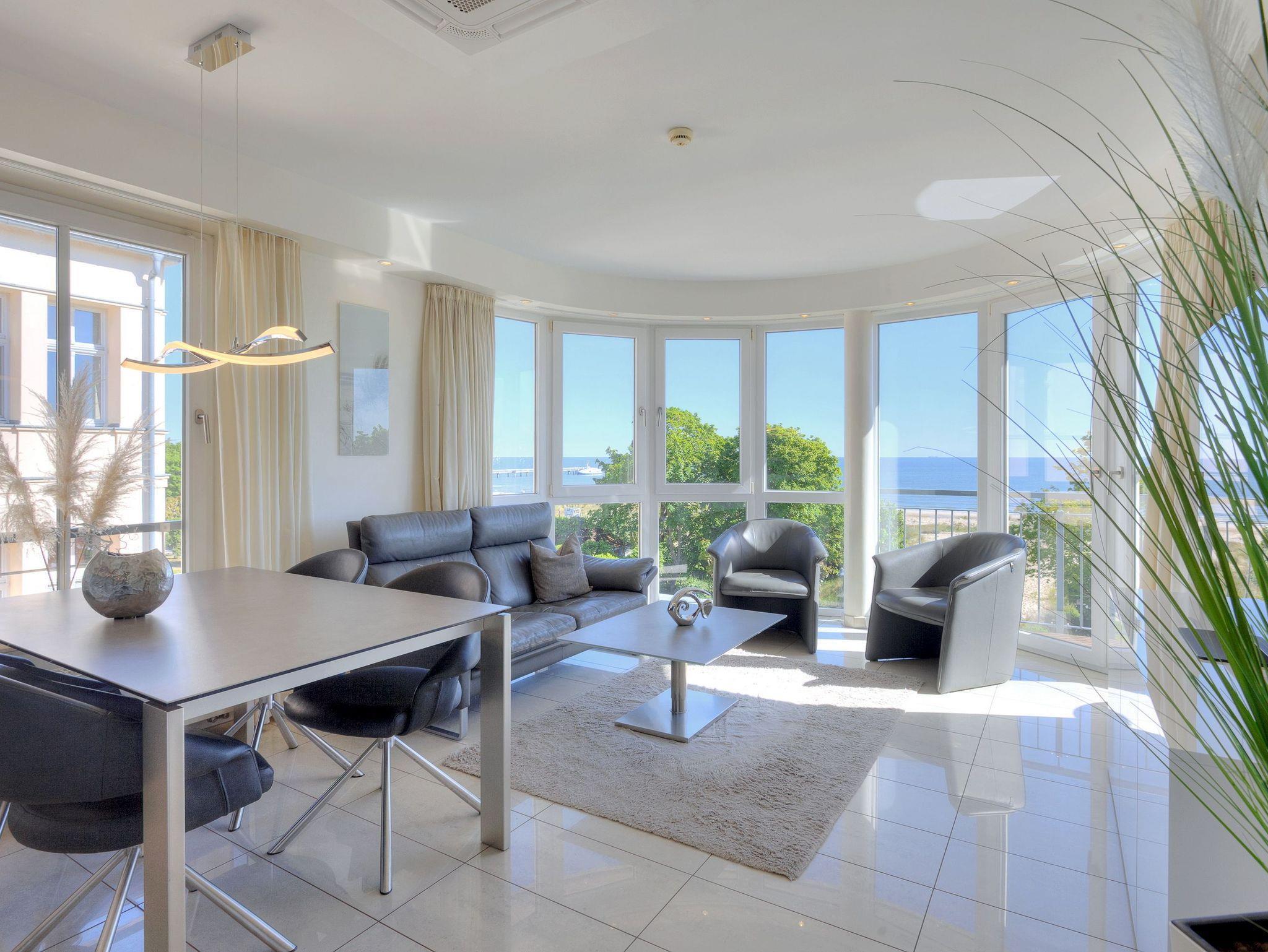 Das 55 Quadratmeter große 3-Zimmer-Appartement ist im 2. Obergeschoss der Villa Louise gelegen und das ideale Urlaubsdomizil für Familien. Bis zu vier Personen haben in dem luxuriösen Appartement Platz. Der kombinierte Wohn- und Kochbereich ist mit viel Liebe zum Detail eingerichtet und wartet mit jeglichen Raffinessen auf, die das Herz begehrt. Der Fußboden ist aus hochwertigem Feinsteinzeug gefertigt und mit einer Fußbodenheizung versehen. Die Klimaanlage sorgt stets für die richtige Wohlfühltemperatur. Die integrierte Küchenzeile verfügt über Induktionkochfeld, Mikrowelle, Backofen, Spülmaschine, Kühlschrank mit Gefrierfach, Wasserkocher, Toaster, Kaffeemaschine, so dass Sie für die Zubereitung Ihrer Lieblingsspeisen alle Utensilien zur Hand haben. Der Wohnbereich lockt mit einer edlen Ledersitzecke, in der Sie sich entspannen können und von der Sie einen einzigartigen Panoramablick auf die Ostsee genießen.