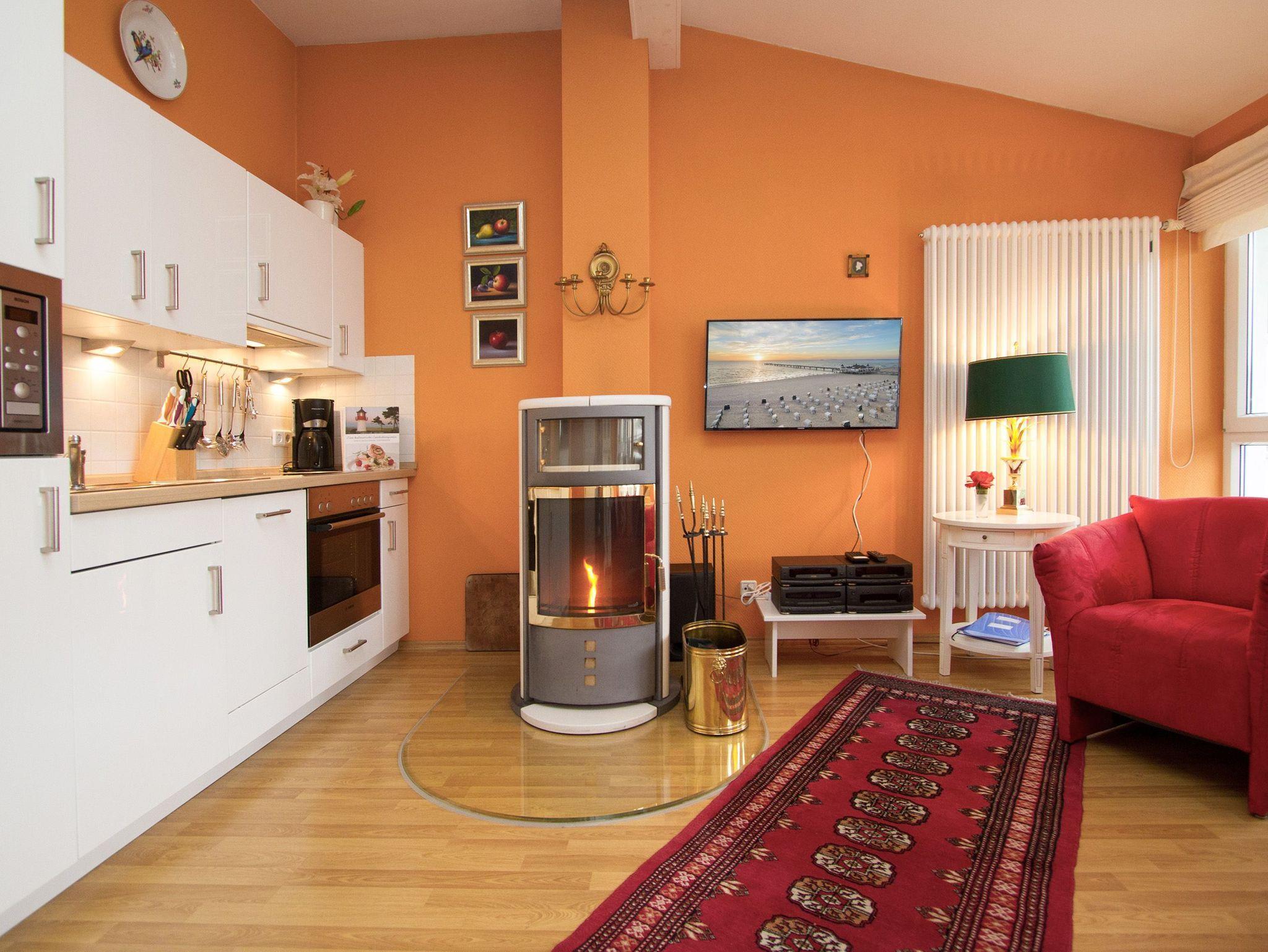 Die Ferienwohnung 13 in der Residenz Bismarck empfängt Sie in der obersten Etage des Hauses. Hier erfahren Sie einen besonderen Wohnstil. Ausgesuchte Stilmöbel kombiniert mit harmonierenden Farben und Stoffen werden Sie begeistern. Ihr Wohnbereich ist mit einer komplett ausgestatteten Küchenzeile, einem separaten Essplatz und Kamin eingerichtet. Vom Wohnbereich gelangen Sie auf den Balkon, auf dem Sie die Nachmittags- und Abendsonne genießen. Für Ihren Komfort ist die Erstausstattung Bettwäsche bezogen und die Handtücher liegen bereit.