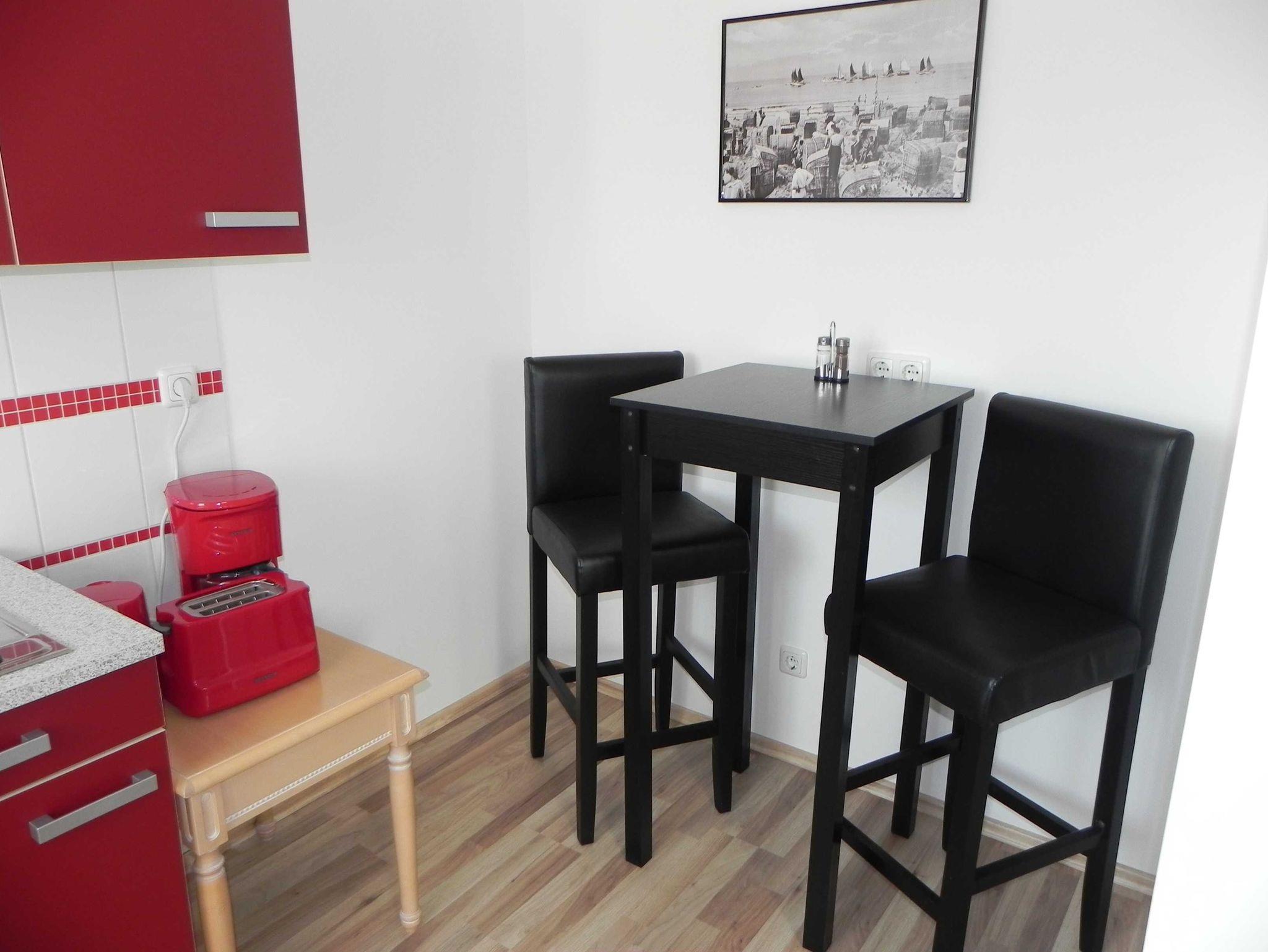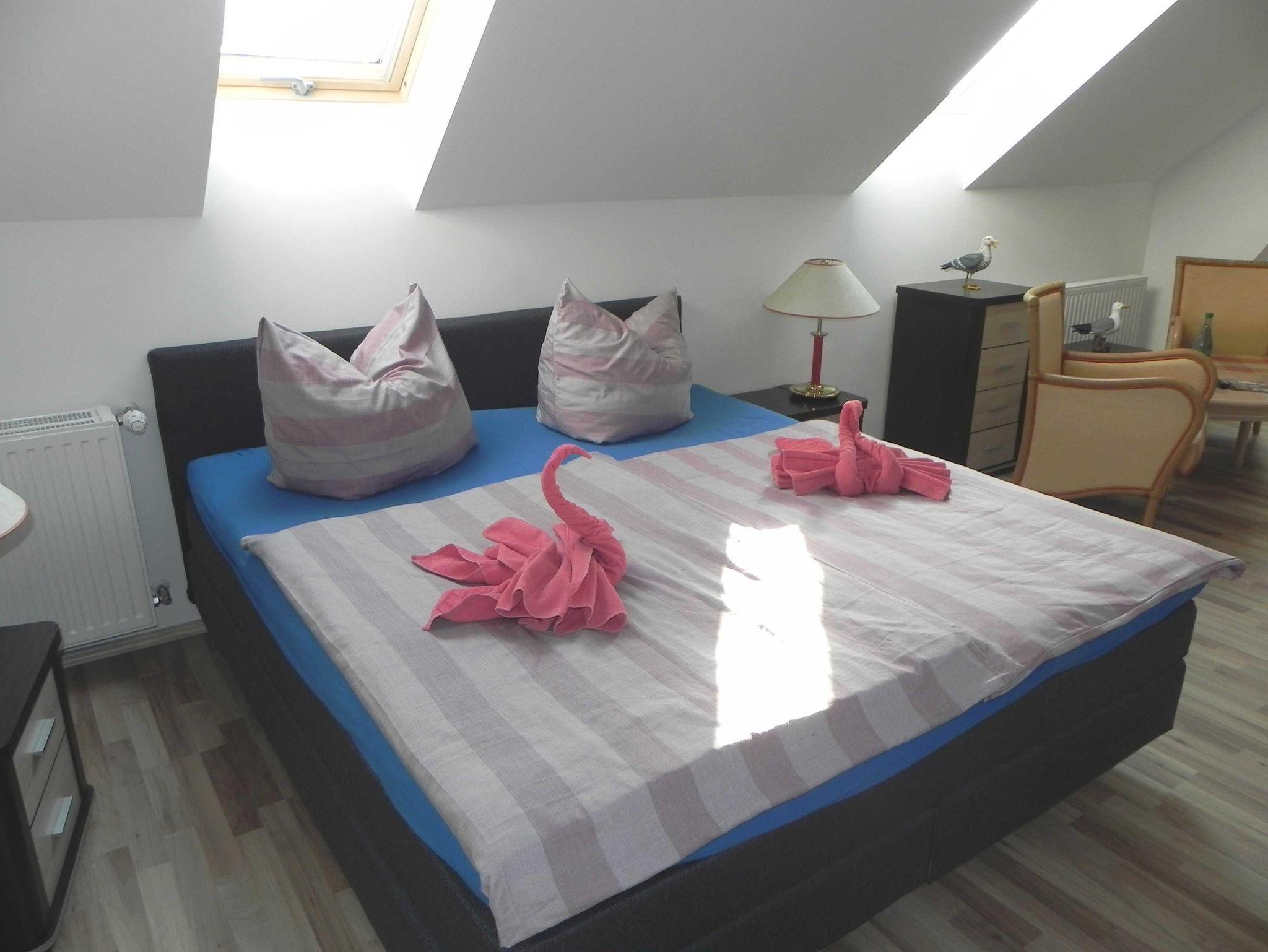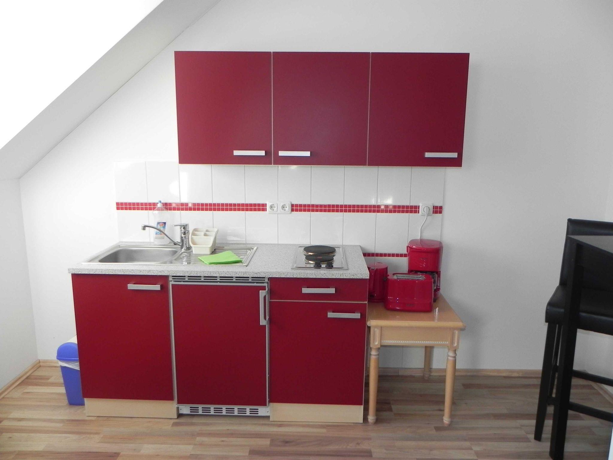 Die ca. 30 qm große neu renovierte 1 Raum Ferienwohnung befindet sich im Dachgeschoss und ist ideal für 2 Personen geeignet. Der Schlafbereich mit Doppelbett und Kleiderschrank befindet sich in dem offenen Wohnraum, optisch von der Sitzecke getrennt. Innerhalb der Ferienwohnung befindet sich eine kleine Küchzeile. Diese verfügt über 2 Kochplatten, Kühlschrank, Spüle, Wasserkocher, Toaster und Geschirr. Das große Bad mit Fenster verfügt über eine große Dusche und WC. Die Erstausstattung Bettwäsche und Handtücher ist im Preis enthalten.