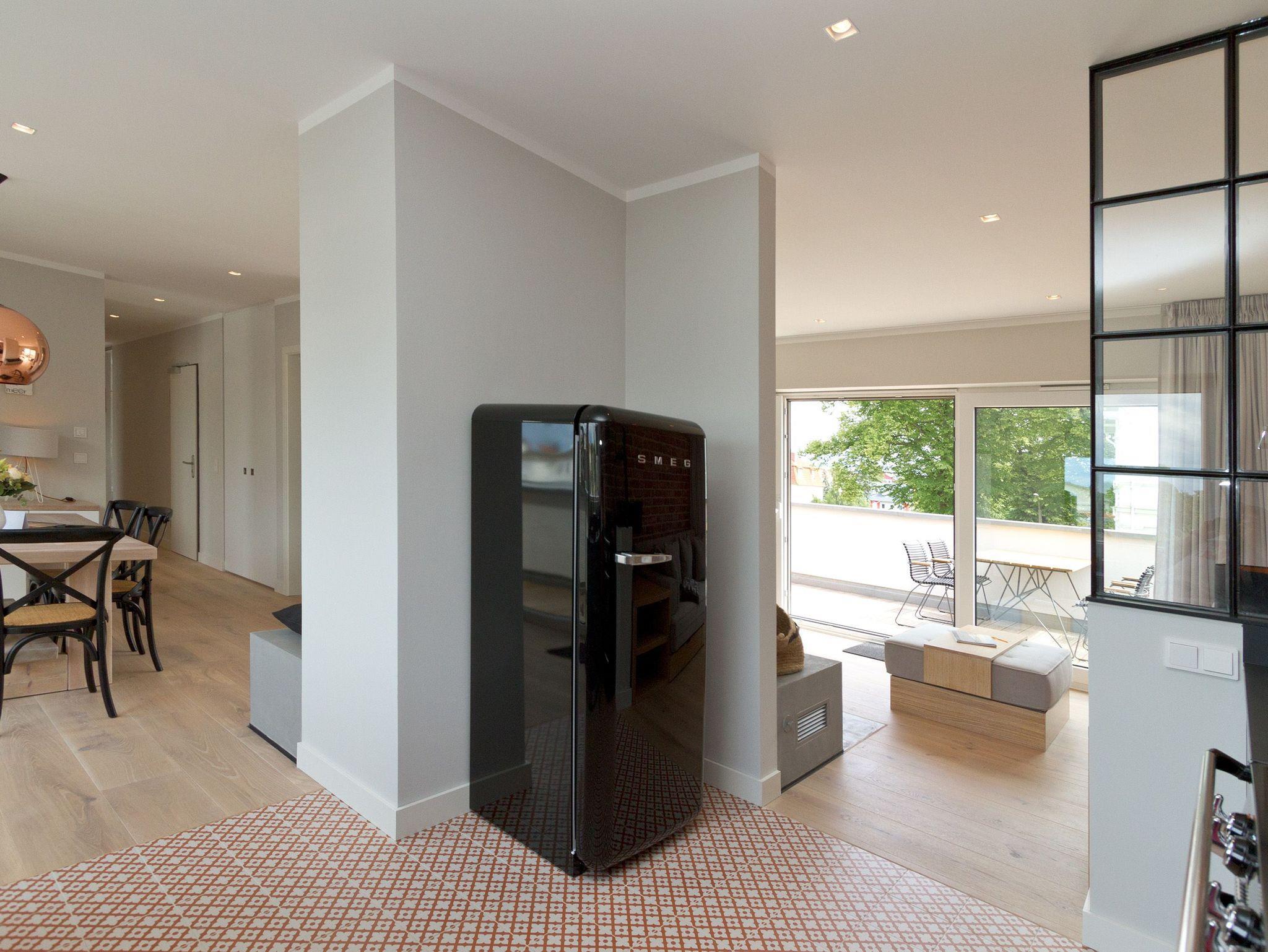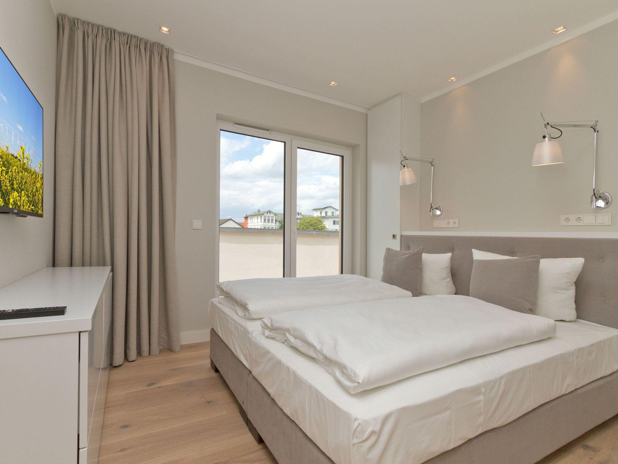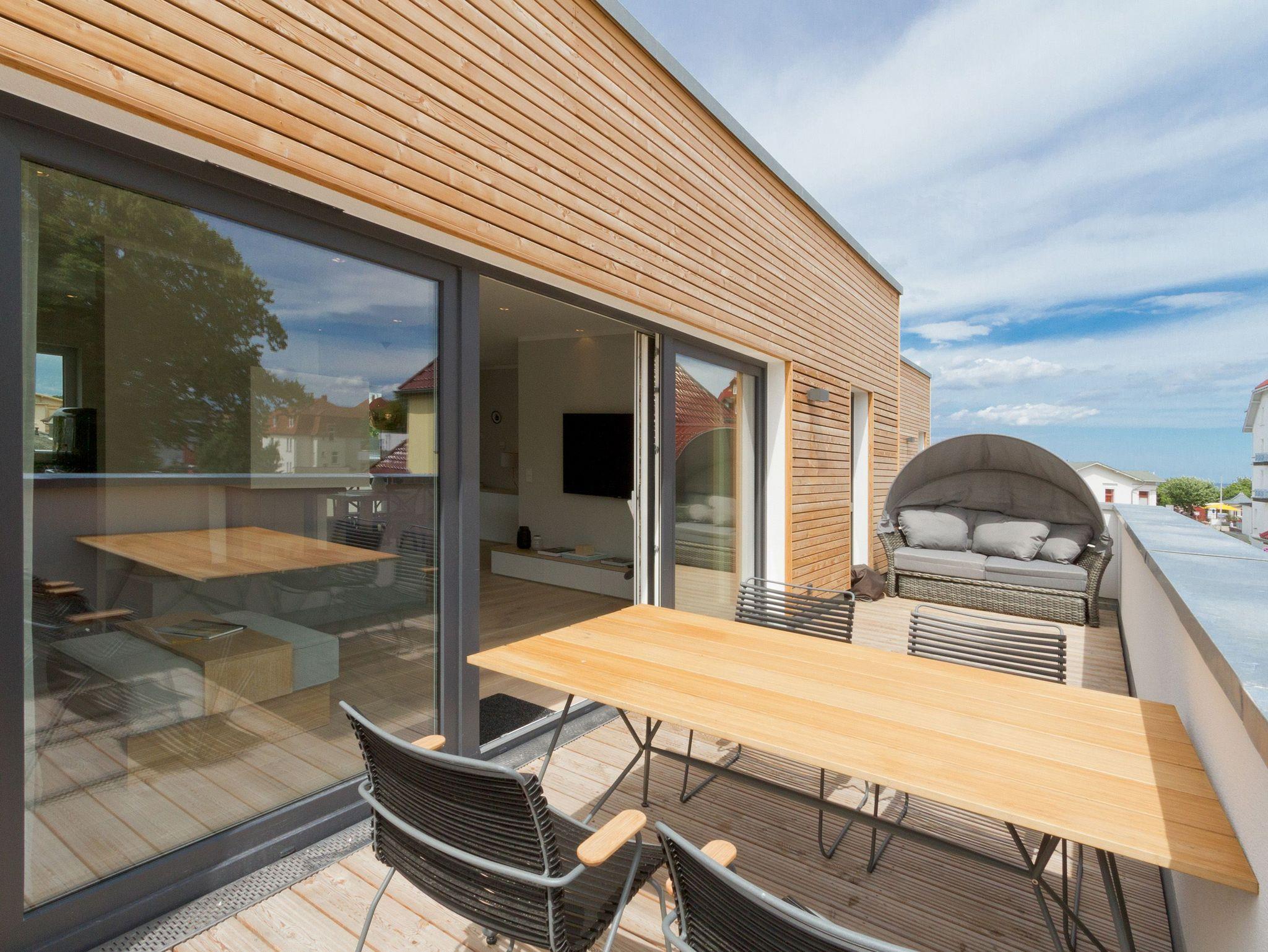 Ein Ahlbecker Quartier für Anspruchsvolle [&] Genießer! Unsere neue Penthousewohnung (3 Räume, 90 qm) wurde äußerst geschmackvoll und hochwertig von Interieur-Designern für Sie gestaltet. Die edle Farbgebung in Grautönen harmoniert perfekt mit rustikalen Steinwänden und mit der feinen Eichendielung. Die Möblierung wurde punktgenau umgesetzt: nichts ist zu viel, aber auch nichts zu wenig und wird durch zahlreiche Designerleuchten perfekt inszeniert. Mit dem Fahrstuhl gelangen Sie direkt in Ihr Domizil, in dem bis zu 4 Personen und ein Kleinkind (bis 3 Jahre im Babyreisebett) urlauben können. Ihre eindrucksvolle Luxusküche mit Geräten der Firma smeg fügt sich stimmig in den großzügigen Wohn- und Essbereich ein und viele Fenster sorgen für eine lichtdurchflutete Wohlfühlatmosphäre. Die gemütliche Sitzgruppe umrandet von Flat-TV und einem schönen Kamin und der tolle Essplatz laden zum Beisammensein ein. Beide Schlafzimmer sind mit modernen Boxspringdoppelbetten (1,80x2,00m), komfortablen Einbauten und einem Flat TV ausgestattet. Ergänzt wird das Appartement von zwei stylischen Bädern, eins mit einer Sauna, die nicht nur in der kalten Jahreszeit ein besonderes Highlight ist. Auch draußen ist es schön, denn zwei sonnige Dachterrassen (vom Wohnbereich / Morgensonne bzw. von den 2 Schlafzimmern / Abendsonne) mit Sitzgruppe und Loungemöbel und zwei kleine Balkone (von der Küche und vom Bad aus) sorgen für Abwechslung. Von hier aus hat man einen wunderschönen Blick auf das Seebad und über die Dächer hinweg seitlichen Meerblick. Für Ihren Komfort sind die Betten bei der Anreise bezogen und Handtücher liegen bereit. Auf Wunsch stellen wir für unsere kleinen Gäste ein Kinderreisebett und einen Kinderhochstuhl zur Verfügung. Der Pkw-Stellplatz (Nr. 5) befindet sich auf dem Grundstück. Das Wlan kann kostenfrei genutzt werden.