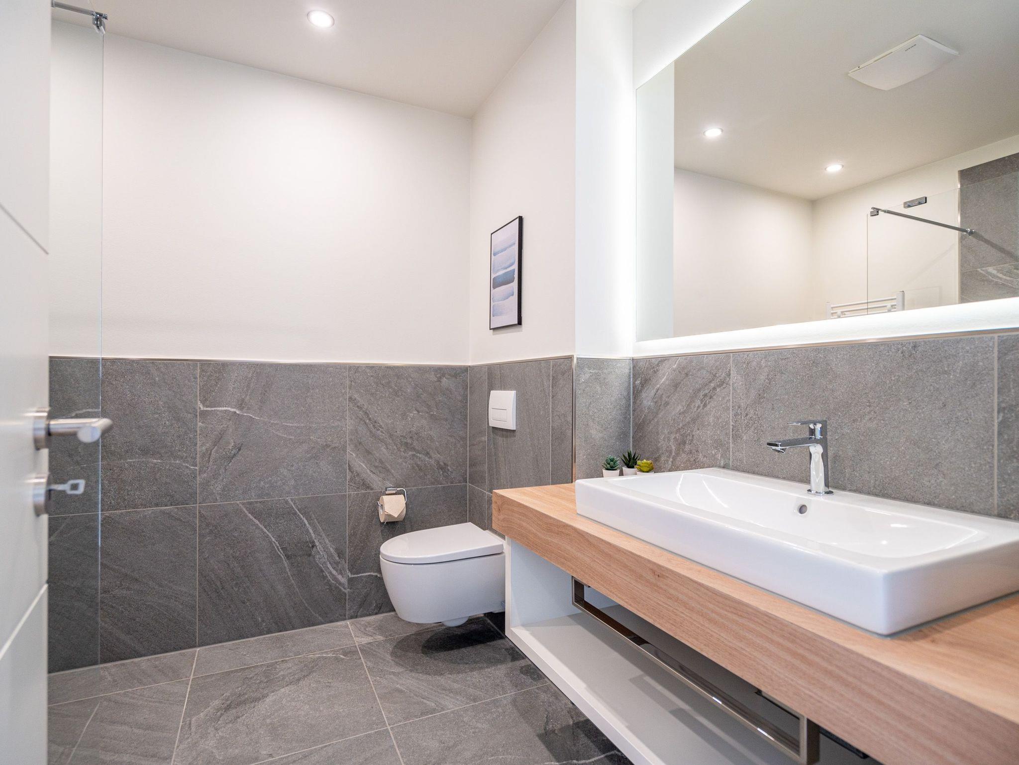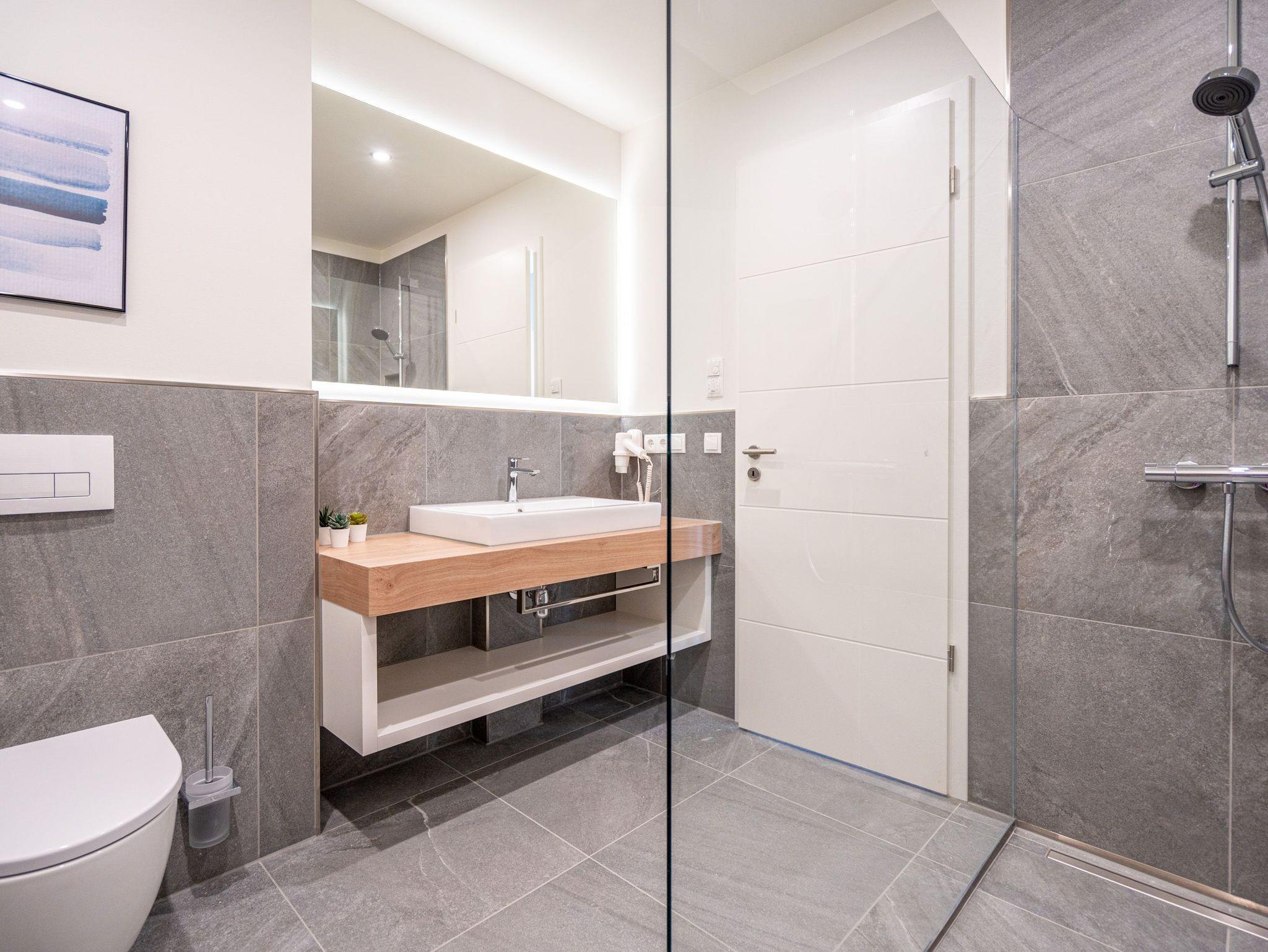 Die 2024 fertig gestellte Strandterrasse liegt direkt an der belebten Strandpromenade und bietet einen einzigartigen Ausblick auf die Grand Dame der historischen Seebrücken sowie die historische Konzertmuschel, einem beliebten Treffpunkt für Kunst und Kultur. Dahinter liegt die Ostsee ein Panorama, das zu den schönsten in den Kaiserbädern gehört. Es ist wie das Abtauchen in eine andere Zeit. In eine Zeit, in der man mit Stock, Sonnenschirm und Hut fürs Sehen und gesehen werden über die Promenade schlenderte; aber auch in eine Zeit, in der damals wie heute Zeit einmal für eine kurze Weile keine Rolle spielt. Weil man angekommen ist im Loslassen, Entspannen und Genießen. Es ist dieser besondere Geruch nach Meeresluft und Freiheit, der in Erinnerung bleibt. Dazu die Bilder, die man mitnimmt. Von langen Strandspaziergängen, vom Lachen in fröhlich schäumenden Ostseewellen, von der Zeit in einem wunderschönen Urlaubsdomizil. Denn genau das ist die Strandterrasse mit ihren 56 modernen und exklusiven Ferienappartements direkt gegenüber der Ahlbecker Seebrücke. Die Ein-, Zwei- oder Dreizimmerwohnungen zwischen 40 und 70 Quadratmeter groß sind von einer Innenarchitektin gemeinsam mit unserem Erfahrungsschatz an Gästewünschen mit viel Liebe zum Detail und ganz individuell konzipiert worden. Entspannung und Wohlfühlen stehen an erster Stelle. Alles ist aufeinander abgestimmt und sorgt für eine gemütliche Atmosphäre. Wählen Sie zwischen einem Domizil in einem hellen, sandfarbenen Designkonzept oder einem Appartement mit anthrazitfarbenen Farbakzenten. Alle Appartements verfügen gleichermaßen über eine stilvolle und komfortable Einrichtung, die passgenau angefertigt worden ist, sowie über moderne Küchen und Bäder. Jedem Schlafzimmer ist ein eigenes Bad mit Dusche zugeordnet (außer App. B4.5). Die Appartements besitzen fast alle einen Balkon viele schauen sogar zur Ostsee hinaus. Die meisten Feriendomizile haben einen Elektrokamin und Infrarotsaunen. Im Erdgeschoss befindet sich ein separater Gemeinschaftsraum für Fahrräder. Außerdem besteht die Möglichkeit, im Gemeinschaftswaschraum 2 Waschmaschinen [&] Trockner zu nutzen. Ergänzt wird das Angebot durch eine Gemeinschaftssauna, die täglich von 11:00 bis 22:00 Uhr nutzbar ist. In der Tiefgarage (Einfahrtshöhe 2,03 Meter) steht für jede Wohnung 1 Pkw-Stellplatz zur Verfügung. Ist alles zur Zufriedenheit untergebracht? Dann kann der Urlaub ja beginnen. Und beim Blick vom Balkon über die Ostsee treffen sich zum Sonnenaufgang das Heute und das Damals. Gelassenheit legt sich beim Gang hinunter an den Strand auf die Seele. Jetzt darf die Zeit stehenbleiben.