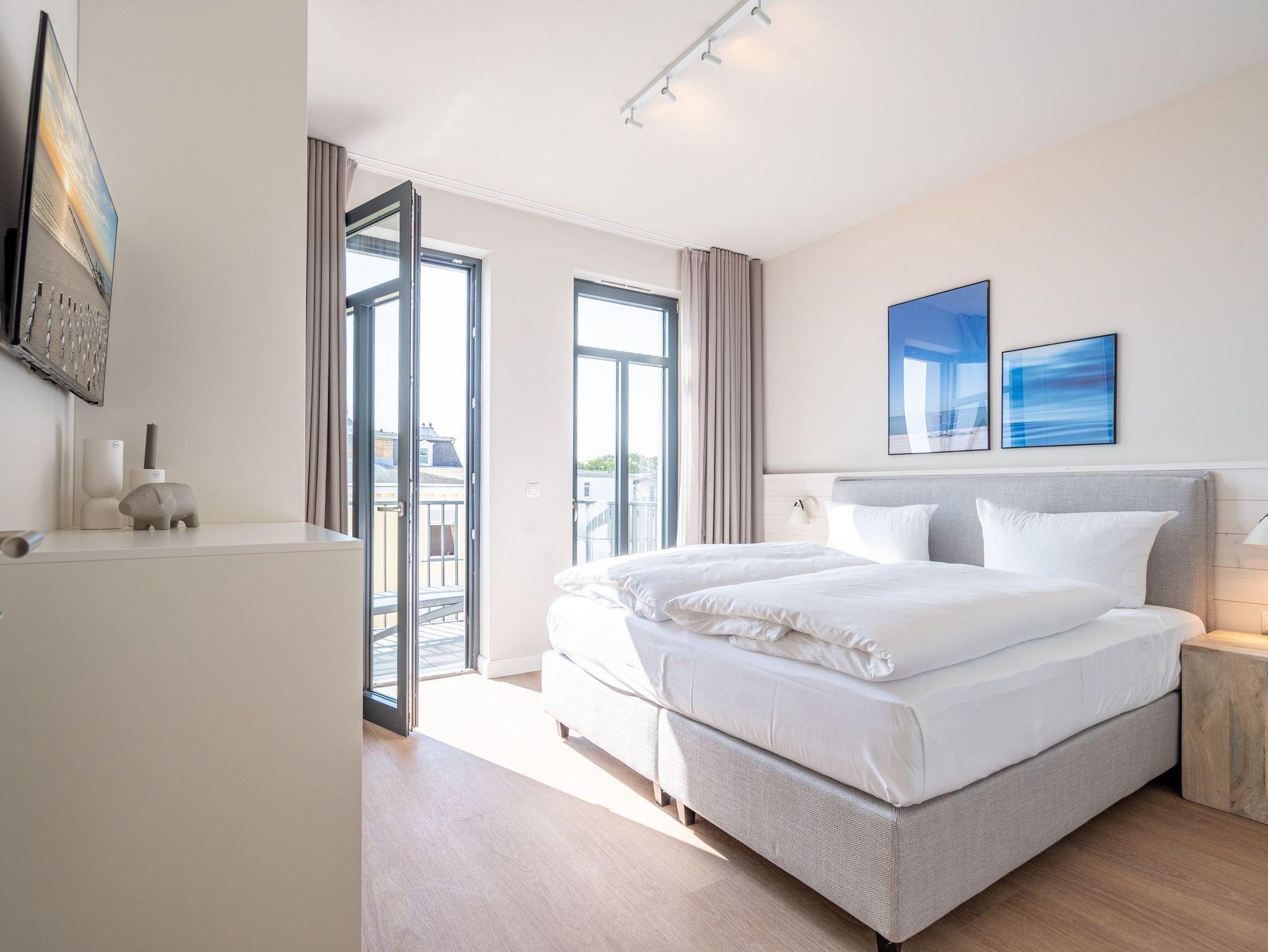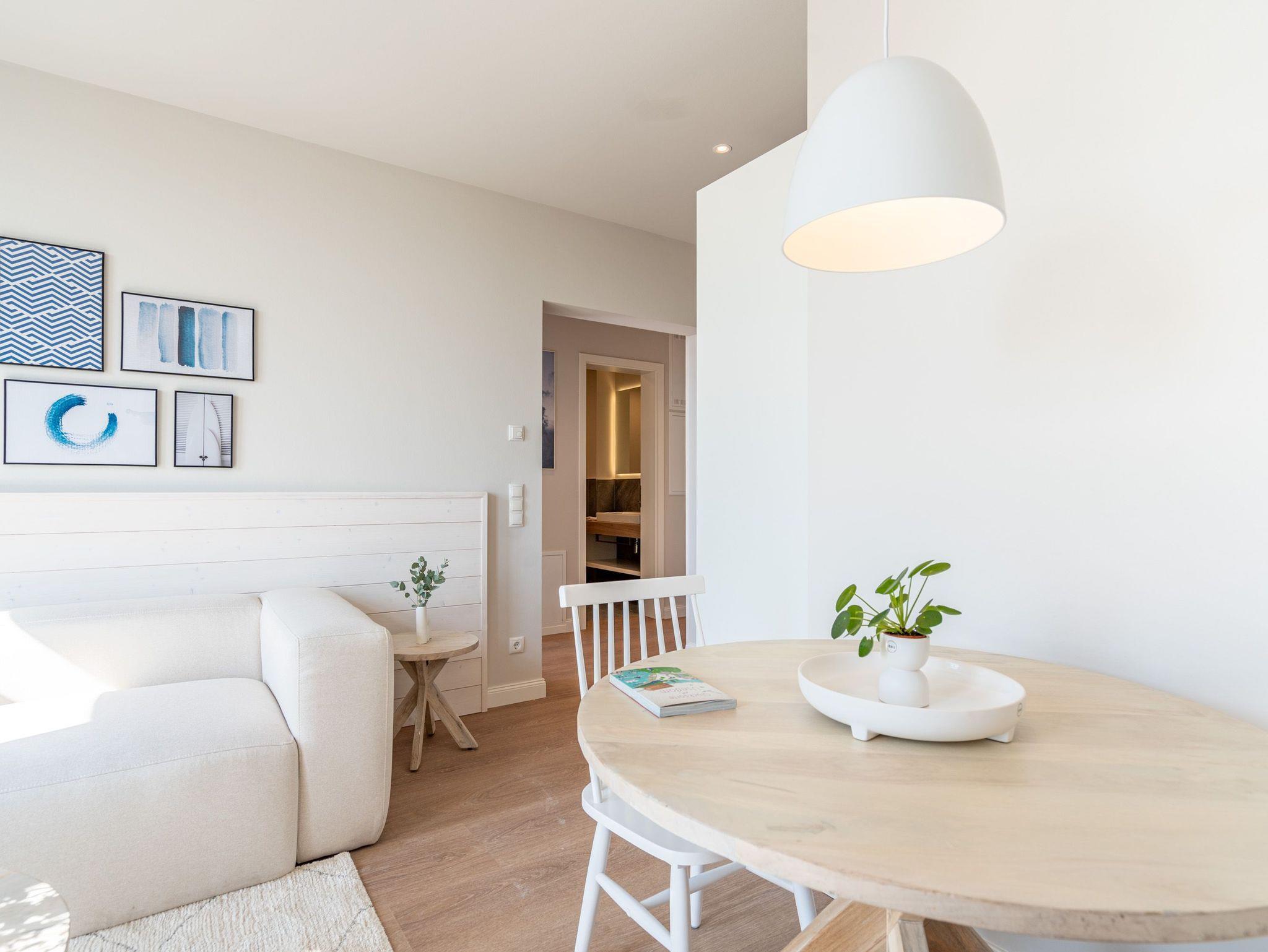 Die 2024 fertig gestellte Strandterrasse liegt direkt an der belebten Strandpromenade und bietet einen einzigartigen Ausblick auf die Grand Dame der historischen Seebrücken sowie die historische Konzertmuschel, einem beliebten Treffpunkt für Kunst und Kultur. Dahinter liegt die Ostsee ? ein Panorama, das zu den schönsten in den Kaiserbädern gehört. Es ist wie das Abtauchen in eine andere Zeit. In eine Zeit, in der man mit Stock, Sonnenschirm und Hut fürs „Sehen und gesehen werden“ über die Promenade schlenderte; aber auch in eine Zeit, in der ? damals wie heute ? Zeit einmal für eine kurze Weile keine Rolle spielt. Weil man angekommen ist im Loslassen, Entspannen und Genießen. Es ist dieser besondere Geruch nach Meeresluft und Freiheit, der in Erinnerung bleibt. Dazu die Bilder, die man mitnimmt. Von langen Strandspaziergängen, vom Lachen in fröhlich schäumenden Ostseewellen, von der Zeit in einem wunderschönen Urlaubsdomizil. Denn genau das ist die Strandterrasse mit ihren 56 modernen und exklusiven Ferienappartements direkt gegenüber der Ahlbecker Seebrücke. Die Ein-, Zwei- oder Dreizimmerwohnungen ? zwischen 40 und 70 Quadratmeter groß ? sind von einer Innenarchitektin gemeinsam mit unserem Erfahrungsschatz an Gästewünschen mit viel Liebe zum Detail und ganz individuell konzipiert worden. Entspannung und Wohlfühlen stehen an erster Stelle. Alles ist aufeinander abgestimmt und sorgt für eine gemütliche Atmosphäre. Wählen Sie zwischen einem Domizil in einem hellen, sandfarbenen Designkonzept oder einem Appartement mit anthrazitfarbenen Farbakzenten. Alle Appartements verfügen gleichermaßen über eine stilvolle und komfortable Einrichtung, die passgenau angefertigt worden ist, sowie über moderne Küchen und Bäder. Jedem Schlafzimmer ist ein eigenes Bad mit Dusche zugeordnet (außer App. B4.5). Die Appartements besitzen fast alle einen Balkon ? viele schauen sogar zur Ostsee hinaus. Die meisten Feriendomizile haben einen Elektrokamin und Infrarotsaunen. Im Erdgeschoss befindet sich ein separater Gemeinschaftsraum für Fahrräder. Außerdem besteht die Möglichkeit, im Gemeinschaftswaschraum 2 Waschmaschinen [&] Trockner zu nutzen. Ergänzt wird das Angebot durch eine Gemeinschaftssauna, die täglich von 11:00 bis 22:00 Uhr nutzbar ist. In der Tiefgarage (Einfahrtshöhe 2,03 Meter) steht für jede Wohnung 1 Pkw-Stellplatz zur Verfügung. Ist alles zur Zufriedenheit untergebracht? Dann kann der Urlaub ja beginnen. Und beim Blick vom Balkon über die Ostsee treffen sich zum Sonnenaufgang das Heute und das Damals. Gelassenheit legt sich beim Gang hinunter an den Strand auf die Seele. Jetzt darf die Zeit stehenbleiben.