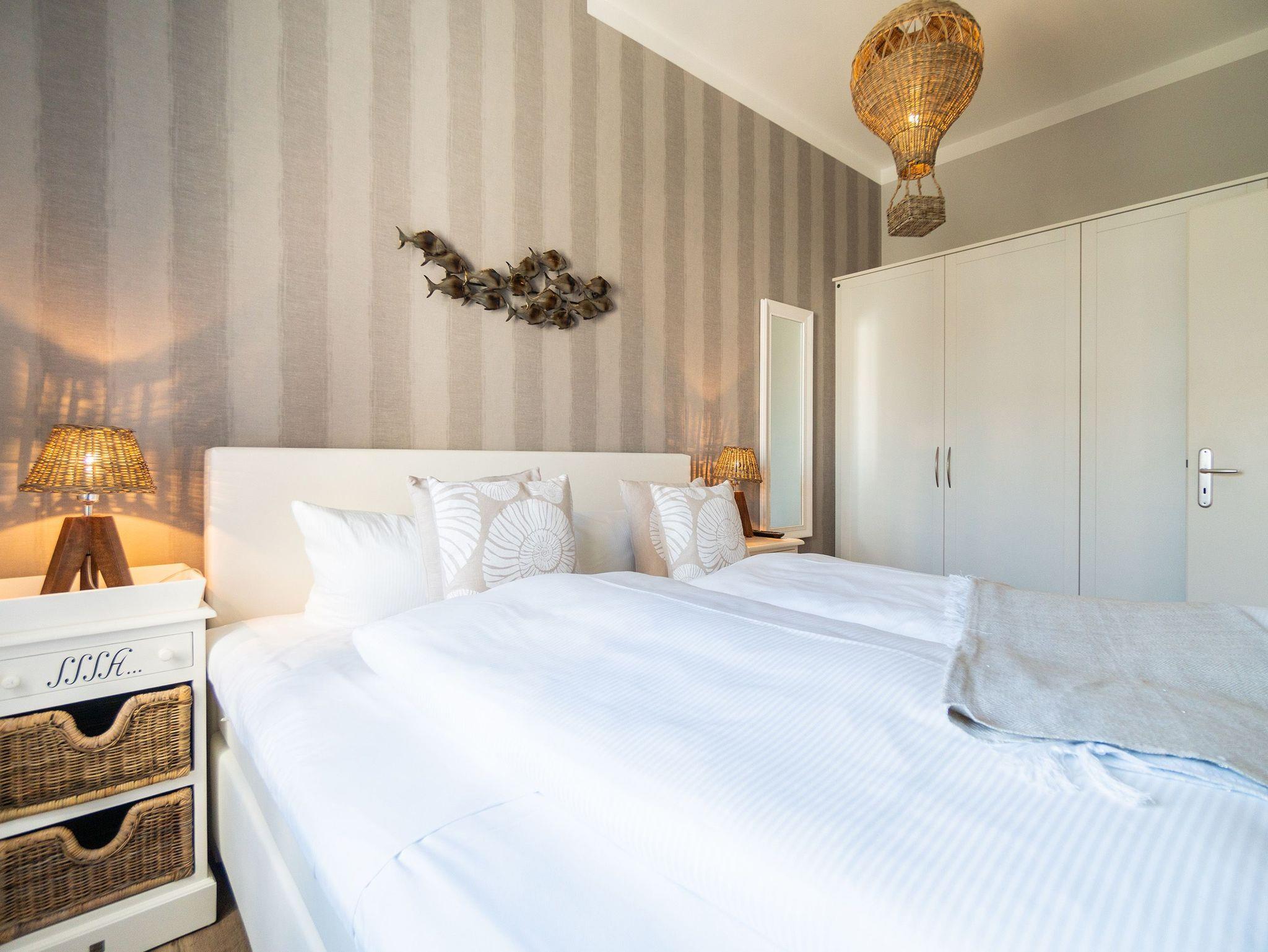 Viel Holz, Naturmaterialien, warme Naturtöne ? das Appartement Nummer 9 im ersten Obergeschoss des Ahlbecker Autorenhauses empfängt Ostseeliebhaber mit urig gemütlichem, maritimem Charme. Von der Naturtapete über die rustikalen und stylischen Möbel bis hin zu den Accessoires ? in diesem Urlaubsdomizil ist alles auf die wunderschöne Ostseelandschaft ausgerichtet. Die Liebe steckt in den vielen kleinen Details. Lassen Sie sich fallen und genießen Sie das entspannende Gefühl von viel Licht und Leichtigkeit. Die hohen Decken der alten Bädervilla lassen tief atmen und geben dem Freiheitsgefühl viel Raum. Benannt nach dem deutschen Schriftsteller Alfred Döblin, hätte dieses Ostseeparadies dem bekannten Essayisten während einer Auszeit am Meer ganz sicher jede Menge Inspiration für neue Werke gegeben. In dieser Wohnung trifft auf wunderbare Weise Alt auf Neu. Die drei Zimmer bieten Platz für vier Erwachsene und ein Kleinkind. Auf Wunsch kann für unsere kleinen Gäste ein Kinderreisebett (ohne zusätzliche Matratze [&] Bettzeug) und ein Kinderhochstuhl (gegen einen Aufpreis) zur Verfügung gestellt werden. Ganz besonders gemütlich wird es beim kuscheligen Beisammensitzen im Wohnzimmer vor dem Kaminofen. Für Unterhaltung sorgt der große Flat-TV. Die Küche ist offen. Vollausgestattet eignet sie sich sogar für kulinarische Meisterleistungen. Sie ist mit sämtlichen Geräten und Geschirr versehen. Essen können Sie im ebenfalls zum Wohnzimmer hin offenen Erker. Lichtdurchflutet, da von drei Seiten mit hohen Fenstern versehen, beginnt hier der Urlaub schon morgens perfekt. Von hier haben Sie uneingeschränkten Blick aufs Meer. Und nach Osten ausgerichtet scheint hier die Sonne auf den Frühstückstisch. Machen Sie die Fenster des Erkers weit auf und lassen Sie das Ostseerauschen in Ihr Appartement. Gebettet sind Sie in der Nummer 9 auf himmlisch komfortablen Boxspringdoppelbetten ( 1,80 m x 2,00 m). Jedes der beiden Schlafzimmer ist darüber hinaus mit einem Schrank und einem Flat-TV ausgestattet. Das Badezimmer ist geräumig. Ganz besonders die schöne Regendusche. Außerdem verfügt das Bad über einen Waschtisch und ein WC. In der Wohnung gibt es kostenfreies WLAN. Bei Anreise sind Ihre Betten bezogen und Handtücher liegen bereit. Falls Sie Ihre Wäsche einmal waschen wollen, steht dafür im Keller des Hauses eine Waschmaschine und ein Trockner zur Verfügung. Gegen eine Gebühr können Sie diese nutzen. Für Ihren Pkw steht Ihnen in der hauseigenen Tiefgarage ein fester Stellplatz zur Verfügung. Besonders praktisch: Für Gäste mit E-Auto steht eine gemeinschaftliche Lademöglichkeit in der Tiefgarage zur Verfügung (wird von vier Wohneinheiten genutzt). Die Abrechnung erfolgt bequem über eine Ladekarte eines bekannten Anbieters oder per Kreditkarte.