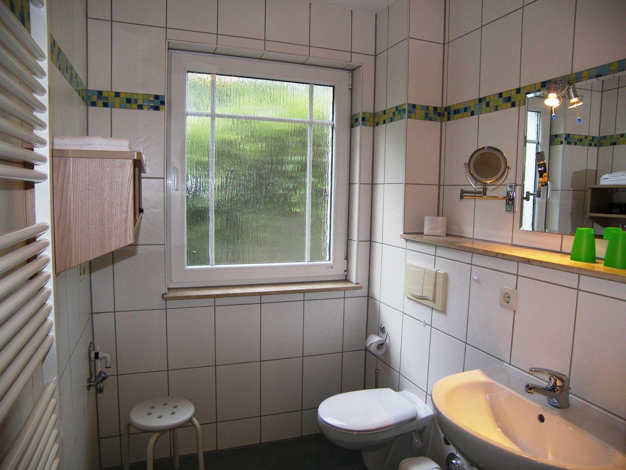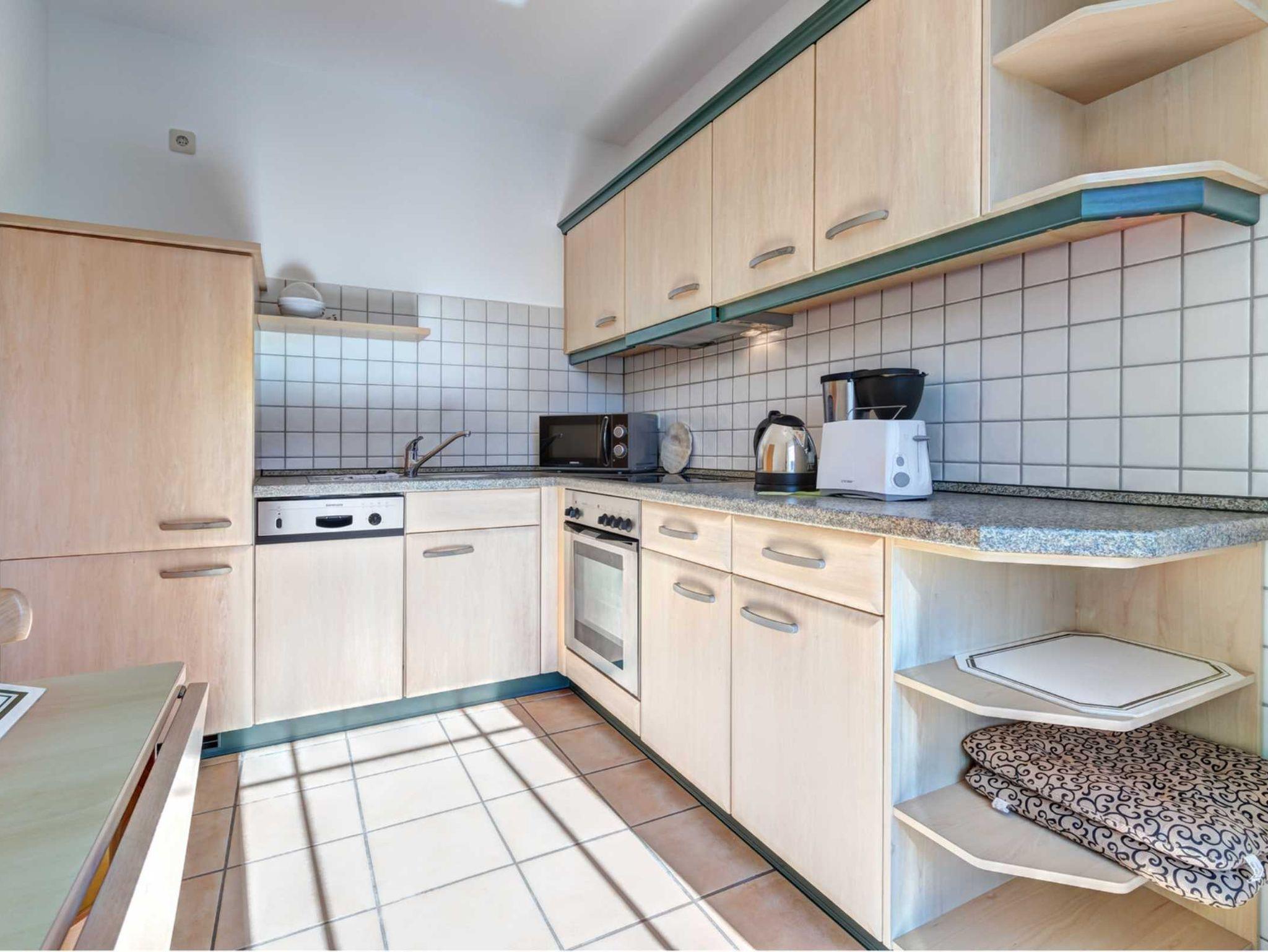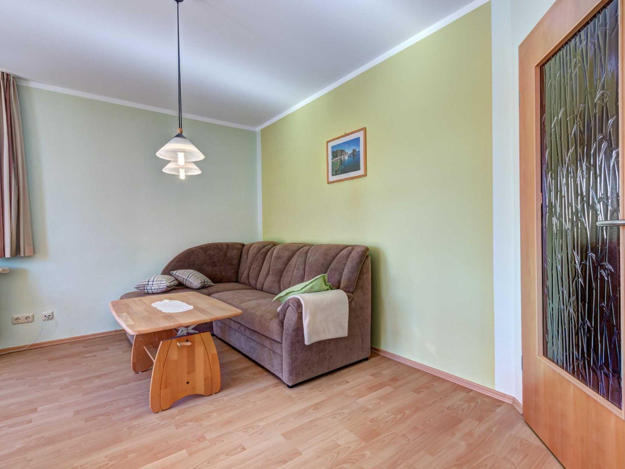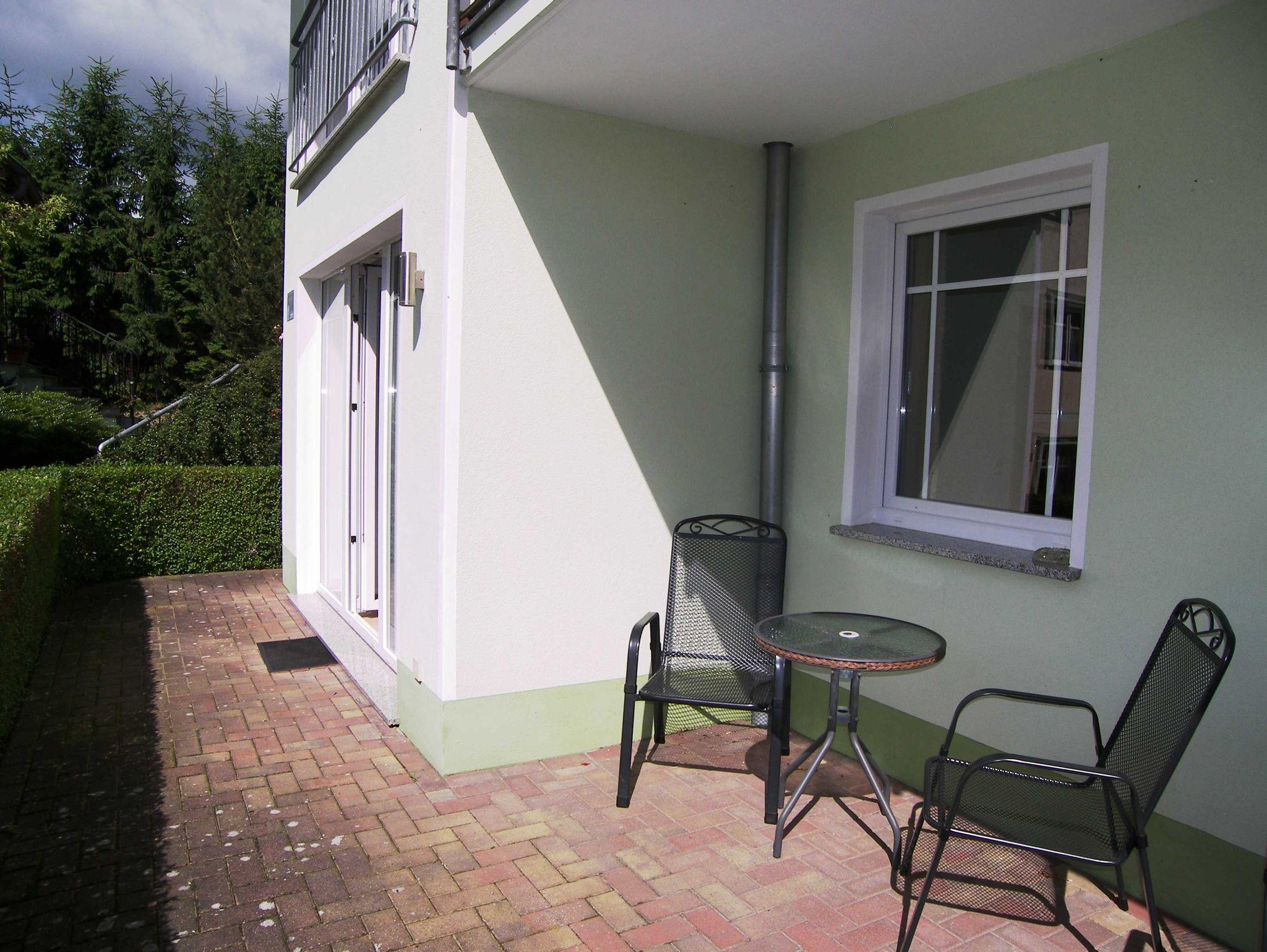 Moderne 2-Raum NICHTRAUCHER-Ferienwohnung ist ca. 52 qm und befindet sich im Erdgeschoss eines Appartementhauses. Die Wohnung verfügt über einen Schlafraum mit Doppelbett, Kleiderschrank und 2 Stühlen, einen kombinierten Wohn-u. Schlafraum mit einer Schlafcouch (1,60 x 2,00 m), Flachbild-TV, Radio mit CD-Player, Couchtisch & ein Sessel, Esstisch + 4 Stühle, sowie einer Terrasse zur Südseite (morgens bis nachmittags Sonne). Die separate Küche ist ausgestattet mit einem Geschirrspüler, 4-Platten-Ceranherd, Backofen, Kühl-/Gefrierkombination, Kaffeemaschine, Toaster, Wasserkocher, Mikrowelle und Geschirr. Das Badezimmer verfügt über DU/WC sowie eine Fußbodenheizung und einen beleuchteten Kosmetikspiegel. Die gesamte Wohnung ist mit Fliesen und Laminat ausgestattet. Die Erstausstattung Bettwäsche und Handtücher ist inklusive. Auf Anfrage kann eine weitere Person auf dem Schlafsofa für 15 Euro pro Übernachtung zugebucht werden.
