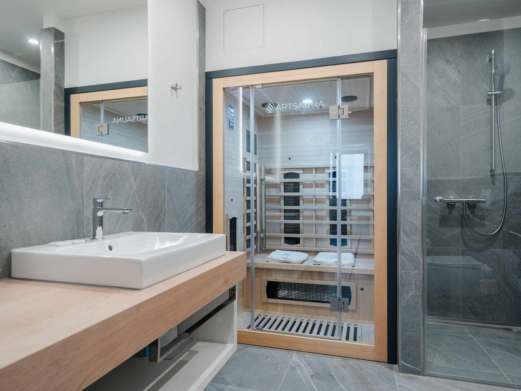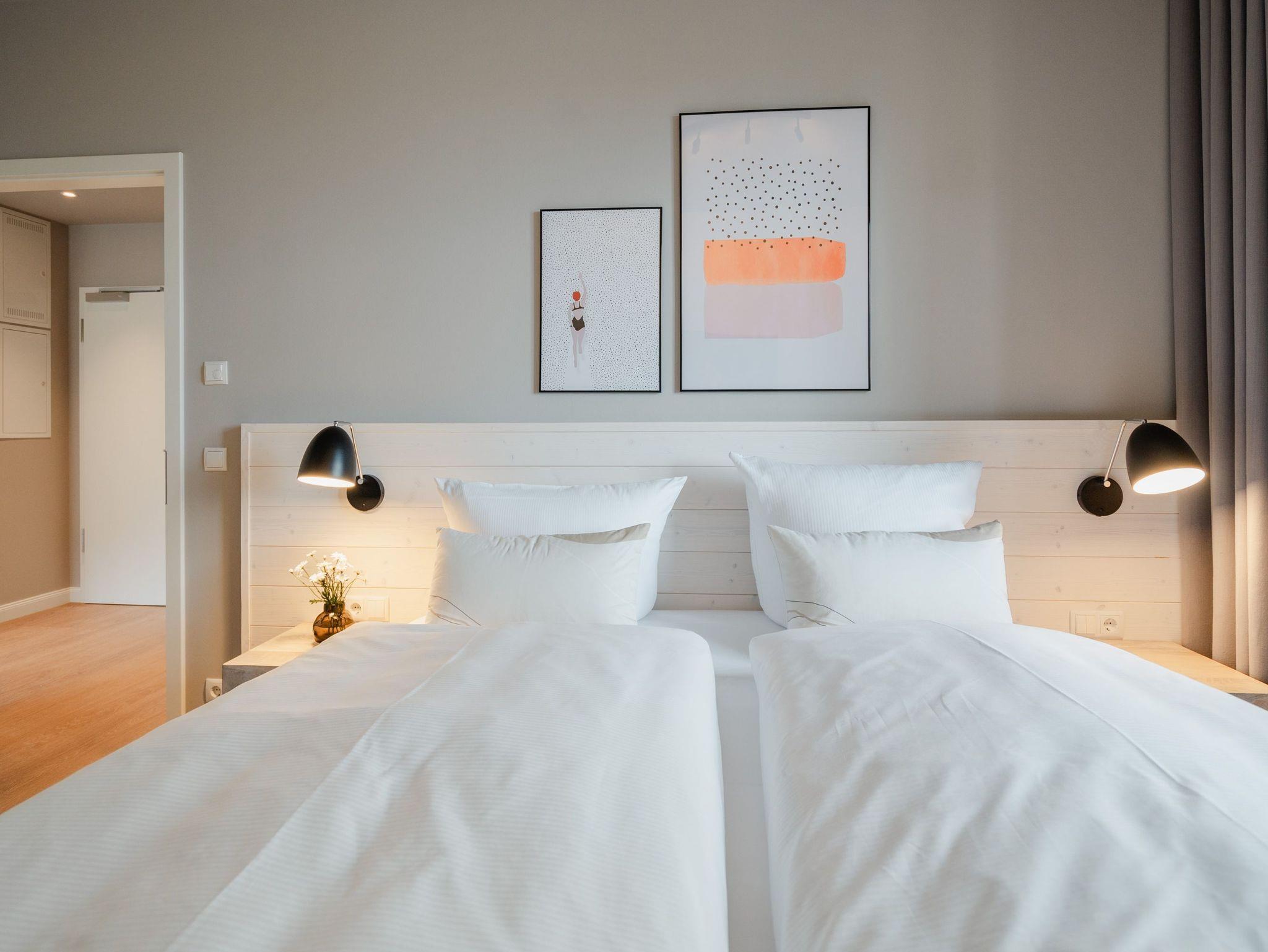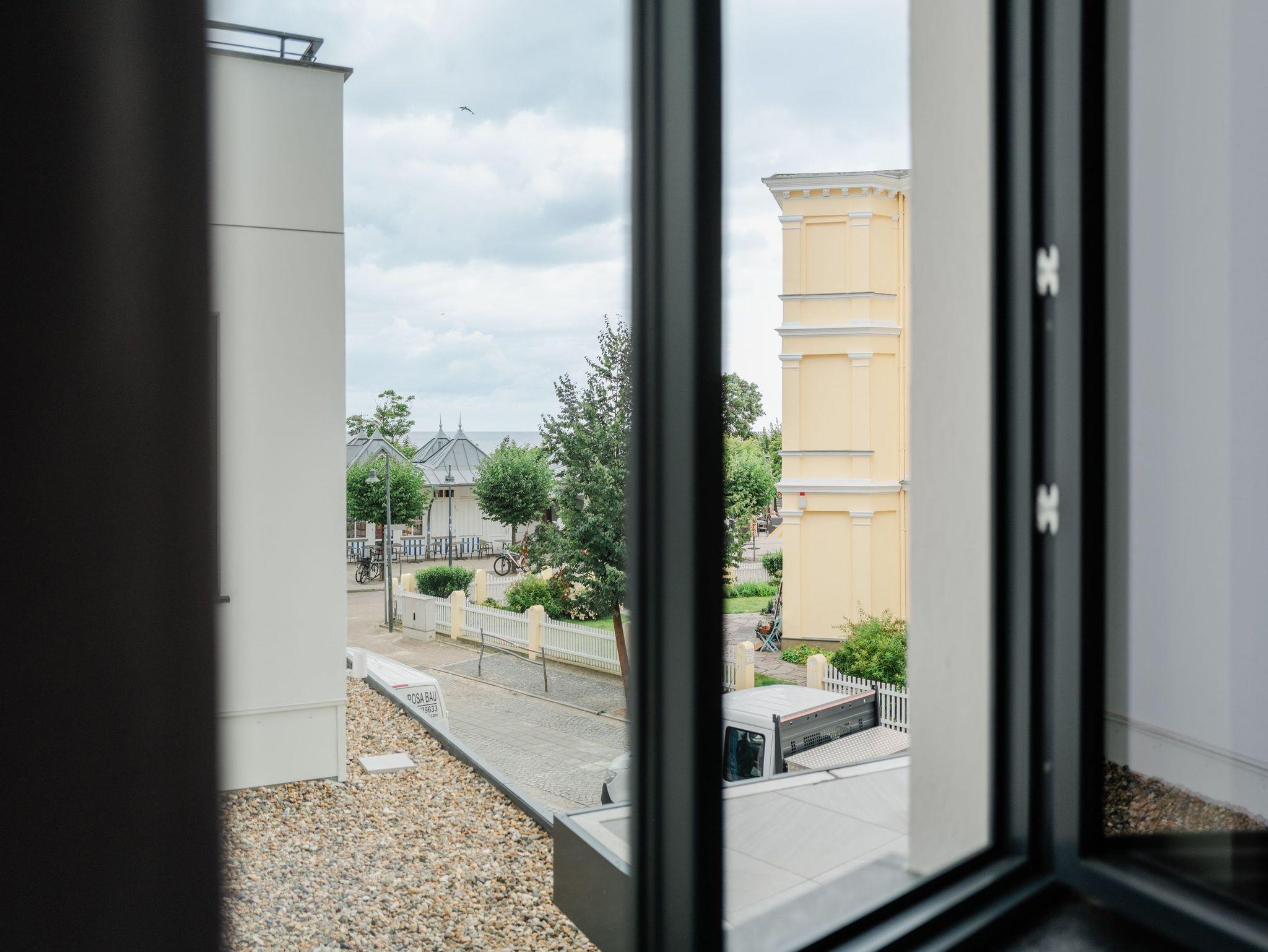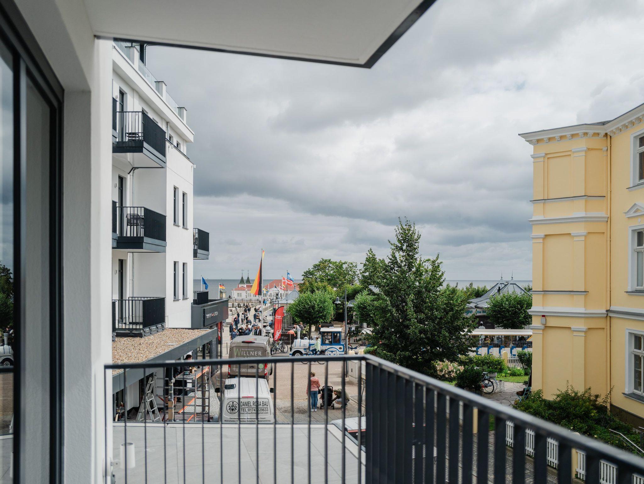 Die 2024 fertig gestellte Strandterrasse liegt direkt an der belebten Strandpromenade und bietet einen einzigartigen Ausblick auf die Grand Dame der historischen Seebrücken sowie die historische Konzertmuschel, einem beliebten Treffpunkt für Kunst und Kultur. Dahinter liegt die Ostsee ? ein Panorama, das zu den schönsten in den Kaiserbädern gehört. Es ist wie das Abtauchen in eine andere Zeit. In eine Zeit, in der man mit Stock, Sonnenschirm und Hut fürs „Sehen und gesehen werden“ über die Promenade schlenderte; aber auch in eine Zeit, in der ? damals wie heute ? Zeit einmal für eine kurze Weile keine Rolle spielt. Weil man angekommen ist im Loslassen, Entspannen und Genießen. Es ist dieser besondere Geruch nach Meeresluft und Freiheit, der in Erinnerung bleibt. Dazu die Bilder, die man mitnimmt. Von langen Strandspaziergängen, vom Lachen in fröhlich schäumenden Ostseewellen, von der Zeit in einem wunderschönen Urlaubsdomizil. Denn genau das ist die Strandterrasse mit ihren 56 modernen und exklusiven Ferienappartements direkt gegenüber der Ahlbecker Seebrücke. Die Ein-, Zwei- oder Dreizimmerwohnungen ? zwischen 40 und 70 Quadratmeter groß ? sind von einer Innenarchitektin gemeinsam mit unserem Erfahrungsschatz an Gästewünschen mit viel Liebe zum Detail und ganz individuell konzipiert worden. Entspannung und Wohlfühlen stehen an erster Stelle. Alles ist aufeinander abgestimmt und sorgt für eine gemütliche Atmosphäre. Wählen Sie zwischen einem Domizil in einem hellen, sandfarbenen Designkonzept oder einem Appartement mit anthrazitfarbenen Farbakzenten. Alle Appartements verfügen gleichermaßen über eine stilvolle und komfortable Einrichtung, die passgenau angefertigt worden ist, sowie über moderne Küchen und Bäder. Jedem Schlafzimmer ist ein eigenes Bad mit Dusche zugeordnet (außer App. B4.5). Die Appartements besitzen fast alle einen Balkon ? viele schauen sogar zur Ostsee hinaus. Die meisten Feriendomizile haben einen Elektrokamin und Infrarotsaunen. Im Erdgeschoss befindet sich ein separater Gemeinschaftsraum für Fahrräder. Außerdem besteht die Möglichkeit, im Gemeinschaftswaschraum 2 Waschmaschinen [&] Trockner zu nutzen. Ergänzt wird das Angebot durch eine Gemeinschaftssauna, die täglich von 11:00 bis 22:00 Uhr nutzbar ist. In der Tiefgarage (Einfahrtshöhe 2,03 Meter) steht für jede Wohnung 1 Pkw-Stellplatz zur Verfügung. Ist alles zur Zufriedenheit untergebracht? Dann kann der Urlaub ja beginnen. Und beim Blick vom Balkon über die Ostsee treffen sich zum Sonnenaufgang das Heute und das Damals. Gelassenheit legt sich beim Gang hinunter an den Strand auf die Seele. Jetzt darf die Zeit stehenbleiben.