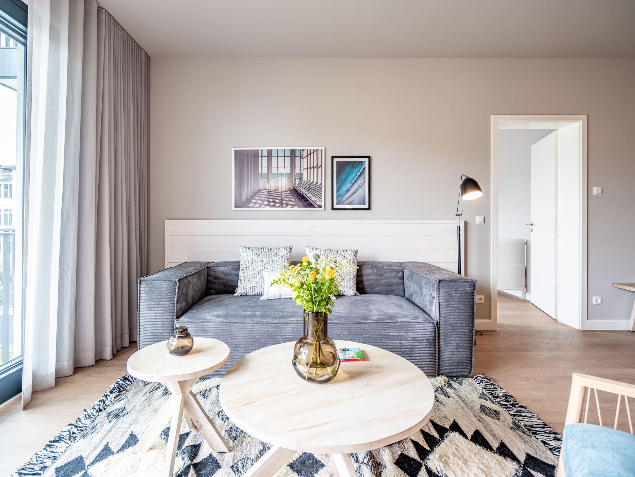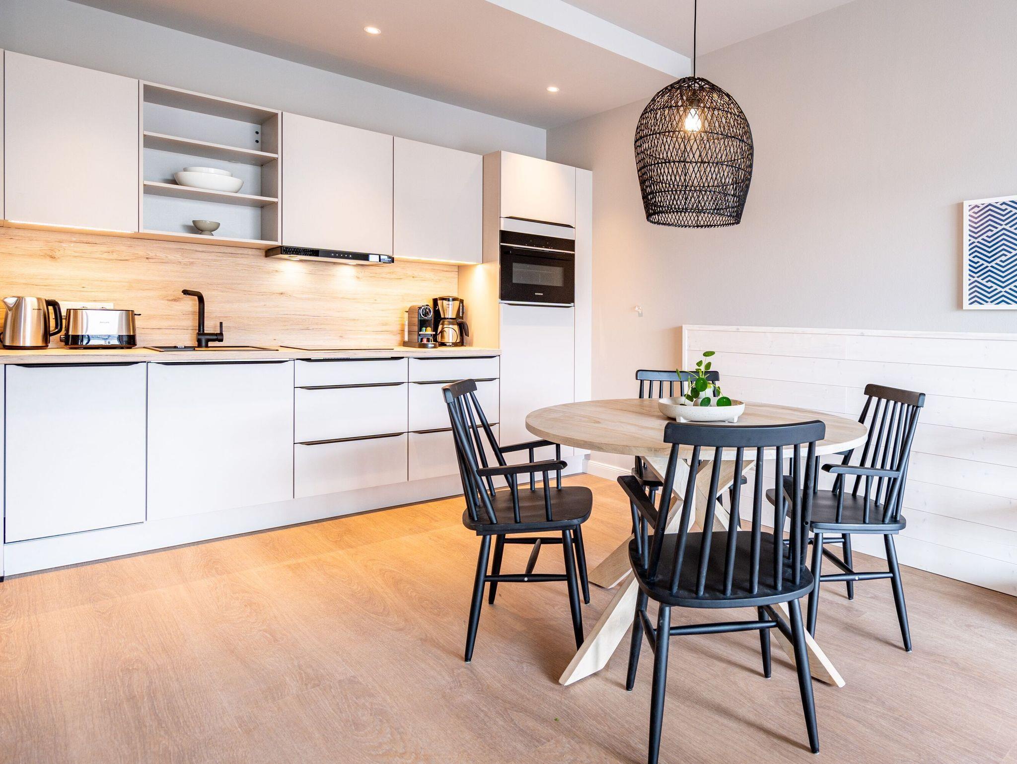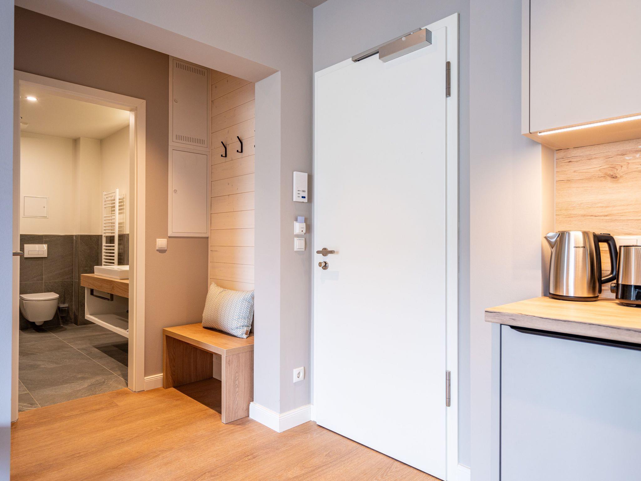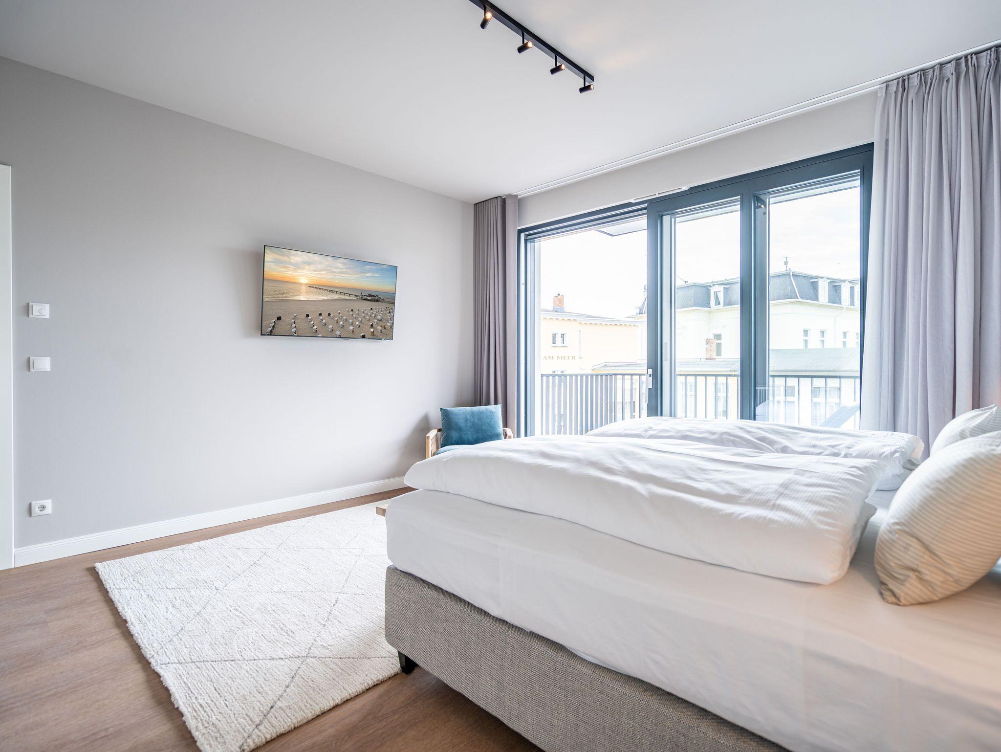 Die 2024 fertig gestellte Strandterrasse liegt direkt an der belebten Strandpromenade und bietet einen einzigartigen Ausblick auf die Grand Dame der historischen Seebrücken sowie die historische Konzertmuschel, einem beliebten Treffpunkt für Kunst und Kultur. Dahinter liegt die Ostsee ? ein Panorama, das zu den schönsten in den Kaiserbädern gehört. Es ist wie das Abtauchen in eine andere Zeit. In eine Zeit, in der man mit Stock, Sonnenschirm und Hut fürs „Sehen und gesehen werden“ über die Promenade schlenderte; aber auch in eine Zeit, in der ? damals wie heute ? Zeit einmal für eine kurze Weile keine Rolle spielt. Weil man angekommen ist im Loslassen, Entspannen und Genießen. Es ist dieser besondere Geruch nach Meeresluft und Freiheit, der in Erinnerung bleibt. Dazu die Bilder, die man mitnimmt. Von langen Strandspaziergängen, vom Lachen in fröhlich schäumenden Ostseewellen, von der Zeit in einem wunderschönen Urlaubsdomizil. Denn genau das ist die Strandterrasse mit ihren 56 modernen und exklusiven Ferienappartements direkt gegenüber der Ahlbecker Seebrücke. Die Ein-, Zwei- oder Dreizimmerwohnungen ? zwischen 40 und 70 Quadratmeter groß ? sind von einer Innenarchitektin gemeinsam mit unserem Erfahrungsschatz an Gästewünschen mit viel Liebe zum Detail und ganz individuell konzipiert worden. Entspannung und Wohlfühlen stehen an erster Stelle. Alles ist aufeinander abgestimmt und sorgt für eine gemütliche Atmosphäre. Wählen Sie zwischen einem Domizil in einem hellen, sandfarbenen Designkonzept oder einem Appartement mit anthrazitfarbenen Farbakzenten. Alle Appartements verfügen gleichermaßen über eine stilvolle und komfortable Einrichtung, die passgenau angefertigt worden ist, sowie über moderne Küchen und Bäder. Jedem Schlafzimmer ist ein eigenes Bad mit Dusche zugeordnet (außer App. B4.5). Die Appartements besitzen fast alle einen Balkon ? viele schauen sogar zur Ostsee hinaus. Die meisten Feriendomizile haben einen Elektrokamin und Infrarotsaunen. Im Erdgeschoss befindet sich ein separater Gemeinschaftsraum für Fahrräder. Außerdem besteht die Möglichkeit, im Gemeinschaftswaschraum 2 Waschmaschinen [&] Trockner zu nutzen. Ergänzt wird das Angebot durch eine Gemeinschaftssauna, die täglich von 11:00 bis 22:00 Uhr nutzbar ist. In der Tiefgarage (Einfahrtshöhe 2,03 Meter) steht für jede Wohnung 1 Pkw-Stellplatz zur Verfügung. Ist alles zur Zufriedenheit untergebracht? Dann kann der Urlaub ja beginnen. Und beim Blick vom Balkon über die Ostsee treffen sich zum Sonnenaufgang das Heute und das Damals. Gelassenheit legt sich beim Gang hinunter an den Strand auf die Seele. Jetzt darf die Zeit stehenbleiben.