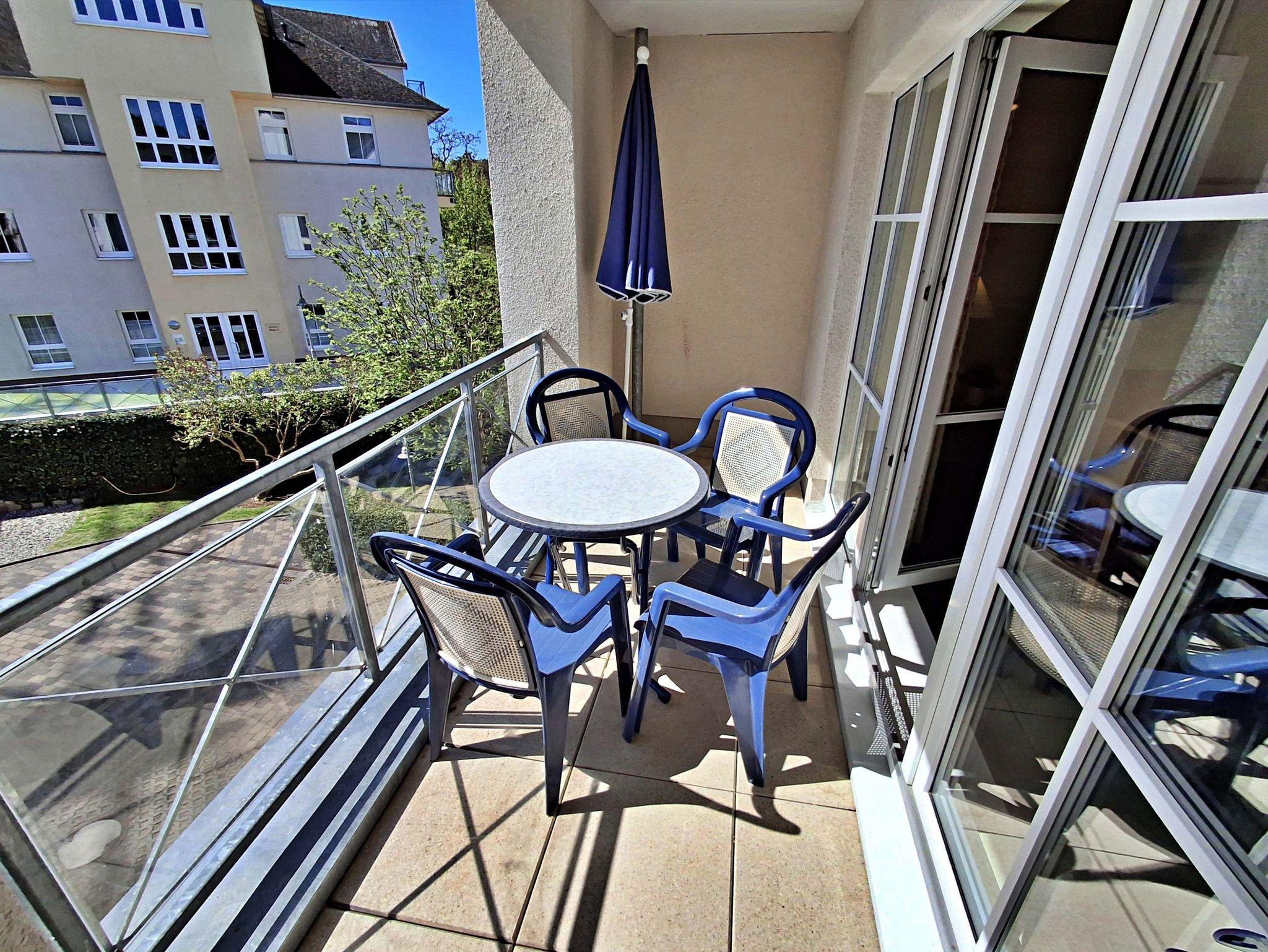 Die komfortable 3-Raum-Ferienwohnung mit Balkon befindet sich im zweiten Obergeschoss der Appartementanlage und ist für bis zu 4 Erwachsene und 1 Kleinkind bis 3 Jahre ausgestattet. Die Wohnung verfügt über ein Wohnzimmer mit gemütlicher Couch, Sessel und Esstisch mit 4 Stühlen. Für die Unterhaltung sorgen ein Flachbild-TV und Stereo-Anlage. Die vollständig ausgestattete Küchenzeile mit 4-Plattenherd, Backofen, Mikrowelle, Spülmaschine, Kühlschrank mit Gefrierfach lässt keine Wünsche offen. Im ersten Schlafzimmer befindet sich ein Doppelbett und im zweiten Schlafzimmer befinden sich zwei Einzelbetten sowie ein zusätzlicher Flachbild-TV. Das Bad ist mit Dusche/WC und Haarfön ausgestattet. Sie können bequem den Aufzug bis zur Wohnungstür nutzen.