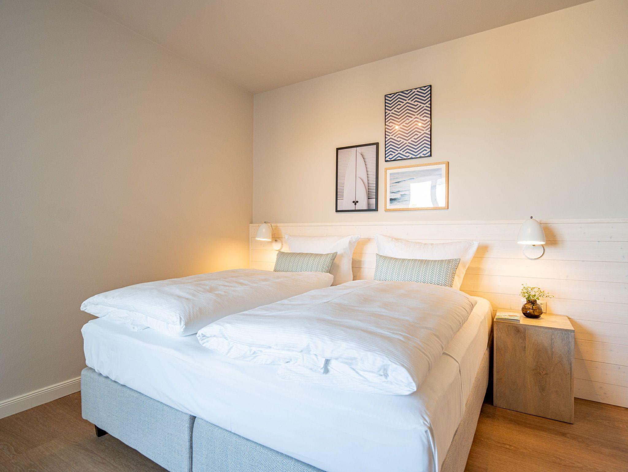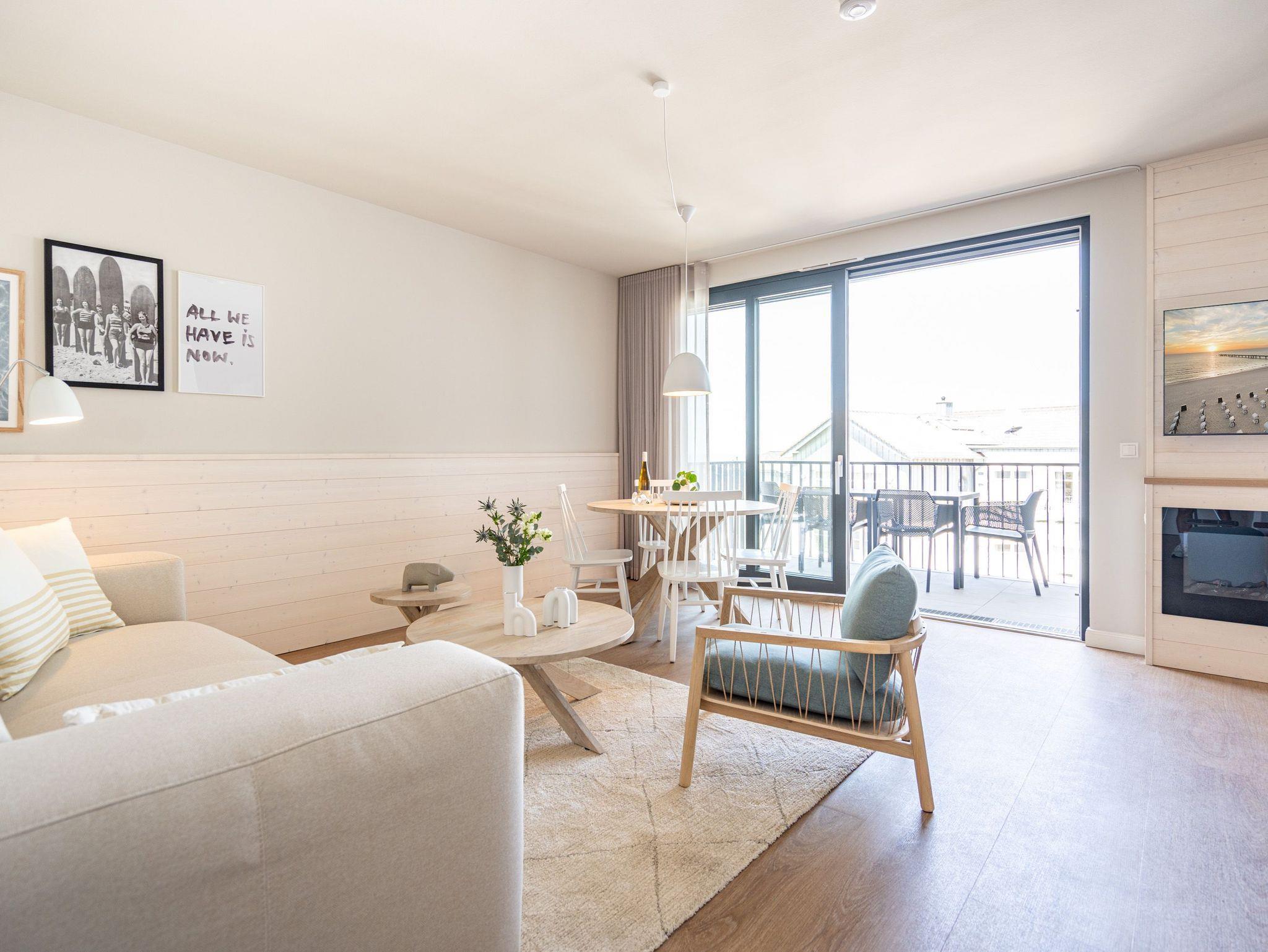 Die 2024 fertig gestellte Strandterrasse liegt direkt an der belebten Strandpromenade und bietet einen einzigartigen Ausblick auf die Grand Dame der historischen Seebrücken sowie die historische Konzertmuschel, einem beliebten Treffpunkt für Kunst und Kultur. Dahinter liegt die Ostsee ? ein Panorama, das zu den schönsten in den Kaiserbädern gehört. Es ist wie das Abtauchen in eine andere Zeit. In eine Zeit, in der man mit Stock, Sonnenschirm und Hut fürs „Sehen und gesehen werden“ über die Promenade schlenderte; aber auch in eine Zeit, in der ? damals wie heute ? Zeit einmal für eine kurze Weile keine Rolle spielt. Weil man angekommen ist im Loslassen, Entspannen und Genießen. Es ist dieser besondere Geruch nach Meeresluft und Freiheit, der in Erinnerung bleibt. Dazu die Bilder, die man mitnimmt. Von langen Strandspaziergängen, vom Lachen in fröhlich schäumenden Ostseewellen, von der Zeit in einem wunderschönen Urlaubsdomizil. Denn genau das ist die Strandterrasse mit ihren 56 modernen und exklusiven Ferienappartements direkt gegenüber der Ahlbecker Seebrücke. Die Ein-, Zwei- oder Dreizimmerwohnungen ? zwischen 40 und 70 Quadratmeter groß ? sind von einer Innenarchitektin gemeinsam mit unserem Erfahrungsschatz an Gästewünschen mit viel Liebe zum Detail und ganz individuell konzipiert worden. Entspannung und Wohlfühlen stehen an erster Stelle. Alles ist aufeinander abgestimmt und sorgt für eine gemütliche Atmosphäre. Wählen Sie zwischen einem Domizil in einem hellen, sandfarbenen Designkonzept oder einem Appartement mit anthrazitfarbenen Farbakzenten. Alle Appartements verfügen gleichermaßen über eine stilvolle und komfortable Einrichtung, die passgenau angefertigt worden ist, sowie über moderne Küchen und Bäder. Jedem Schlafzimmer ist ein eigenes Bad mit Dusche zugeordnet (außer App. B4.5). Die Appartements besitzen fast alle einen Balkon ? viele schauen sogar zur Ostsee hinaus. Die meisten Feriendomizile haben einen Elektrokamin und Infrarotsaunen. Im Erdgeschoss befindet sich ein separater Gemeinschaftsraum für Fahrräder. Außerdem besteht die Möglichkeit, im Gemeinschaftswaschraum 2 Waschmaschinen [&] Trockner zu nutzen. Ergänzt wird das Angebot durch eine Gemeinschaftssauna, die täglich von 11:00 bis 22:00 Uhr nutzbar ist. In der Tiefgarage (Einfahrtshöhe 2,03 Meter) steht für jede Wohnung 1 Pkw-Stellplatz zur Verfügung. Ist alles zur Zufriedenheit untergebracht? Dann kann der Urlaub ja beginnen. Und beim Blick vom Balkon über die Ostsee treffen sich zum Sonnenaufgang das Heute und das Damals. Gelassenheit legt sich beim Gang hinunter an den Strand auf die Seele. Jetzt darf die Zeit stehenbleiben.