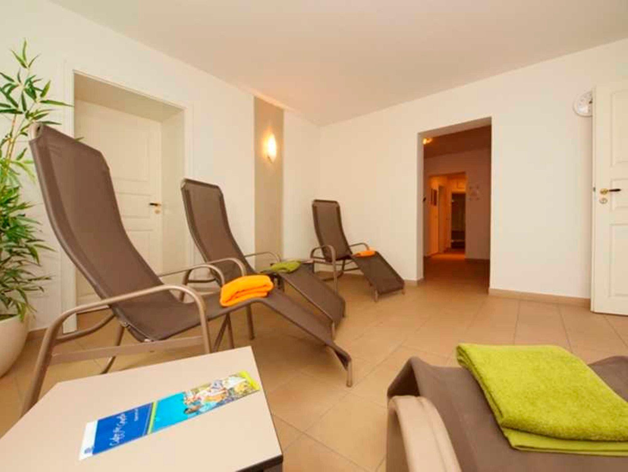 Für Kurzweil und Entspannung sorgt eine Gemeinschafts-Sauna, Dampfbad sowie ein Ruheraum. Ein Pkw-Stellplatz befindet sich am Haus (überdacht) und Ihre eigenen Räder können Sie gern im Fahrradraum abstellen. Waschmaschine und Trockner stehen gegen Gebühr zur Verfügung.