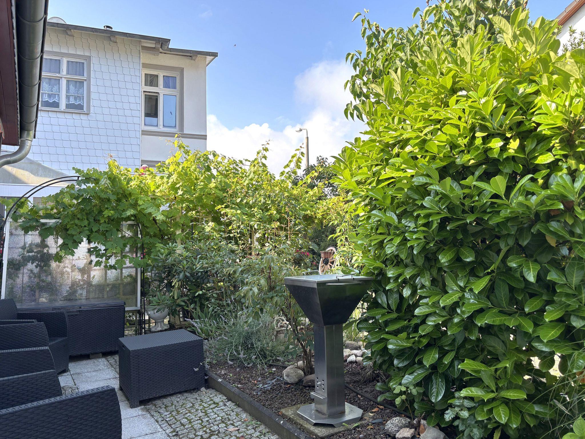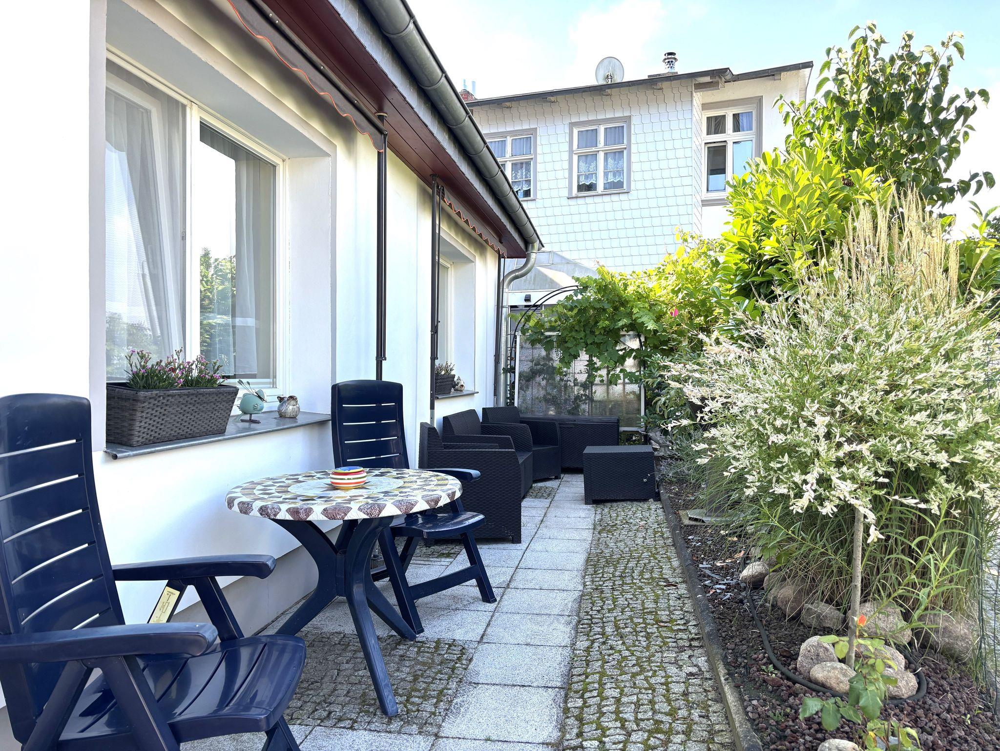 Die Wohnung hat einen eigenen Eingang, der über zwei Stufen erreichbar ist. Direkt vor der Wohnung lädt eine möblierte Terrasse mit Gartenmöbeln und Grill zum Verweilen im Freien ein ? perfekt für entspannte Stunden an der frischen Ostseeluft.