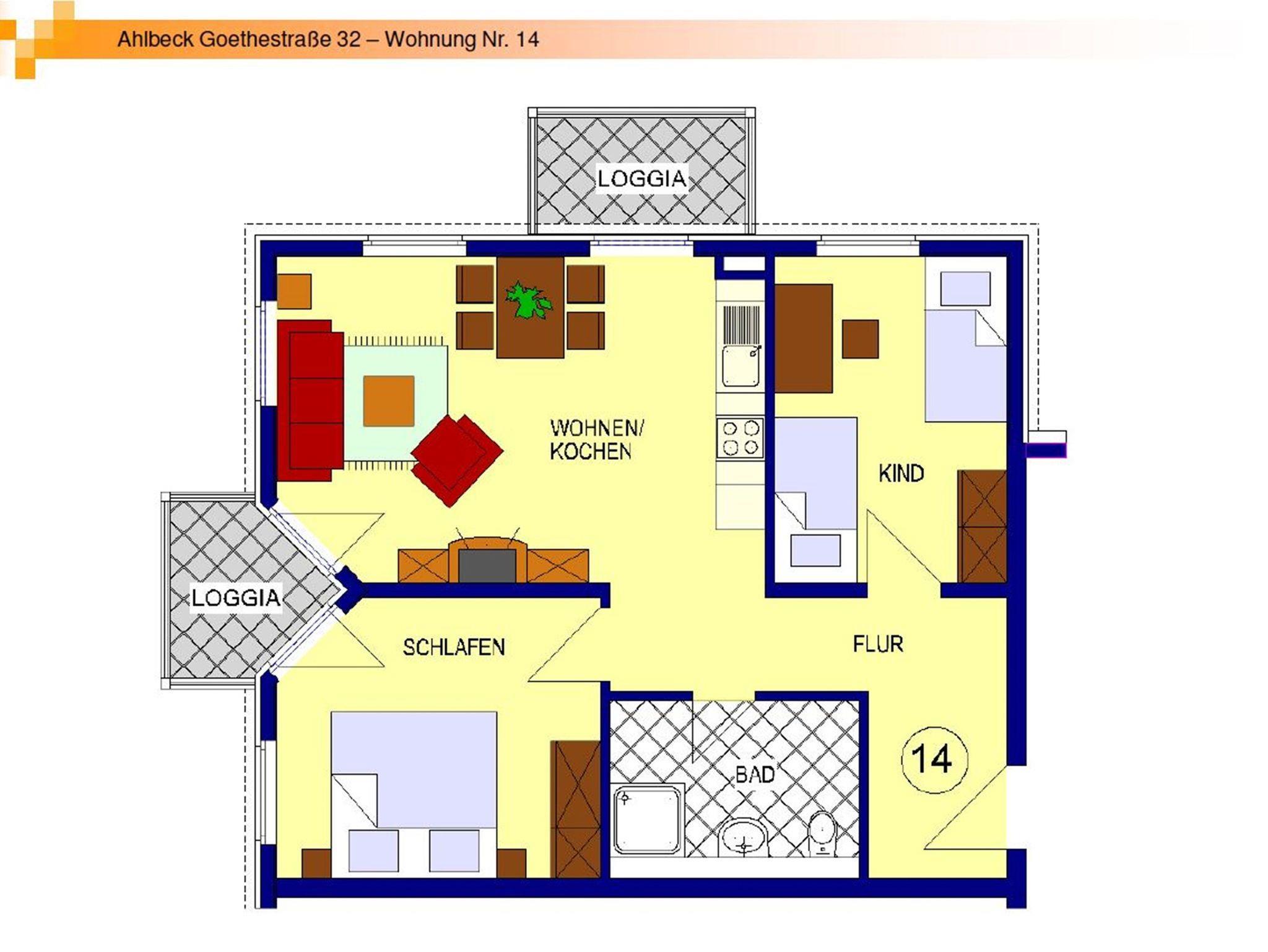 Die helle und freundliche Ferienwohnung in der dritten Etage des Neubaus der Villa Linquenda bietet auf 63 m² komfortablen Platz für bis zu vier Personen. Die hochwertig eingerichtete Wohnung verfügt über einen gemütlichen Wohnbereich mit Sitzgruppe und Flat-TV sowie eine komplett ausgestattete Küchenzeile.