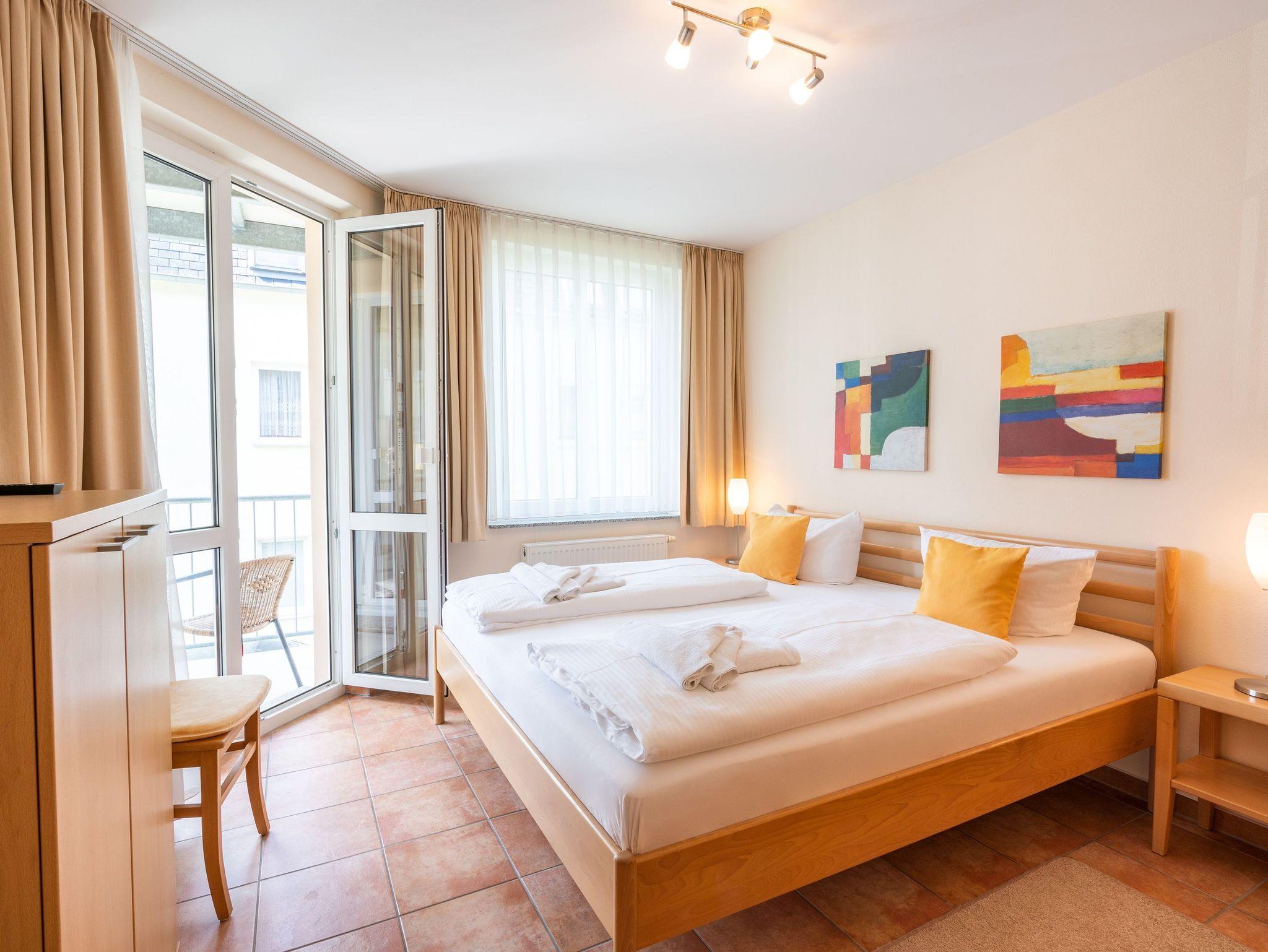 Die helle und freundliche Ferienwohnung befindet sich in der zweiten Etage des Neubaus der Villa Linquenda. Die 65 qm große Wohnung ist hochwertig eingerichtet und bietet Platz für bis zu vier Personen. Sie verfügt über ein Wohnbereich mit Sitzgruppe & Flat-TV, eine komplett ausgestattete Küchenzeile, ein Schlafzimmer mit Doppelbett ( 1,80m x 2,00m) und zusätzlichem Flat-TV sowie ein zweites Schlafzimmer mit zwei Einzelbetten. Das Bad verfügt über eine Dusche und WC. Zwei Balkone runden das Angebot der Wohnung ab.