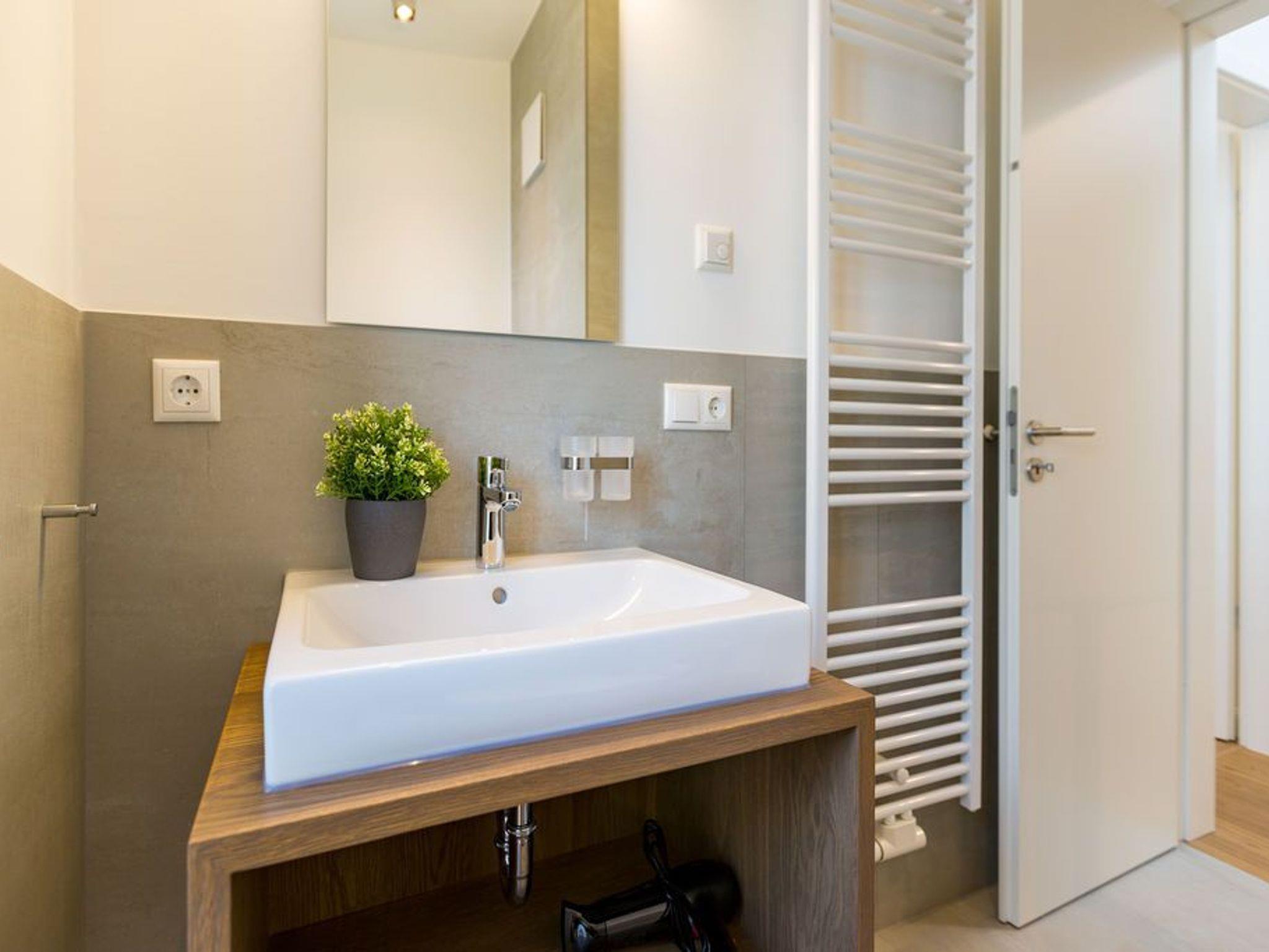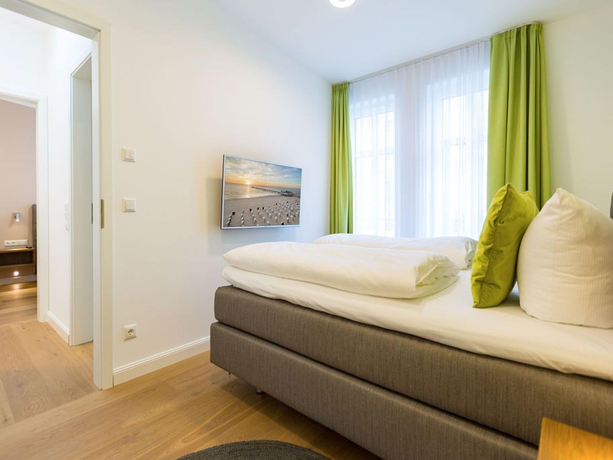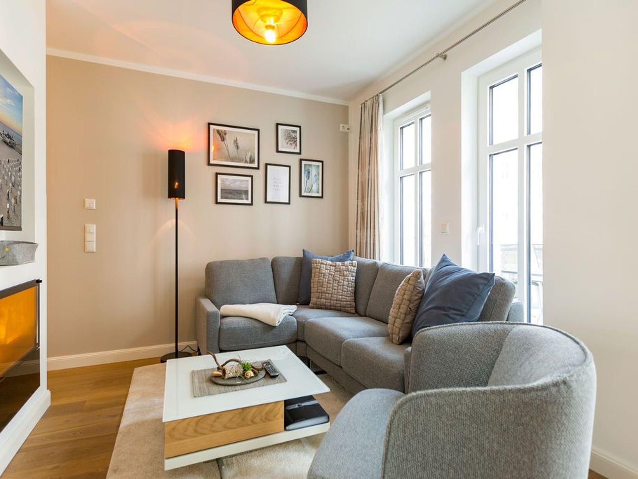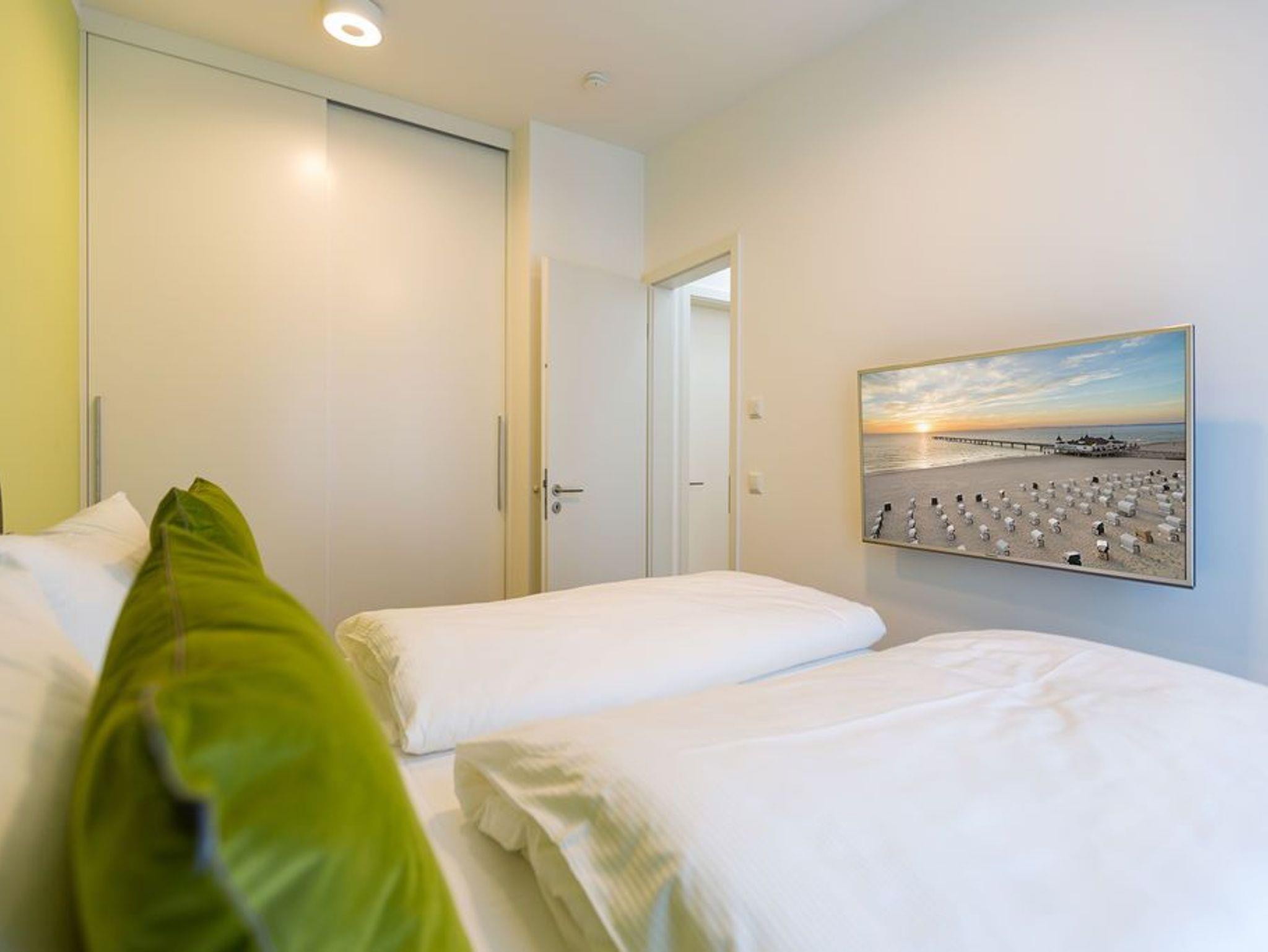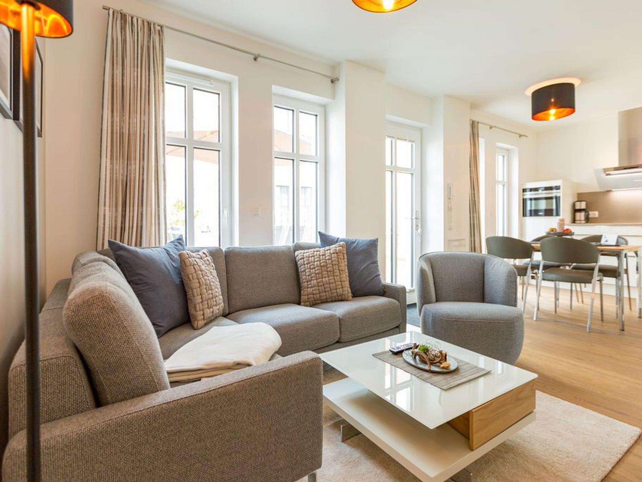 Kommen Sie rein! ?in dieses wunderschöne, 66 Quadratmeter große Urlaubsparadies. Das kleine Studio für bis zu vier Personen wartet nur darauf, auf seinen zwei Etagen Ihre Urlaubsträume wahr werden zu lassen. Über eine Sonnenterrasse mit Gartenmöbeln und großem Sonnenschirm betreten Sie das geräumige und geschmackvoll eingerichtete Wohn-Esszimmer. Eine offene Wohnküche mit allem Schnick und Schnack, hochwertigen Geräten und erlesenem Geschirr schließt sich dem Wohnbereich im Erdgeschoss an. Absolutes Highlight des Wohnzimmers sind nicht die großen, bodentiefen Fenster, die viel Licht einlassen, oder die bequeme Sofalandschaft mit Couch und Sessel, der große Flat-TV oder der großzügige Esstisch. Es ist der riesige Elektro-Kamin, der per Knopfdruck eine romantische Atmosphäre zaubern kann. In den Accessoires wird die Liebe zum Detail sichtbar. Im Erdgeschoss erwartet Entspannungshungrige zudem ein kleiner Wellness-Himmel. Im Badezimmer gibt es neben einer Dusche und einem WC eine Finnische Sauna. Schietwetter-Tage? In diesem Appartement werden solche Tage zu den wahren Erholungstagen. Über eine Treppe geht?s ab in den 1. Stock. Zwei Schlafzimmer und ein Bad mit Dusche und WC sind Rückzugsorte ins Traum- und Kuschelland. Beide Schlafzimmer ? je nach Geschmack in frischem und in warmem Farbton gehalten ? verfügen über ein bequemes Boxspringdoppelbett (1,80 m x 2,00 m), einen geräumigen Schrank bzw. eine Kommode mit viel Ablageflächen und einen Flat-TV. In einem Abstellraum befindet sich eine Waschmaschine. Bei Anreise sind die Betten bereits bezogen und Handtücher liegen bereit. Der Tiefgaragenplatz Nummer 11 ist für Ihr Auto reserviert.