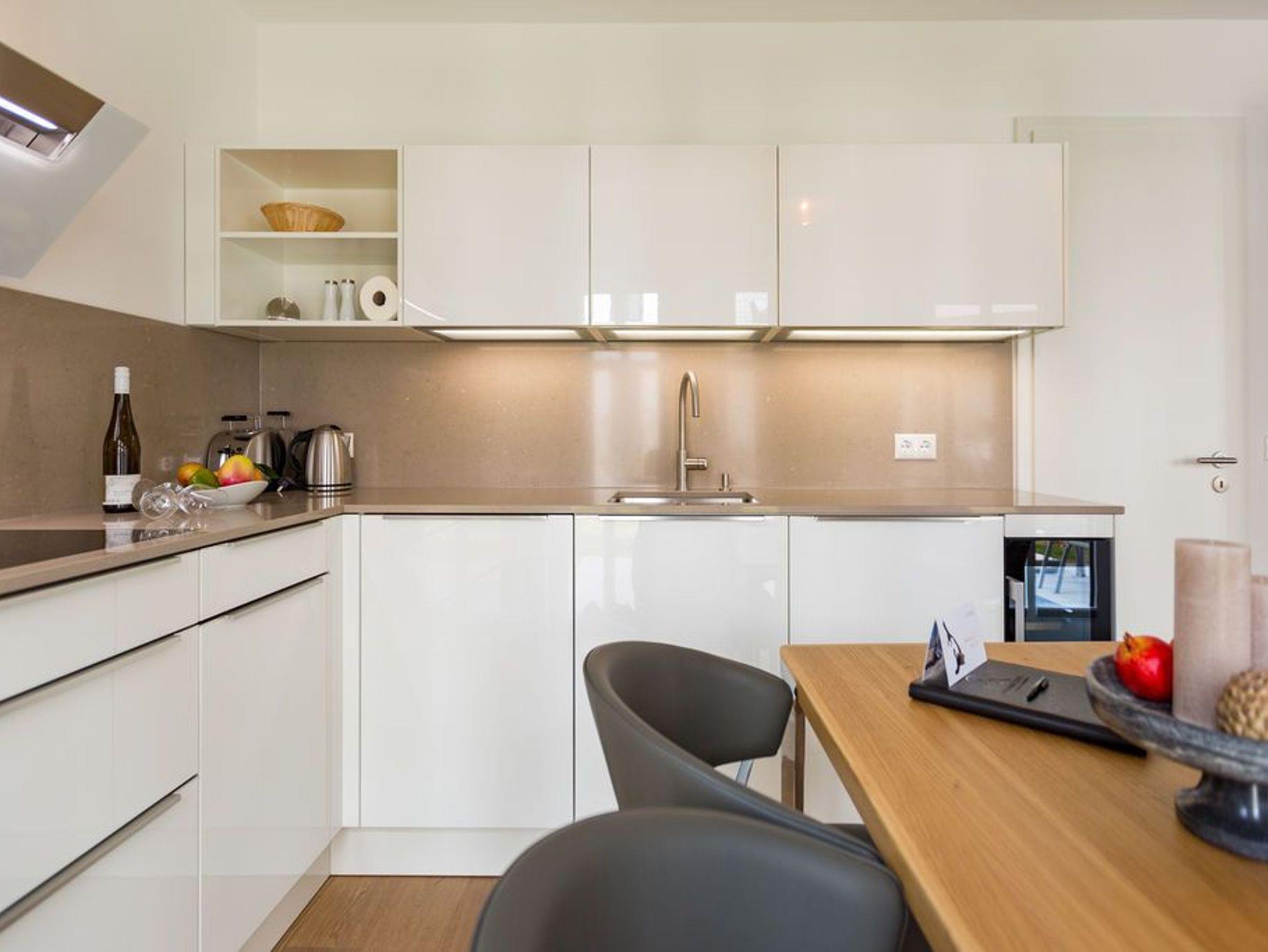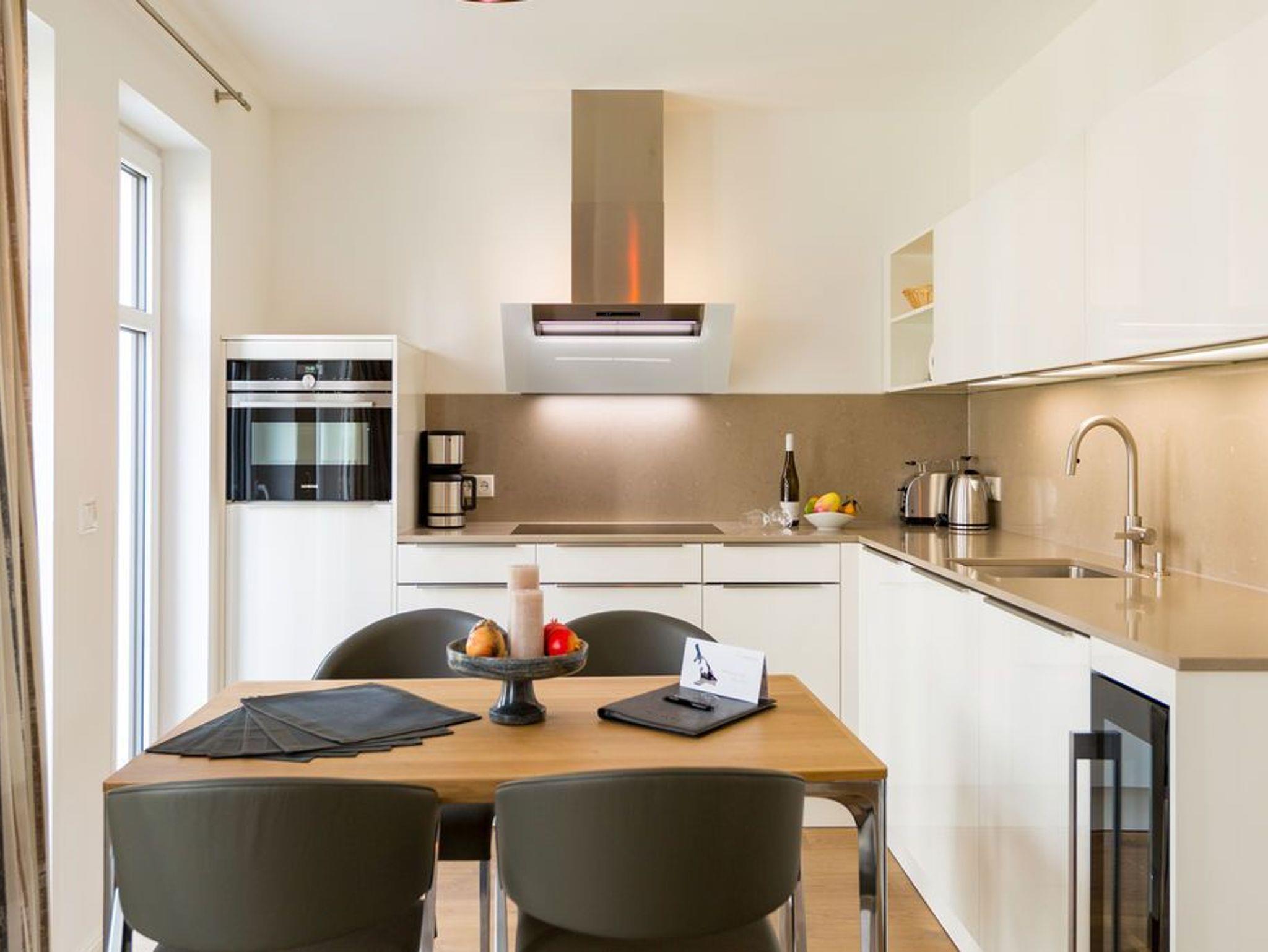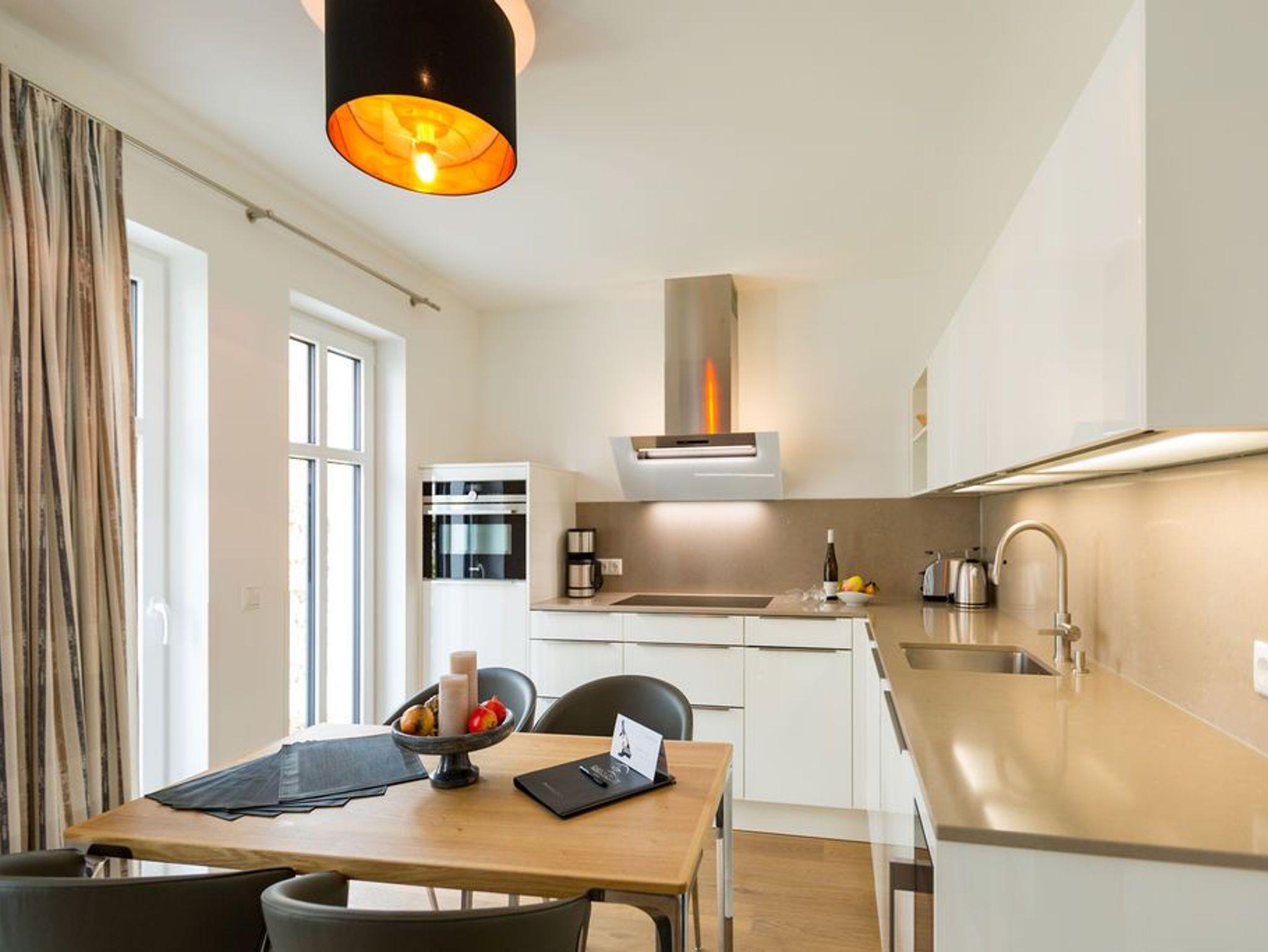 Mitten im Herzen des alten Seebades Ahlbeck wartet das neu gebaute Quartier gegenüber dem alten Kurpark nur darauf ostseehungrigen Auszeitlern mit einem exquisiten und komfortablen Domizil den ersehnten Urlaub zu verschönern. Und das in unmittelbarer Nähe zum Strand, zur Ostseeweite, zum Meeresrauschen. Nur ein paar Schritte entfernt ist das grenzenlose Meeres-Blau. Die berühmte Bäderarchitektur at its best umgibt das schmucke Ferienareal mit seinen 13 Appartements und verleiht dem Viertel mondänen Charme. Denn hier hat schon in den 1920er Jahren die Berliner Oberschicht die Sommerzeit verbracht. Das Quartier am Kurpark bietet mit seinen Zwei- und Drei-Zimmer-Appartements modernen Wohnkomfort in einem stylischen Ambiente. Jedes einzelne ist großzügig konzipiert und hat eine helle und gemütliche Atmosphäre. Die Einrichtungen sind geschmack- und stilvoll. Naturmaterialien und eine hochwertige Ausstattung zeichnen jedes einzelne Ferien-Appartement aus. In die Wohnungen in den Obergeschossen des Haupthauses gelangen Sie bequem mit dem Fahrstuhl. Alle Appartements besitzen Balkone oder Terrassen. Zur Ausstattung gehört zudem bei einigen eine vollausgestattete und hochwertige Küche, ein Kamin, eine Sauna, teilweise ein separates WC oder sogar Badezimmer sowie ein Tiefgaragenstellplatz (Tiefgarageneinfahrt/Höhe 2,05 m) . Aus den oberen Etagen haben Sie zum Teil Meerblick. Das an das Haupthaus angrenzende Gartenhaus verfügt über großzügig geschnittene Studios, die sich über zwei Etagen erstrecken. Wer nicht einfach nur eine Bleibe sucht, sondern sich im Urlaub mit Schönem umgeben möchte, findet im Quartier am Kurpark ein kleines Paradies auf Zeit.