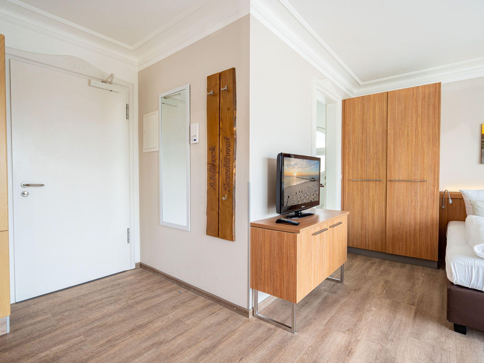 Die 1-Raum-Ferienwohnung Nr. C08 in der Villa Seedüwel bietet auf 35 qm idealen Platz für zwei Personen und befindet sich im 2. Obergeschoss. Der offene Wohnbereich verfügt über eine gut ausgestattete Küchenzeile mit einem 2-Platten-Cerankochfeld, einer Mikrowelle und einem Kühlschrank mit Gefrierfach. Ein Essplatz für zwei Personen, eine gemütliche Sitzgruppe und ein Flat-TV sorgen für eine angenehme Atmosphäre. Das komfortable Doppelbett (1,80 m x 2,00 m), eine Kommode und ein Kleiderschrank sind ebenfalls Teil des Wohnbereichs. Von hier aus gelangen Sie auf den sonnigen Süd-West-Balkon. Das Tageslicht-Bad ist mit einer Dusche, einem Waschbecken und einem WC ausgestattet. Ein Stellplatz in der Tiefgarage ( Einfahrthöhe 2,03m) des benachbarten Hauses ?Strandterrasse? ist für Sie reserviert. WLAN steht Ihnen kostenfrei zur Verfügung.