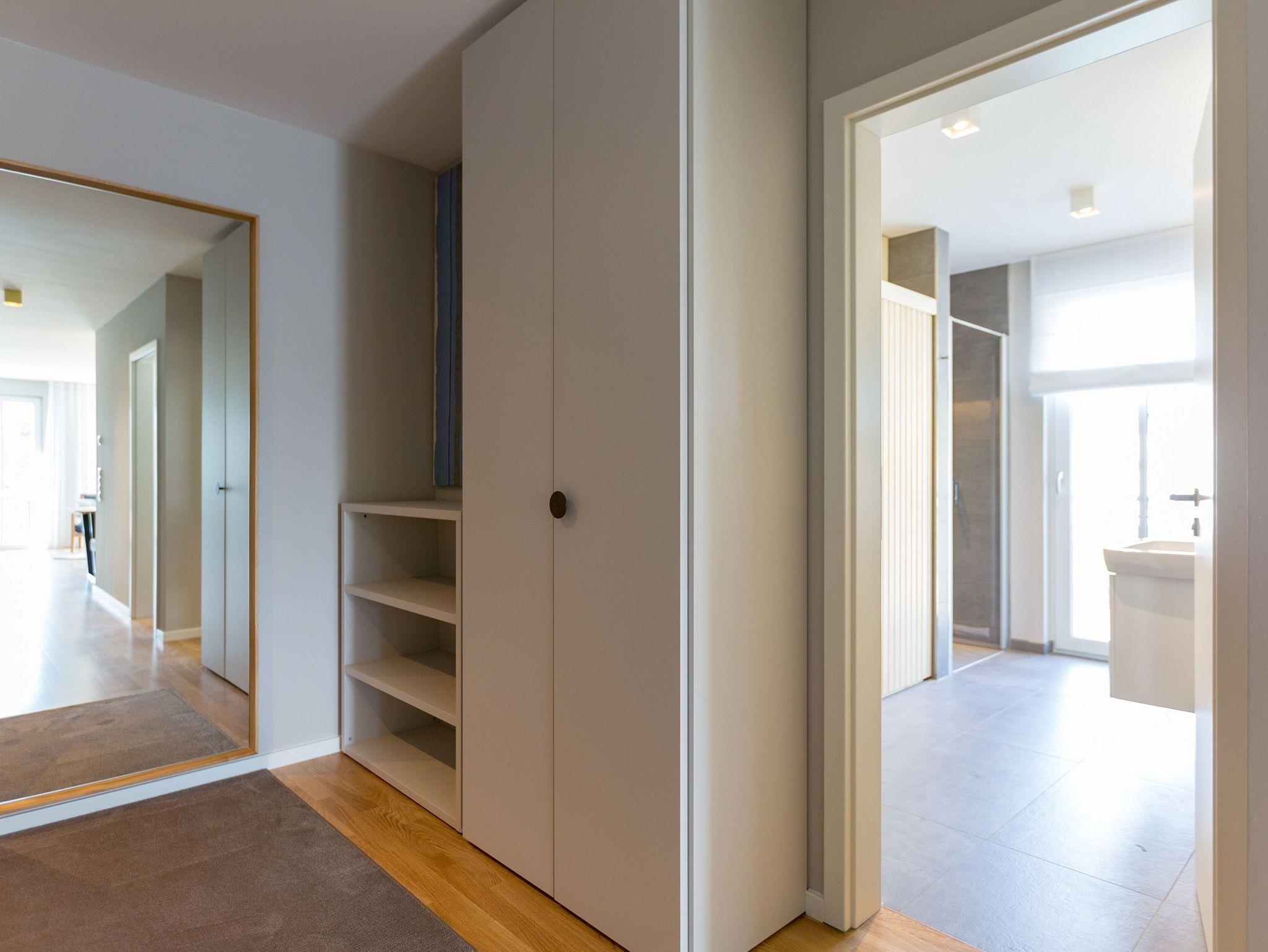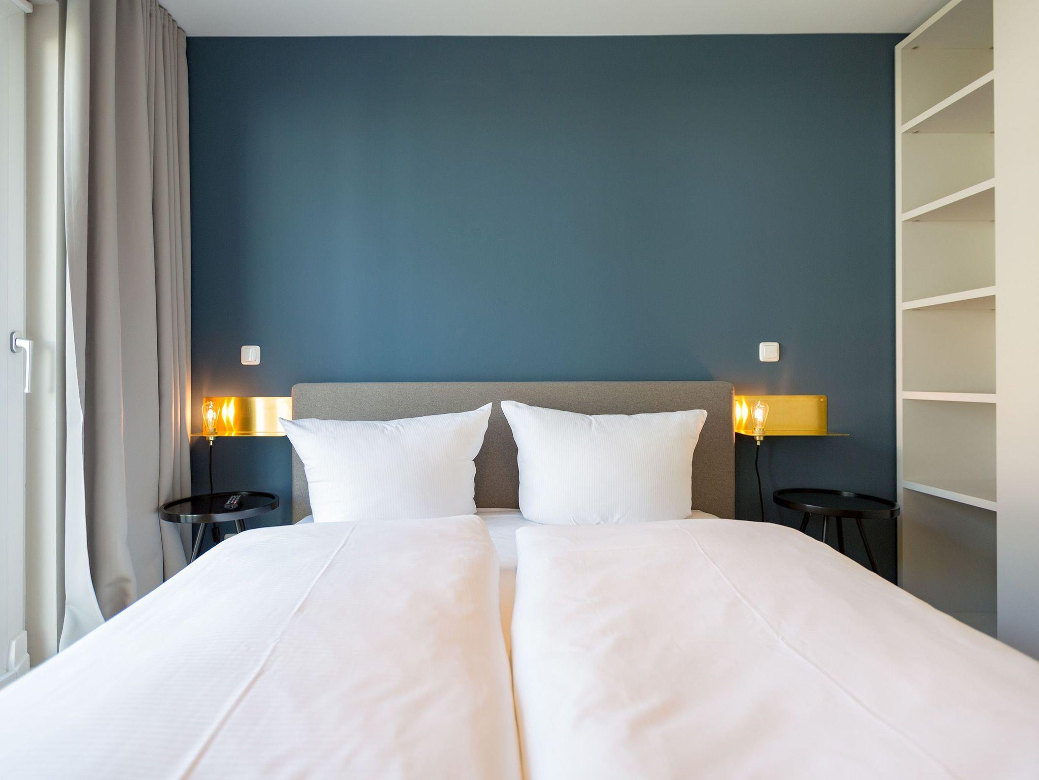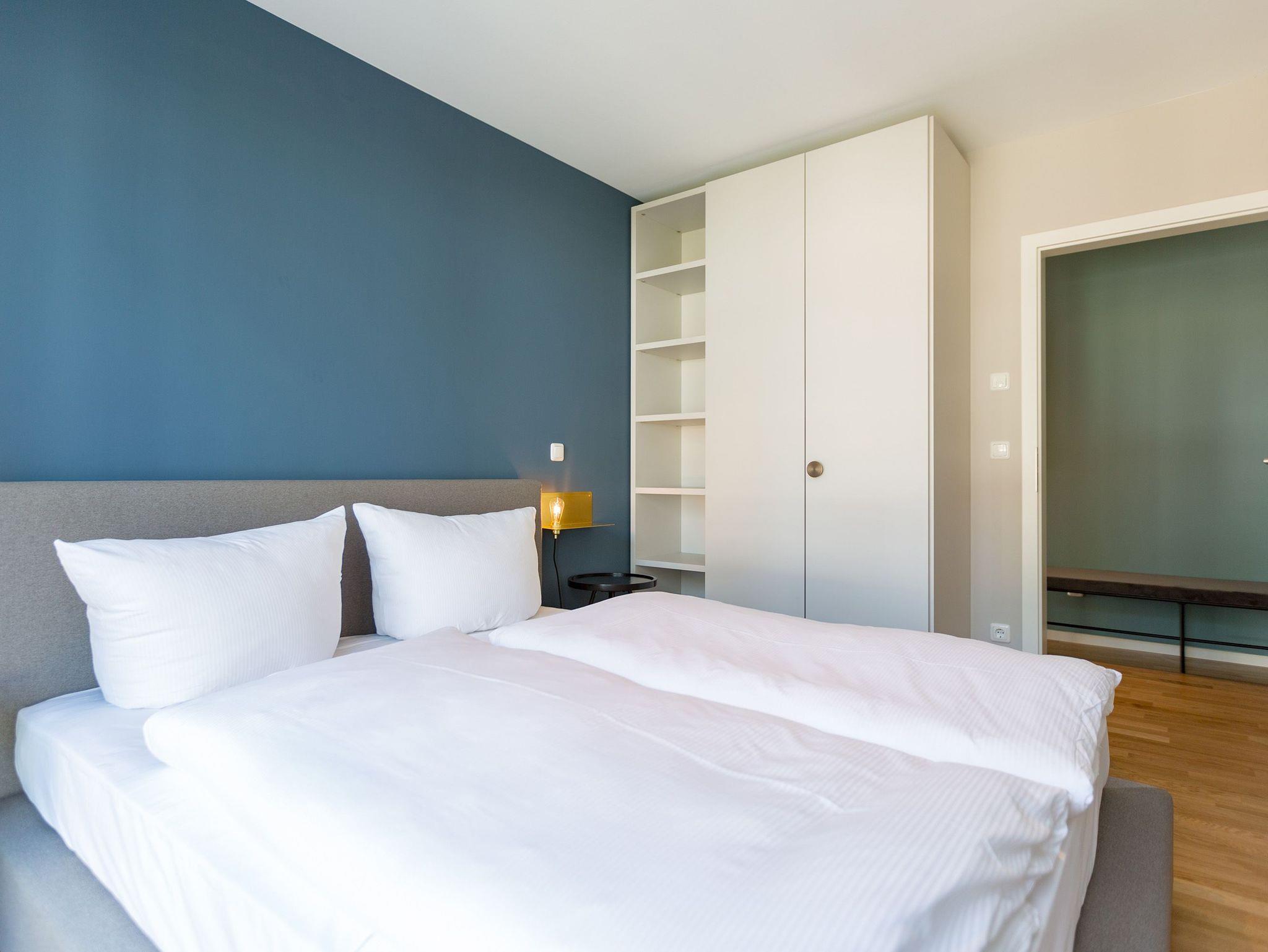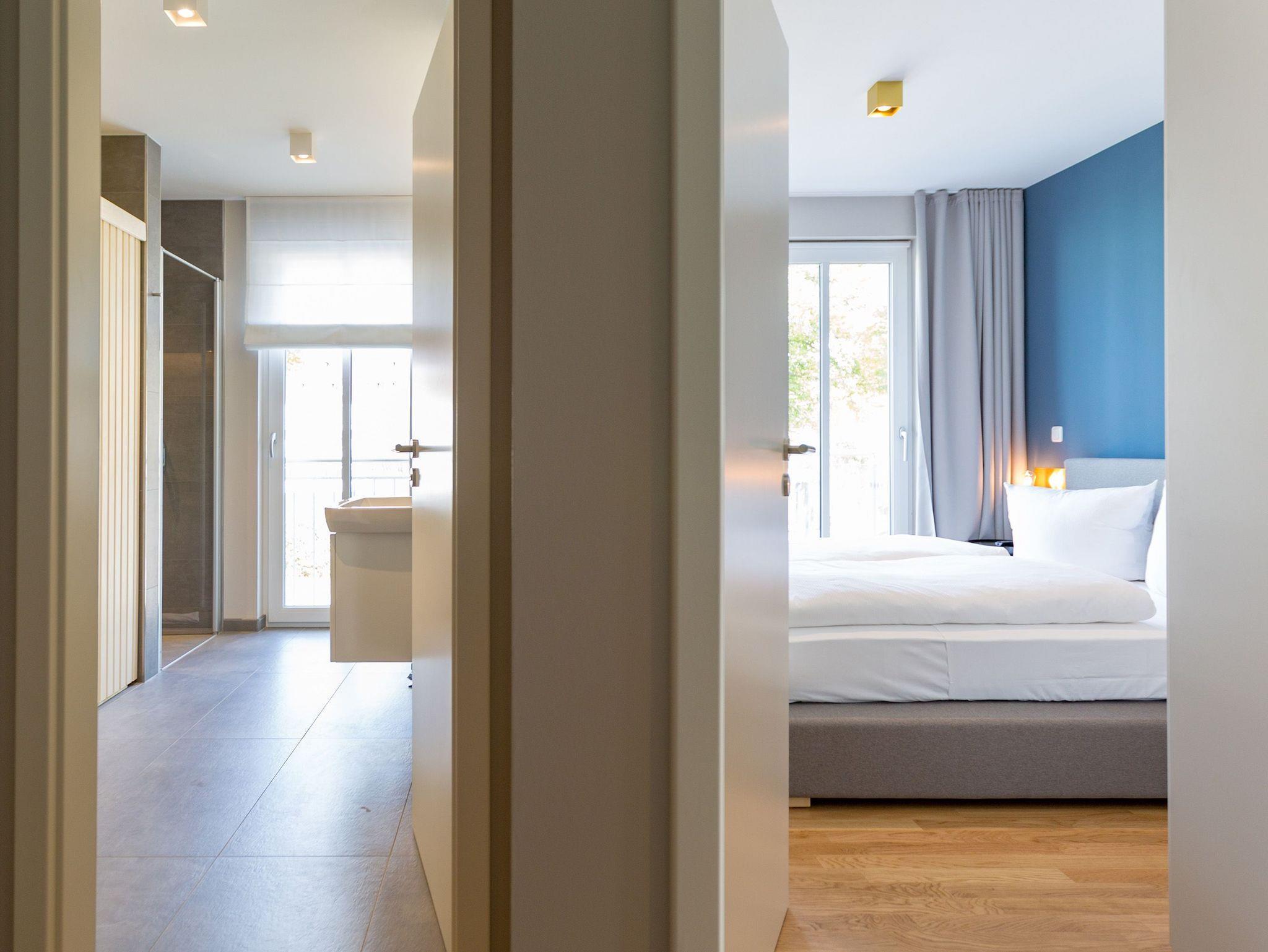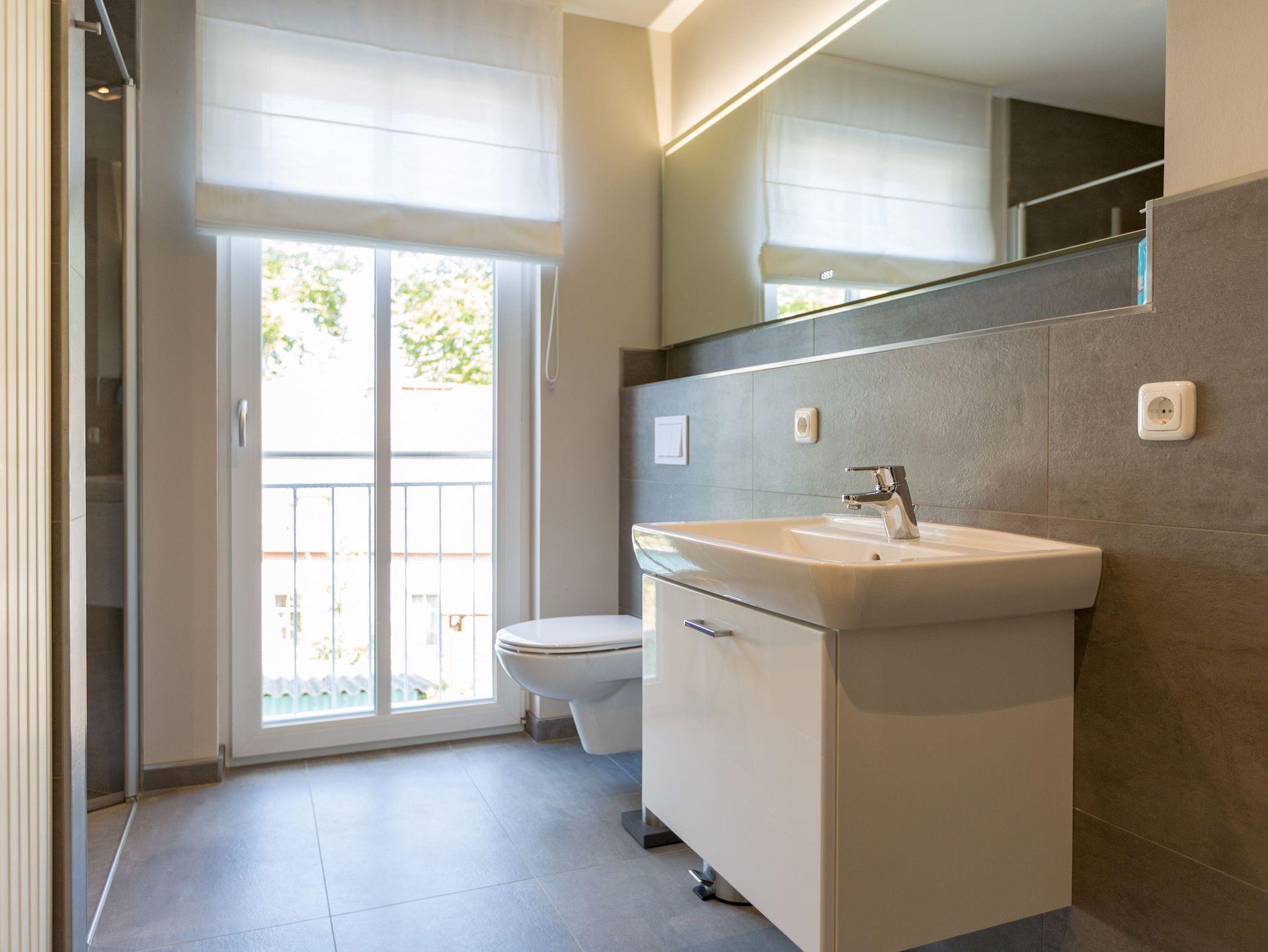Sanfte Grün- und Blautöne geben diesem kuscheligen, aber geräumigen Urlaubsparadies mit seinen 63 Quadratmetern ein maritimes Flair. Durch große, bodentiefe Fenster scheint viel Licht in das Zwei-Raum-Appartement, das durch die Aufbettungsmöglichkeit einer gemütlichen Schlafcouch im Wohnzimmer Platz für bis zu 3 Personen und ein Kind bietet. Auf den beiden Balkonen (1 x 2,5 Quadratmeter Richtung Süd-West [&] 1 x 8 Quadratmeter Richtung Westen) können Sie nicht nur die Sonne genießen. Auch das Rauschen der Ostsee ist hier ganz nah. Kein Wunder, denn bis zum Meer sind es nur ein paar Meter. Das große Wohn-Esszimmer hat noch einiges mehr als eine Schlafcouch zu bieten. Ein kuscheliges Highlight ist der urige Gas-Kamin, der an ungemütlichen Tagen für wundervolle Wärme sorgt. Ein großer Flat-TV bietet Home-Entertainment vom Feinsten. Und der schöne Essplatz lädt zu gemeinsamen, kulinarischen Muße- und Genussstunden ein. Alles für die Zubereitung feiner Speisen Notwendige finden Sie in der modernen und mit hochwertigen Markengeräten versehenen, offenen Küche. Einen eigenen, kleinen Balkon hat das Schlafzimmer, das mit seinem komfortablen Doppelbett (1,60 m x 2,00 m) mehr als nur Schlafvergnügen verspricht. Im Schrank finden Sie viel Ablagefläche für Ihr Reisegepäck. Schließlich will man im Urlaub auf nichts verzichten müssen. Freuen Sie sich auf das Badezimmer. Denn es beherbergt eine kleine Entspannungsoase. Eine Finnische Sauna steht Ihnen hier zur freien Verfügung. Natürlich verfügt das Bad auch über einen Waschtisch, eine schöne, ebenerdige Dusche und ein WC. Für Ihren Urlaubskomfort haben wir die Betten bei Anreise bezogen und Handtücher liegen bereit. Das WLAN können Sie kostenfrei benutzen und ein Pkw-Stellplatz befindet sich am Haus.