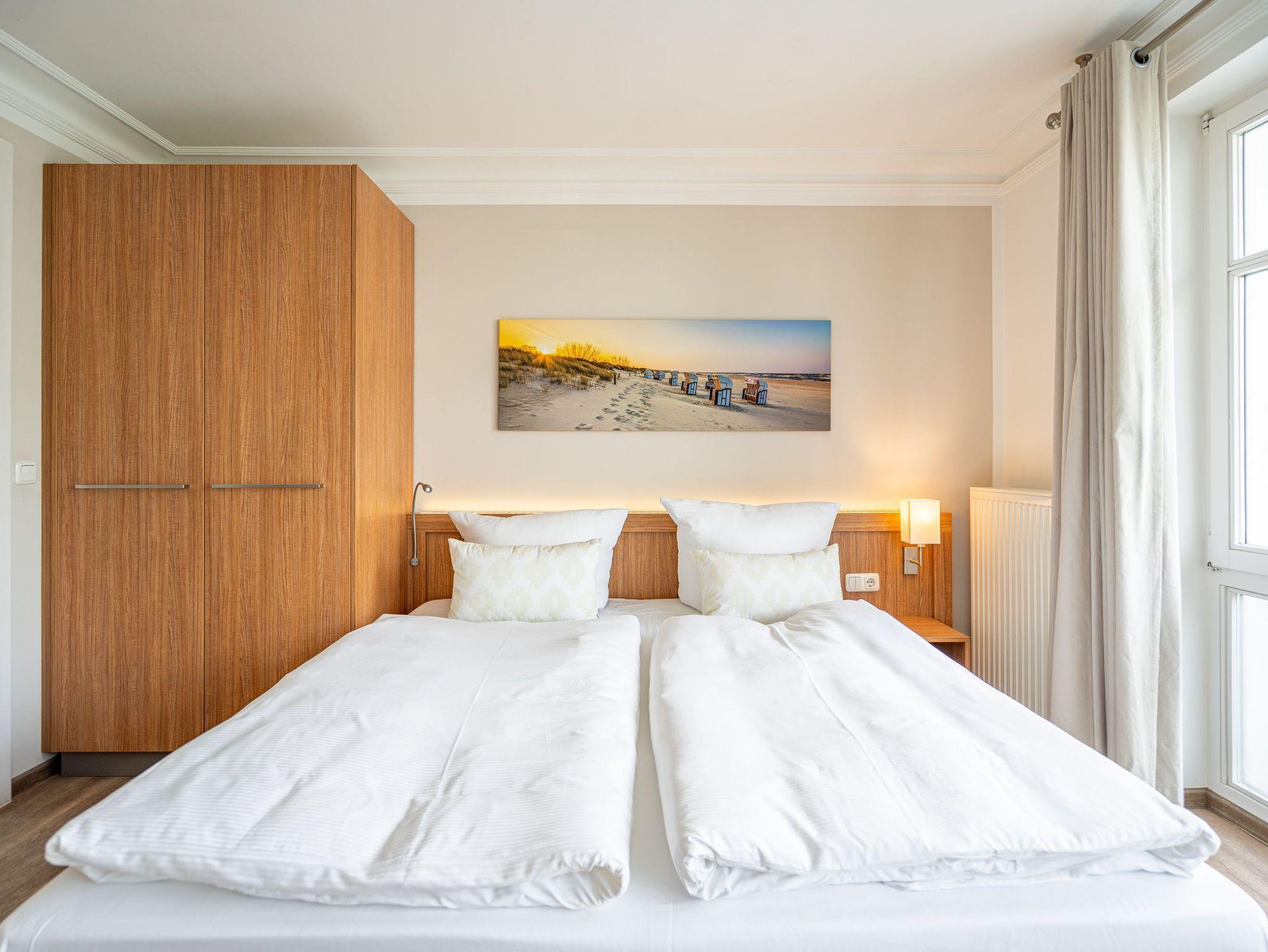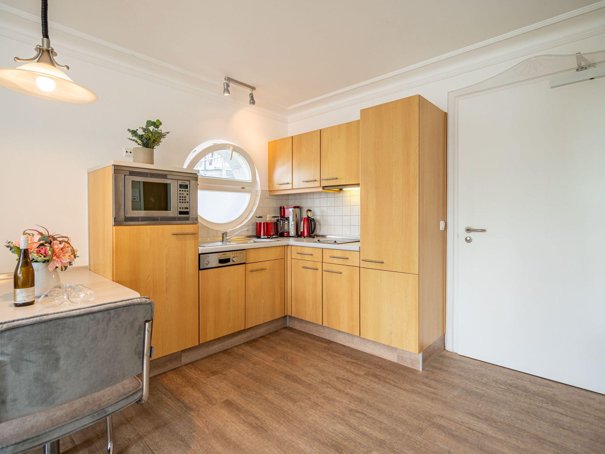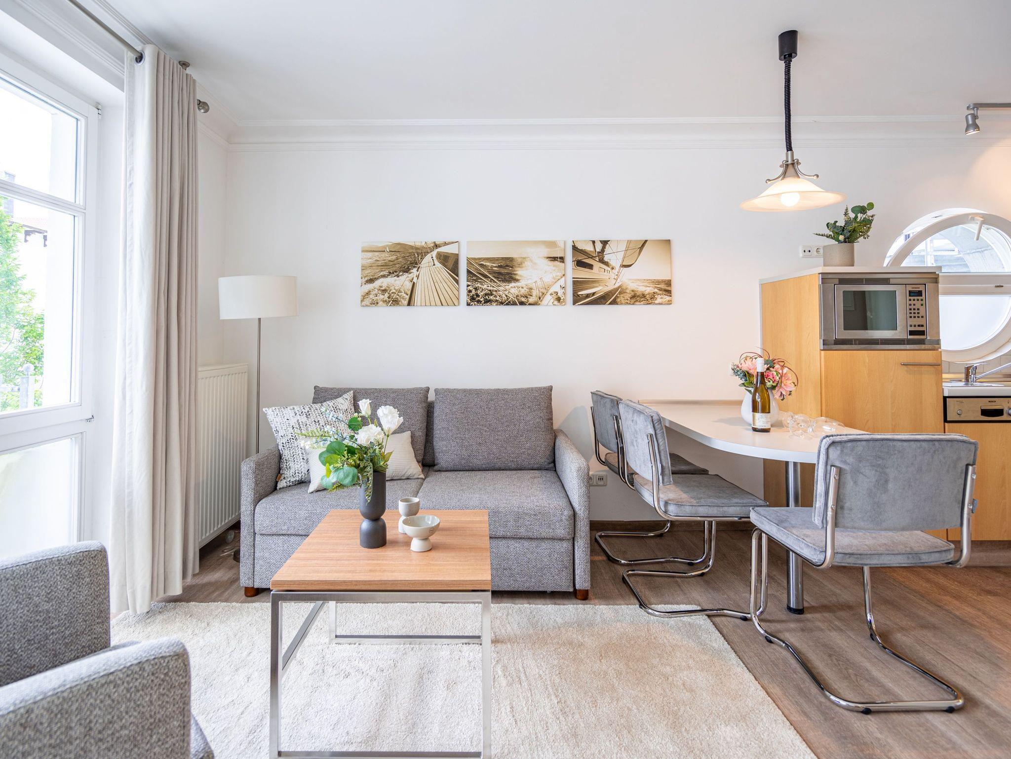 Die 1-Raum-Ferienwohnung Nr. C03 in der Villa Seedüwel bietet auf 35 qm komfortablen Platz für zwei Personen und befindet sich in der 1. Etage. Der offene Wohnbereich ist mit einer Küchenzeile ausgestattet, die ein 2-Platten-Cerankochfeld, eine Mikrowelle und einen Kühlschrank mit Gefrierfach umfasst. Ein Essplatz für zwei Personen, eine gemütliche Sitzgruppe und ein Flat-TV sorgen für Komfort. Das Doppelbett (1,80 m x 2,00 m) befindet sich ebenfalls im Wohnbereich und wird durch eine Kommode sowie einen Kleiderschrank ergänzt. Von hier aus gelangen Sie auf den sonnigen Süd-West-Balkon. Das Tageslicht-Bad verfügt über eine Dusche, ein Waschbecken und ein WC. Ein Stellplatz in der Tiefgarage ( Einfahrthöhe 2,03m) des benachbarten Hauses „Strandterrasse“ ist für Sie reserviert. WLAN steht Ihnen kostenfrei zur Verfügung.