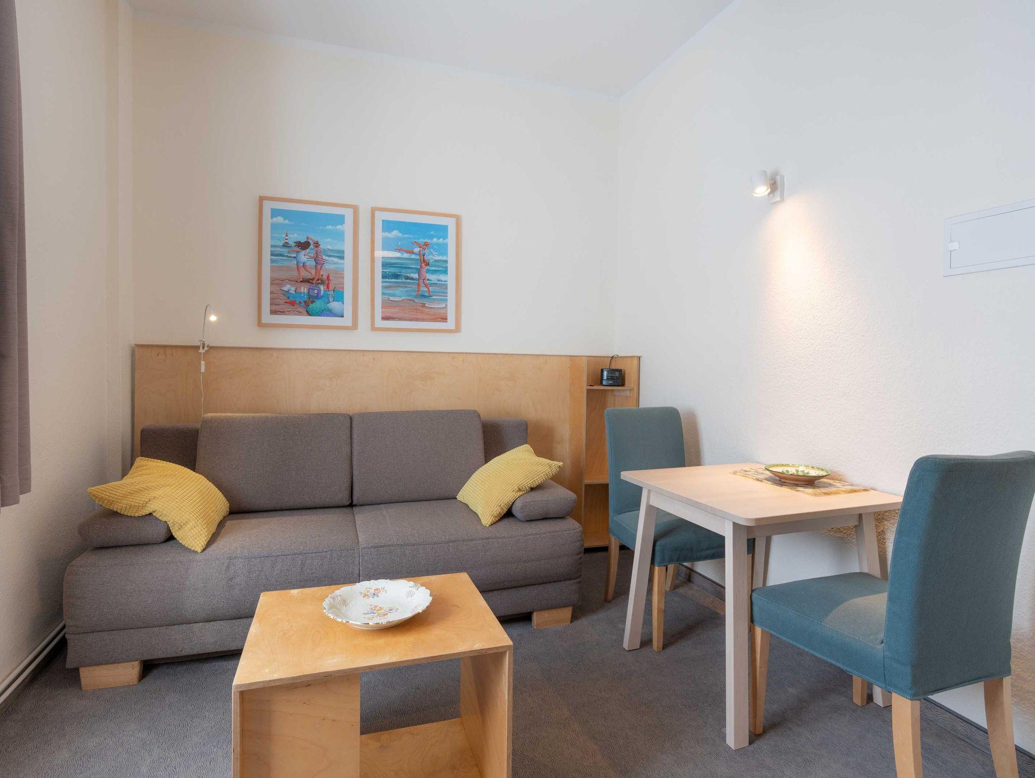 Das 20 m² große Appartment bietet Platz für zwei Personen. Es verfügt über ein Wohnzimmer mit Schlafcouch und Essbereich, einer gut ausgestatteten Küche und einem Duschbad.
