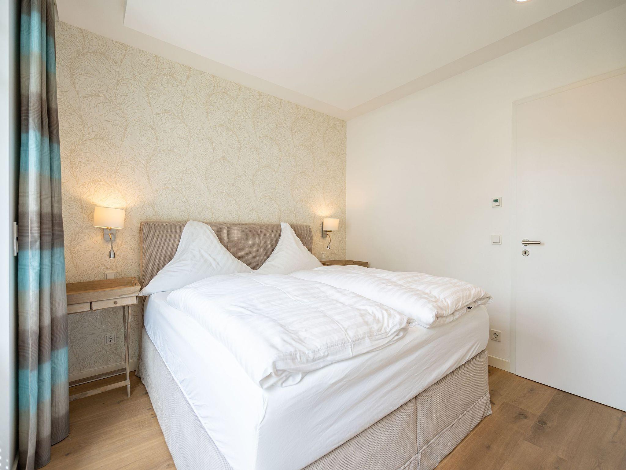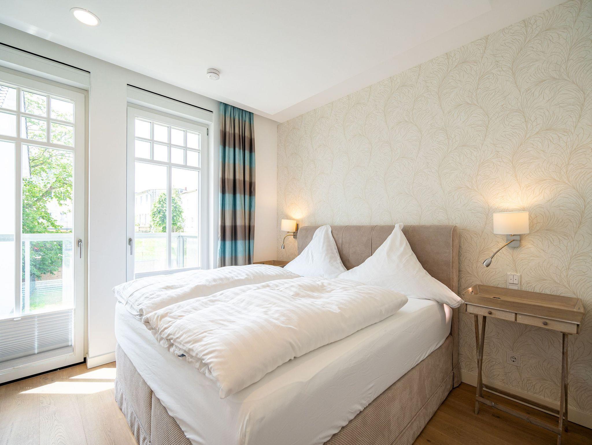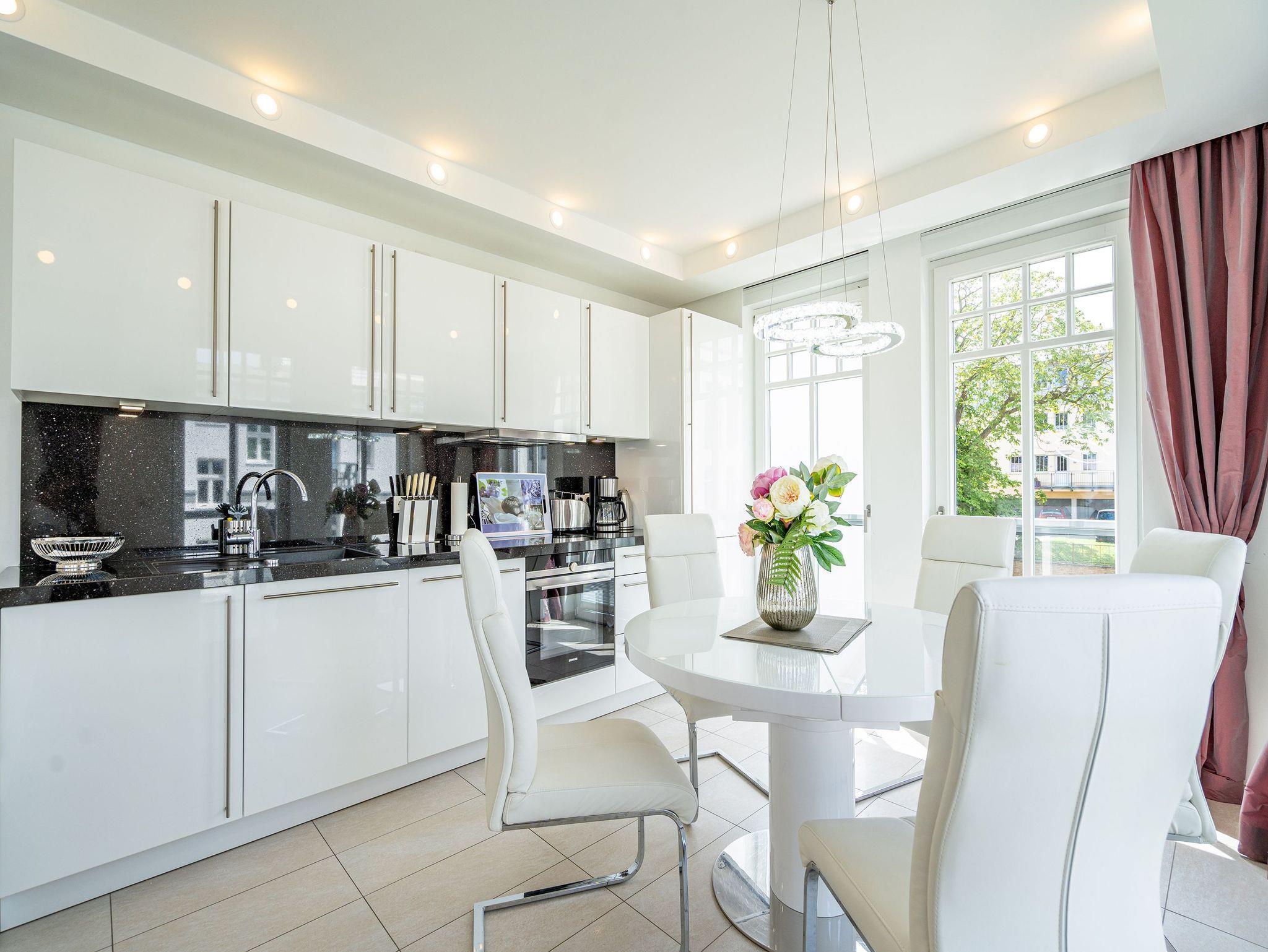 Willkommen in der Villa Westend - Appartement 10! Diese geräumige 3-Raum-Ferienwohnung im 1. Obergeschoss bietet Ihnen auf 84 Quadratmetern Platz für bis zu 4 Personen und 1 Kleinkind (bis 2 Jahre im Kinderreisebett). Der offene, helle Wohnbereich lädt mit einer gemütlichen Sitzgruppe, einem Flat-TV, Blue Ray Player, DVD Player, Radio und einem Elektrokamin mit Fernbedienung zum Entspannen ein. Die voll ausgestattete Küchenzeile verfügt über einen Backofen, ein Induktionsfeld, ein Mikrowellenkombigerät mit Grill, eine Spülmaschine, eine Kühlschrank- Gefrierkombination und eine Nespresso-Kapselmaschine. Hier können Sie Ihre Lieblingsgerichte zubereiten und diese am Essplatz genießen. Die Wohnung bietet zwei Schlafzimmer mit komfortablen Boxspringdoppelbetten (1,80 m x 2,00 m), Kleiderschrank und Flat-TV. Für Ihre Erholung stehen Ihnen zwei innenliegende Bäder zur Verfügung, jeweils mit Dusche, Waschtisch und WC. Ein Bad ist zusätzlich mit einer Finnischen Sauna ausgestattet, in der Sie wunderbar entspannen können. Als zusätzlichen Komfort können Sie den Waschtrockner kostenfrei nutzen. Die Ferienwohnung bietet Ihnen einen Nord-Ost-Balkon mit Meerblick, auf dem Sie den Tag mit einer Tasse Kaffee beginnen können, sowie einen kleinen Süd-West-Balkon. Ein PKW-Stellplatz in der Tiefgarage (Nr. 36) steht Ihnen ebenfalls zur Verfügung. Das WLAN-Netz in der Wohnung ist kostenfrei nutzbar.