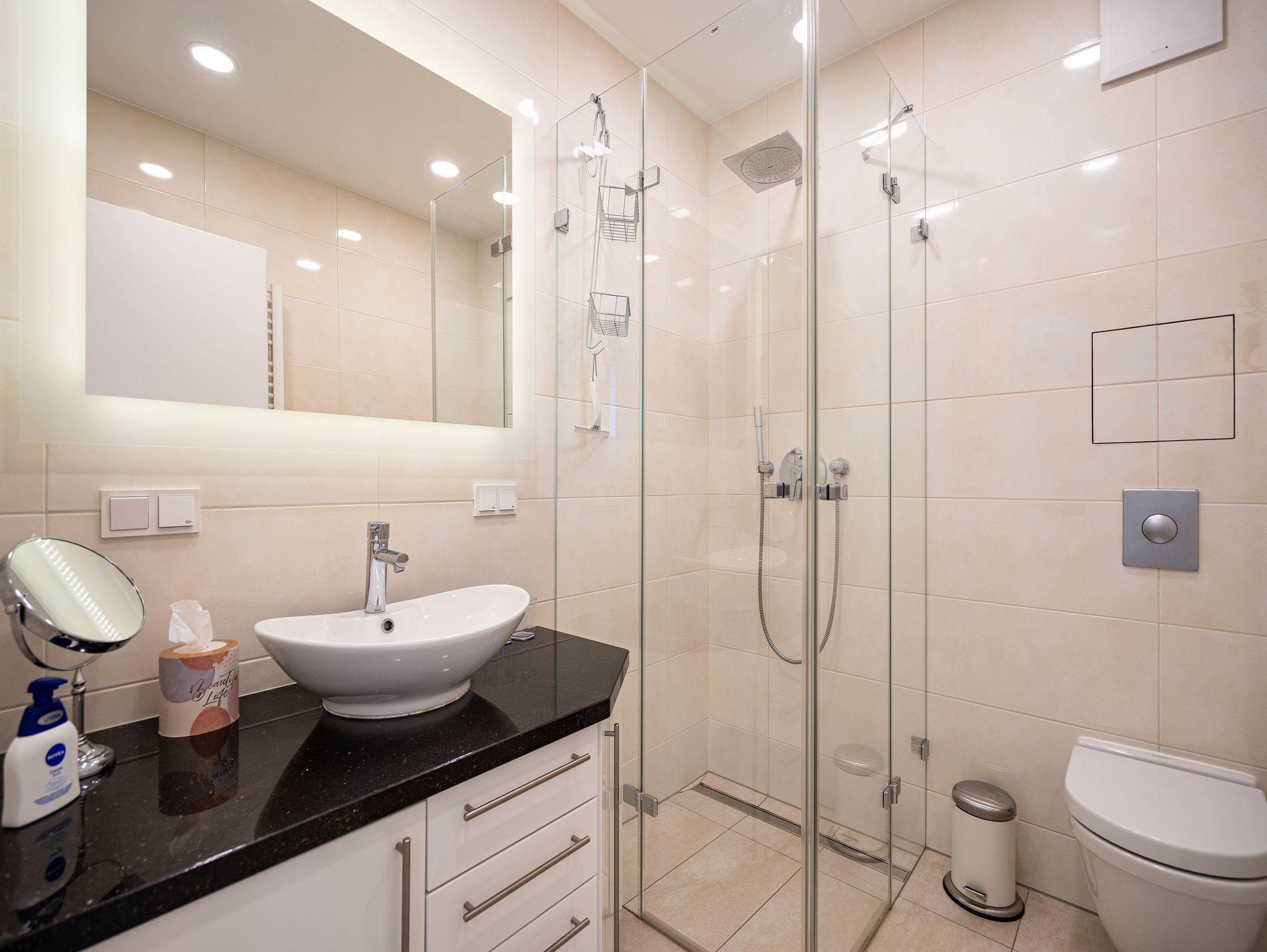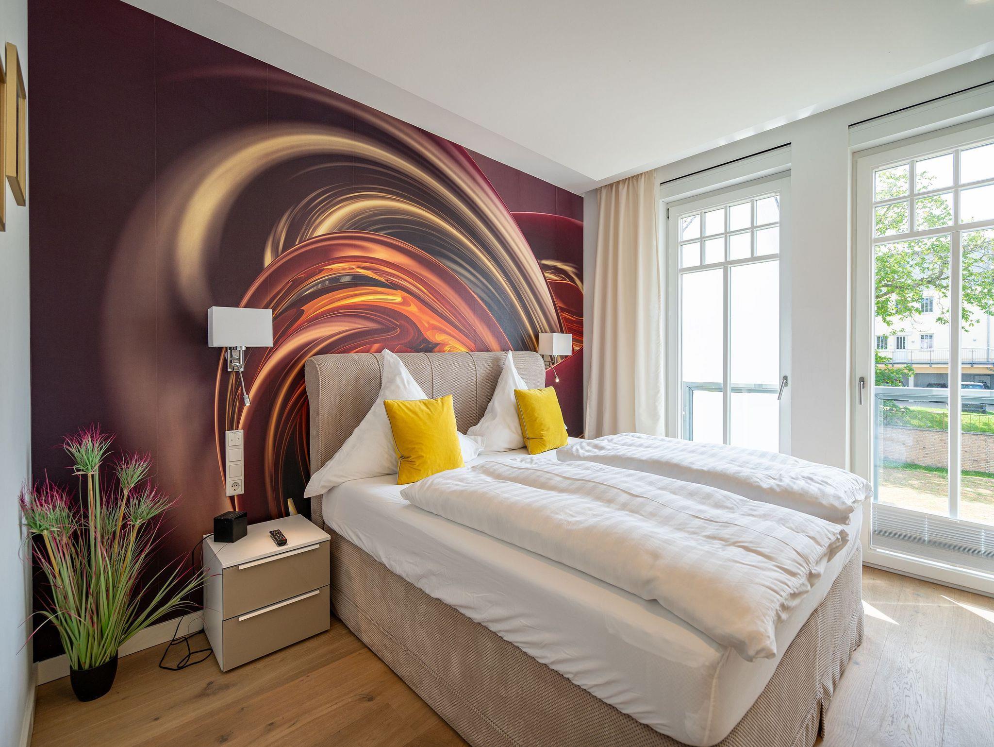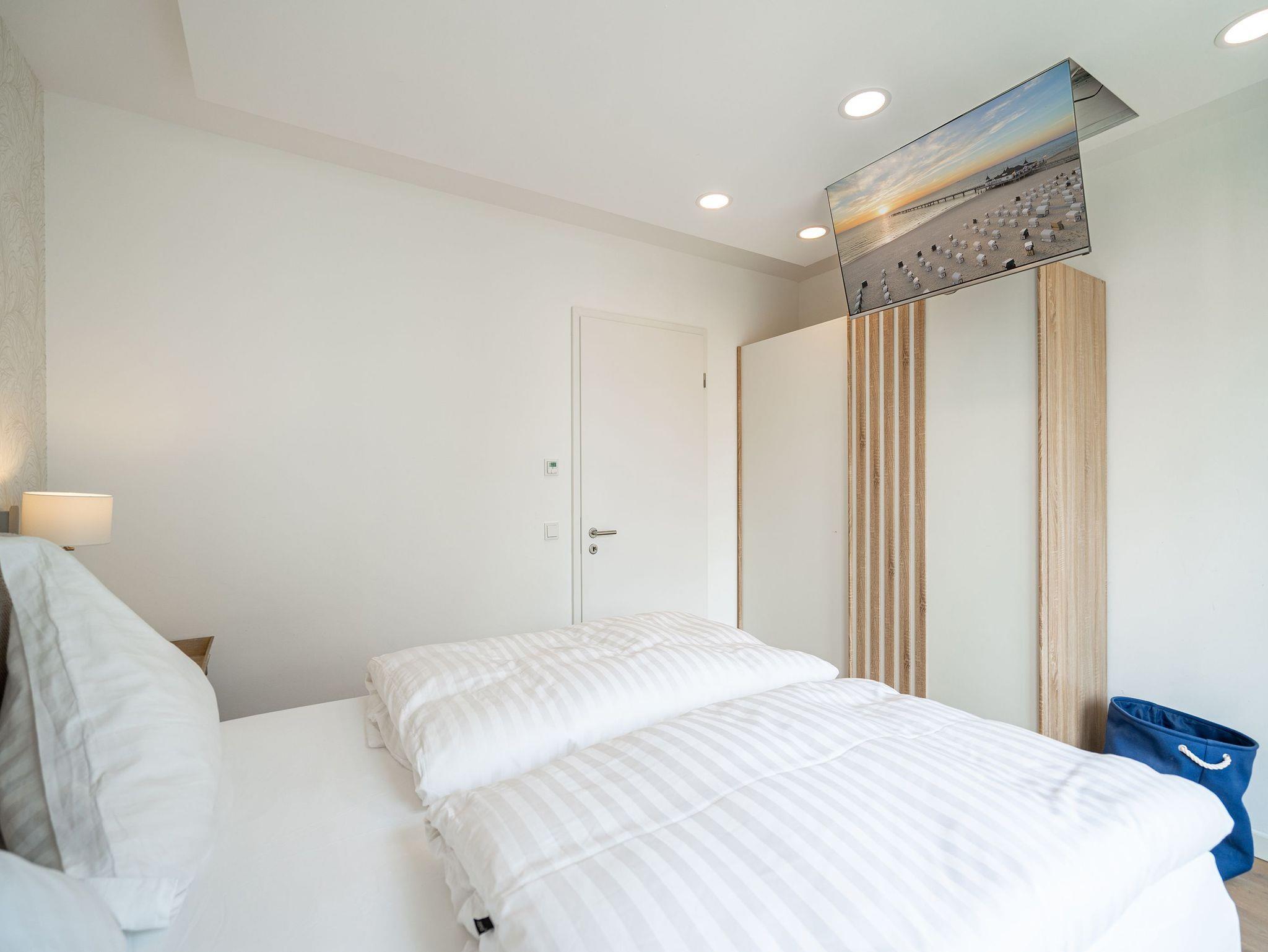Willkommen in der Villa Westend - Appartement 10! Diese geräumige 3-Raum-Ferienwohnung im 1. Obergeschoss bietet Ihnen auf 84 Quadratmetern Platz für bis zu 4 Personen und 1 Kleinkind (bis 2 Jahre im Kinderreisebett). Der offene, helle Wohnbereich lädt mit einer gemütlichen Sitzgruppe, einem Flat-TV, Blue Ray Player, DVD Player, Radio und einem Elektrokamin mit Fernbedienung zum Entspannen ein. Die voll ausgestattete Küchenzeile verfügt über einen Backofen, ein Induktionsfeld, ein Mikrowellenkombigerät mit Grill, eine Spülmaschine, eine Kühlschrank- Gefrierkombination und eine Nespresso-Kapselmaschine. Hier können Sie Ihre Lieblingsgerichte zubereiten und diese am Essplatz genießen. Die Wohnung bietet zwei Schlafzimmer mit komfortablen Boxspringdoppelbetten (1,80 m x 2,00 m), Kleiderschrank und Flat-TV. Für Ihre Erholung stehen Ihnen zwei innenliegende Bäder zur Verfügung, jeweils mit Dusche, Waschtisch und WC. Ein Bad ist zusätzlich mit einer Finnischen Sauna ausgestattet, in der Sie wunderbar entspannen können. Als zusätzlichen Komfort können Sie den Waschtrockner kostenfrei nutzen. Die Ferienwohnung bietet Ihnen einen Nord-Ost-Balkon mit Meerblick, auf dem Sie den Tag mit einer Tasse Kaffee beginnen können, sowie einen kleinen Süd-West-Balkon. Ein PKW-Stellplatz in der Tiefgarage (Nr. 36) steht Ihnen ebenfalls zur Verfügung. Das WLAN-Netz in der Wohnung ist kostenfrei nutzbar.
