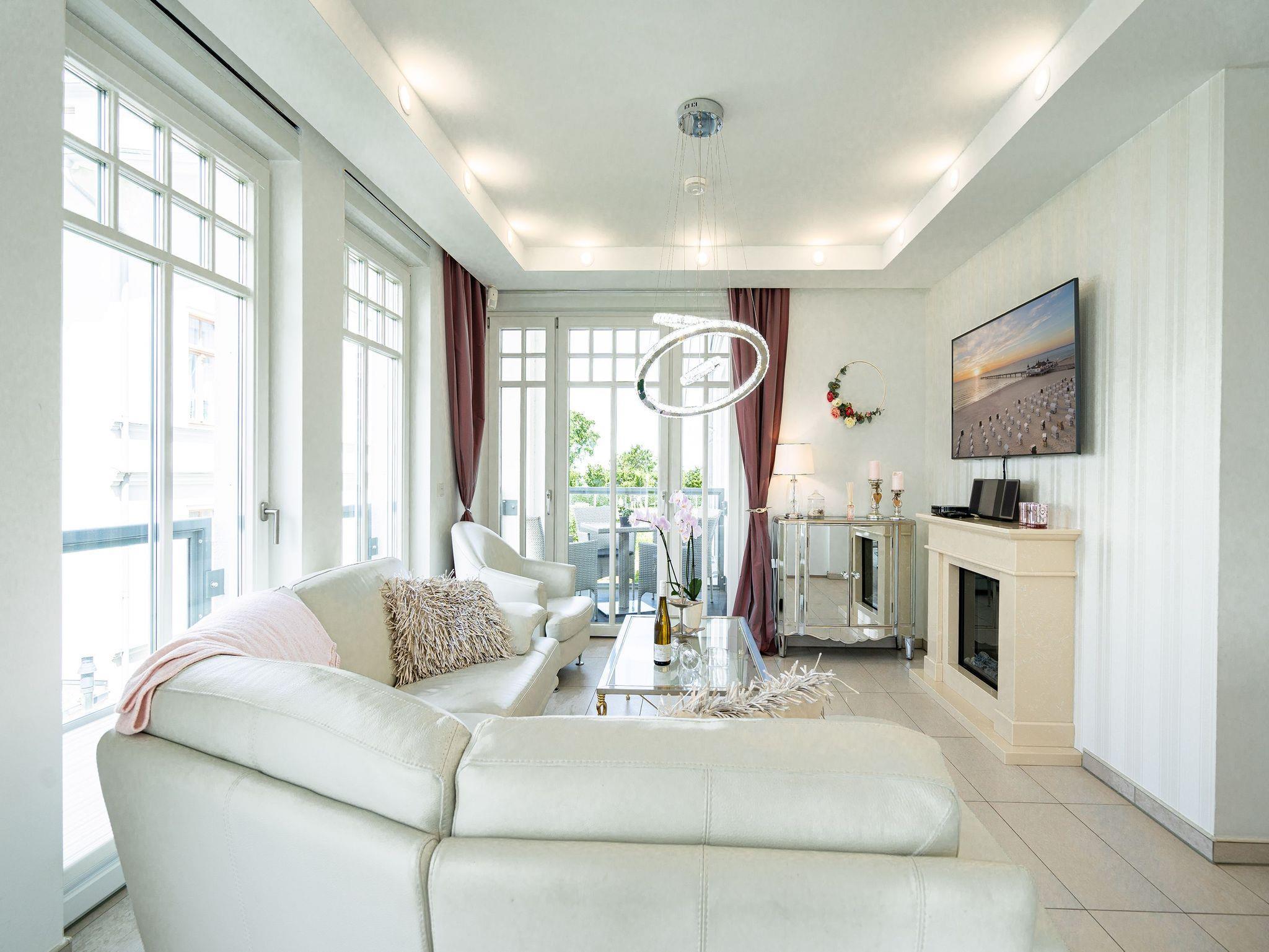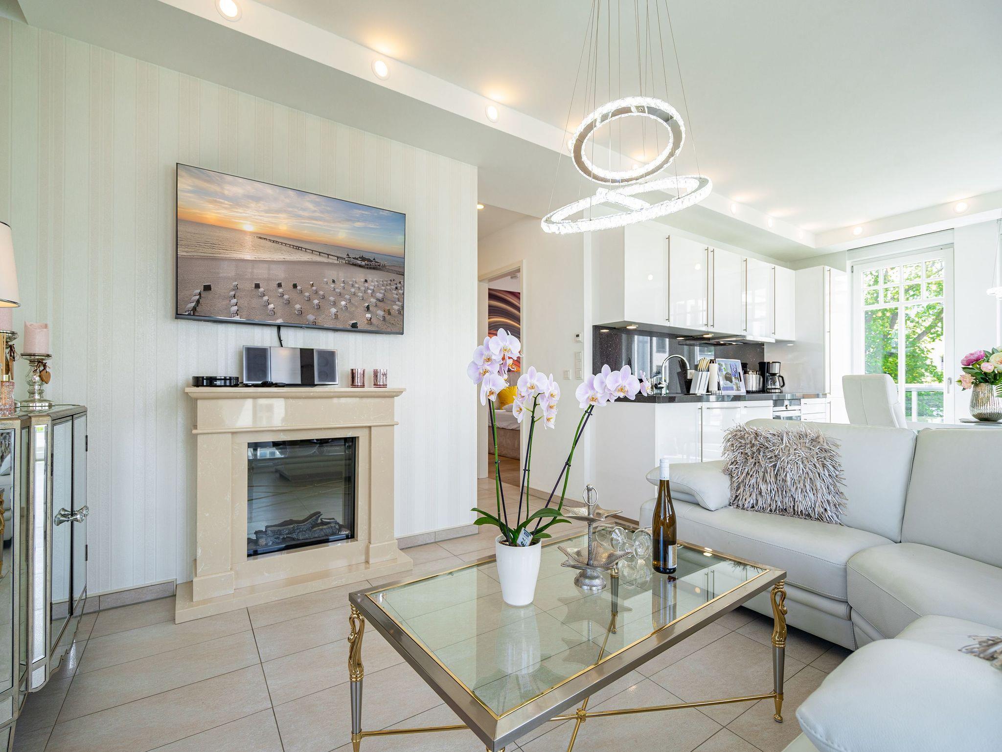 Meeresrauschen [&] Sonnenaufgang - Die Villa Westend im Seebad Ahlbeck ist ein Domizil der Extraklasse. Die Ausstattung der 3- und 4-Raum-Appartements wurde von Interieur-Designern mit sehr viel Liebe zum Detail geplant und gestaltet. Hochwertige Materialien, ausgesuchte Farben und Dekorationen und die Elektrokamine zaubern hier das passende Urlaubsambiente. Die wohnungseigenen Saunen sorgen nicht nur in der kalten Jahreszeit für eine angenehme Abwechslung vom Alltag. Und das Meer liegt quasi vor Ihrer Haustür, nur ein paar Schritte über die Promenade - schon stehen Sie mit den Füßen im Sand. Aus vielen der Appartements genießen Sie einen wunderschönen Blick auf die Ostsee. Möblierte Balkone und Terrassen laden zum Relaxen ein. Ihre Villa Westend freut sich auf Sie und wird Sie mit traumhaften Urlaubstagen auf Usedom verwöhnen! Ihr Fahrzeug parken Sie ganz bequem auf einem Stellplatz in der Tiefgarage des Hauses. Ihre Fahrräder können Sie ebenfalls in der Tiefgarage im Fahrradabstellraum abstellen.