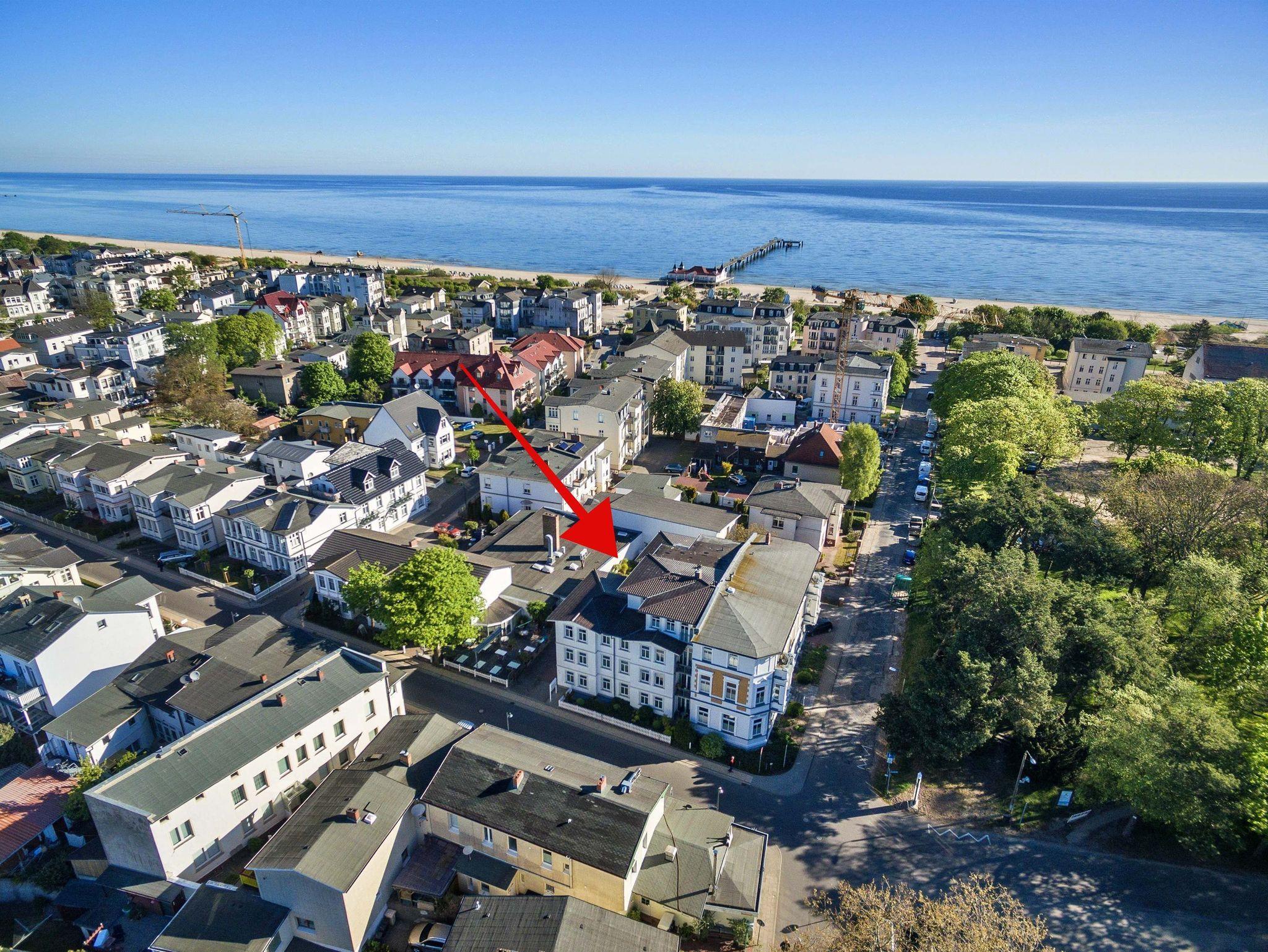 Ein besonderes Highlight ist der Saunabereich im Obergeschoss mit herrlichem Blick auf die Ostsee und die Dächer des Seebades - ideal zum Abschalten und Wohlfühlen.