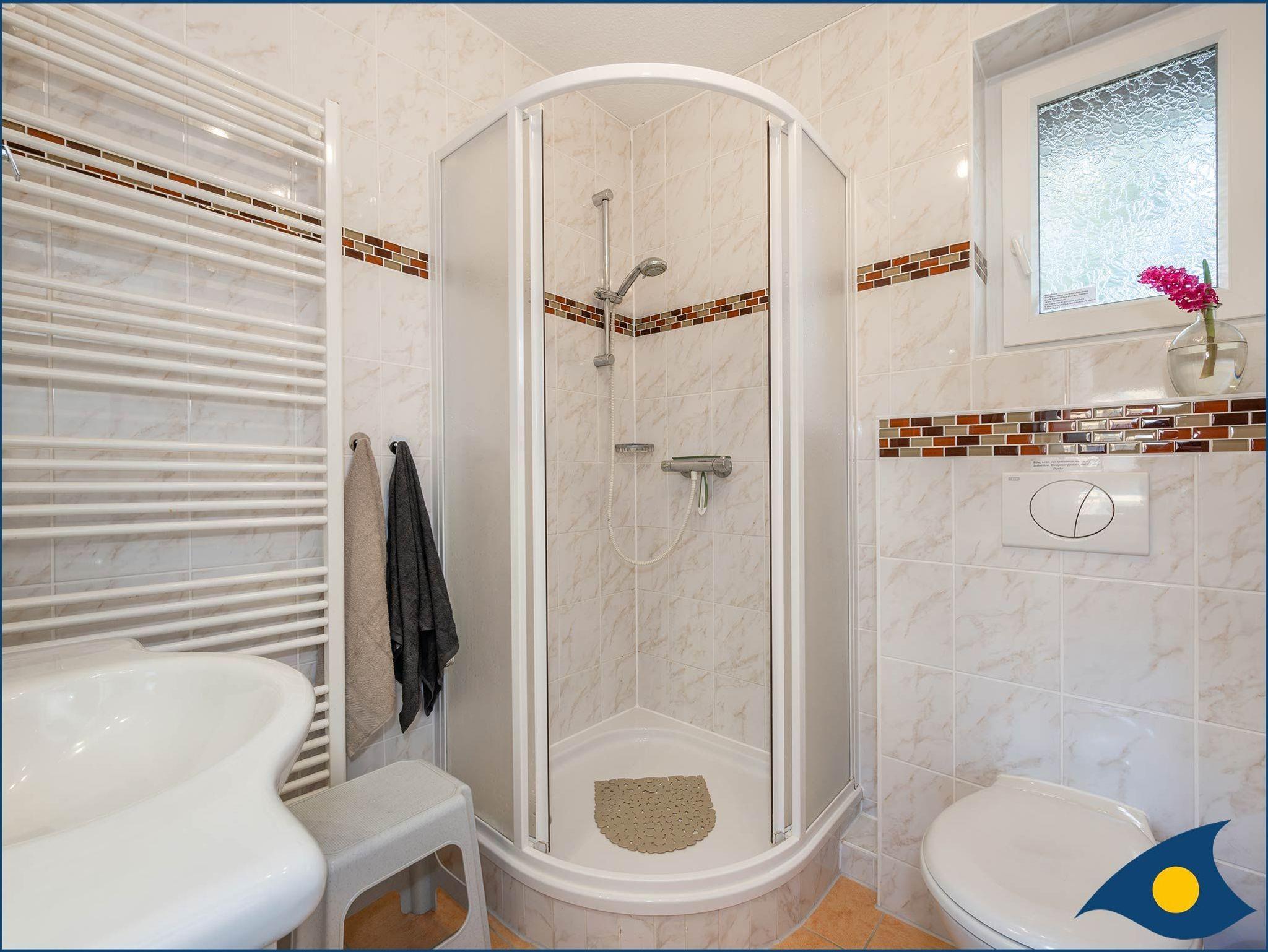 Es befinden sich auf dem Grundstück fünf Ferienunterkünfte - ein kleines freistehendes Ferienhaus mit zwei Ferienwohnungen im 1. OG (Balkonstudio links & rechts) und einer großen Ferienwohnung im Erdgeschoss, sowie ein Bungalow mit zwei Ferienwohnungen (Bungalow links & rechts). Die Wohnungen im Bungalow können mittels einer Zwischentür auch zusammengelegt werden.