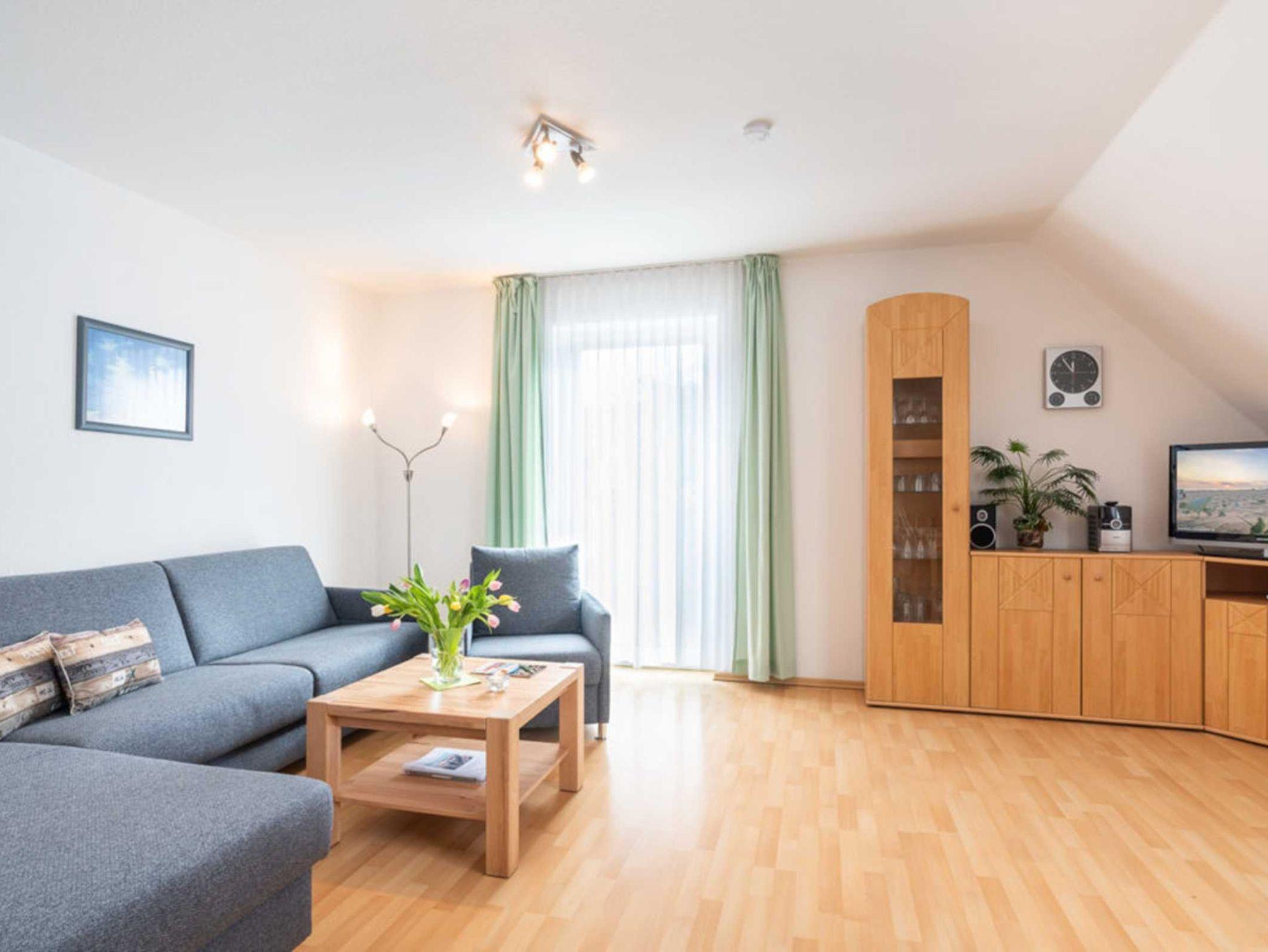 Im Wohnbereich ist eine Schlafcouch als Aufbettung für die 5. und 6. Person vorhanden, in beiden Schlafzimmern befindet sich jeweils ein Doppelbett.