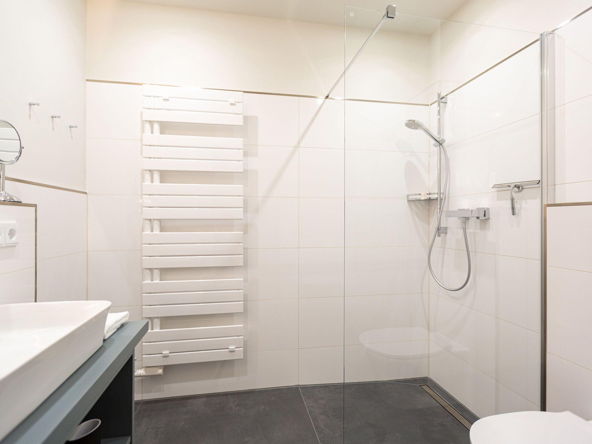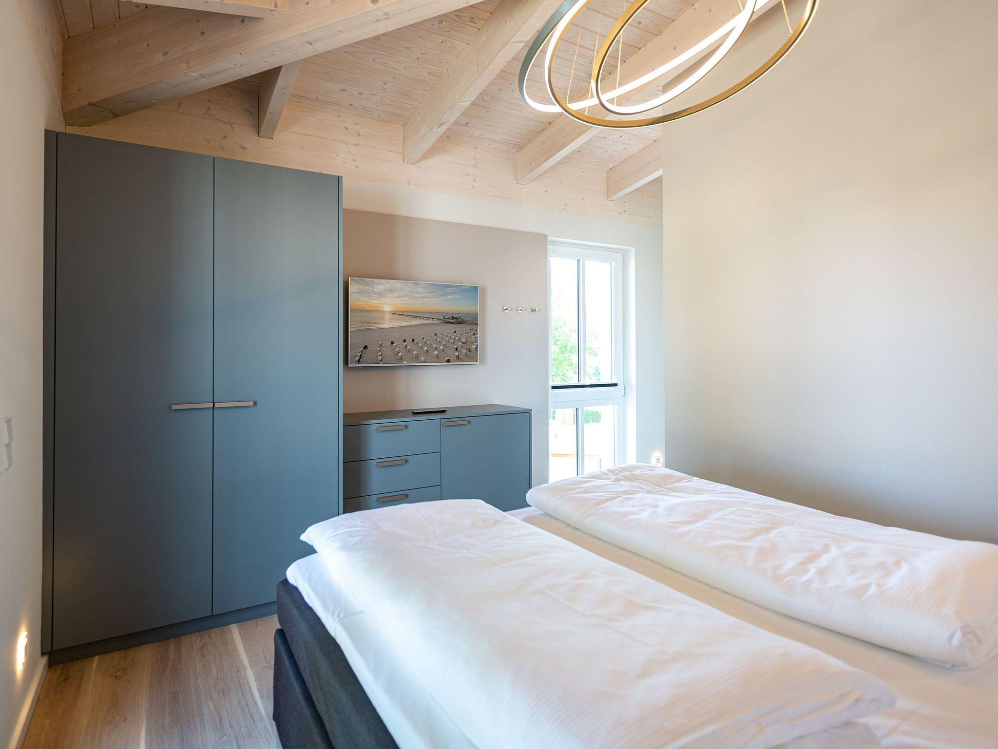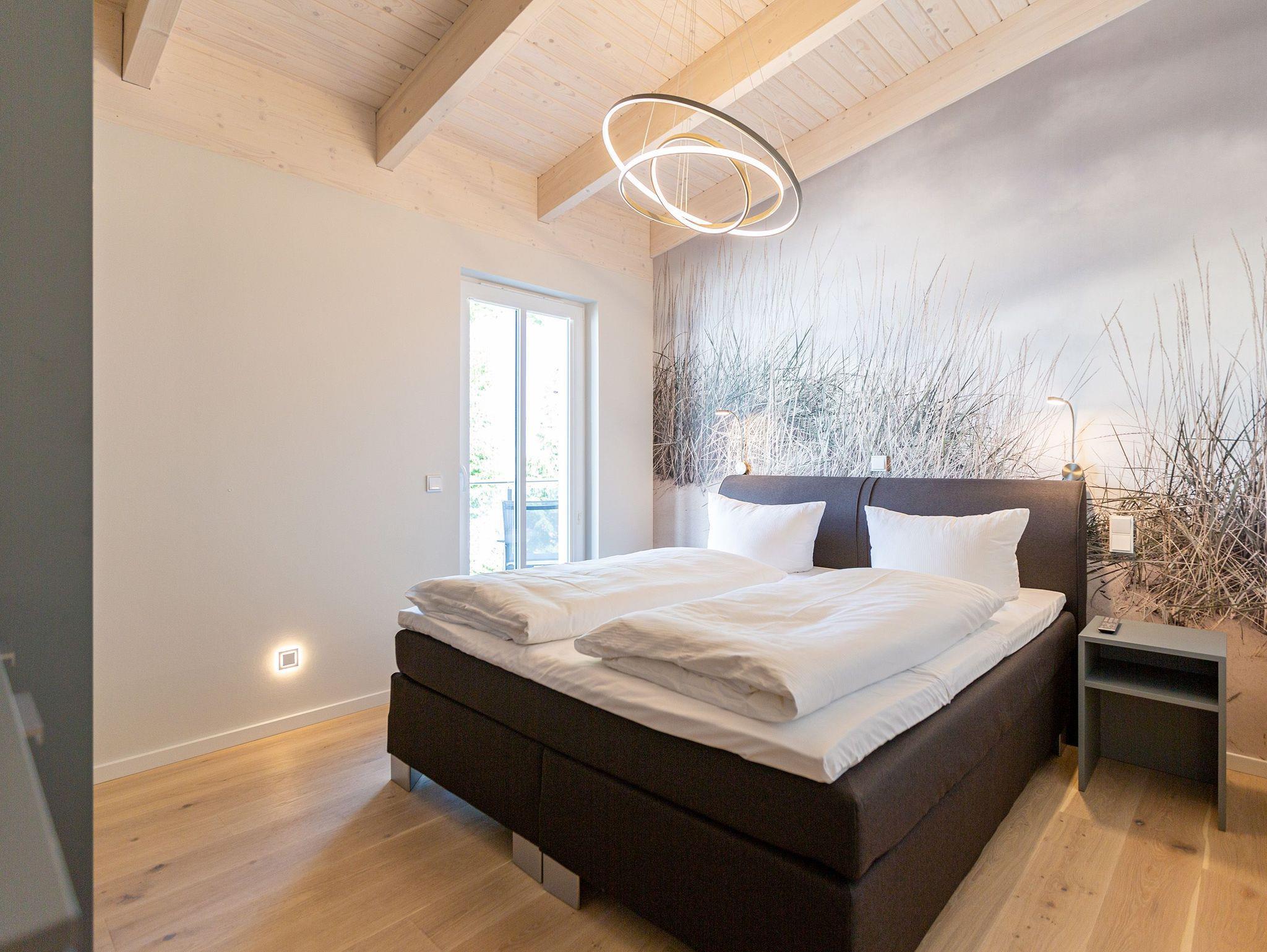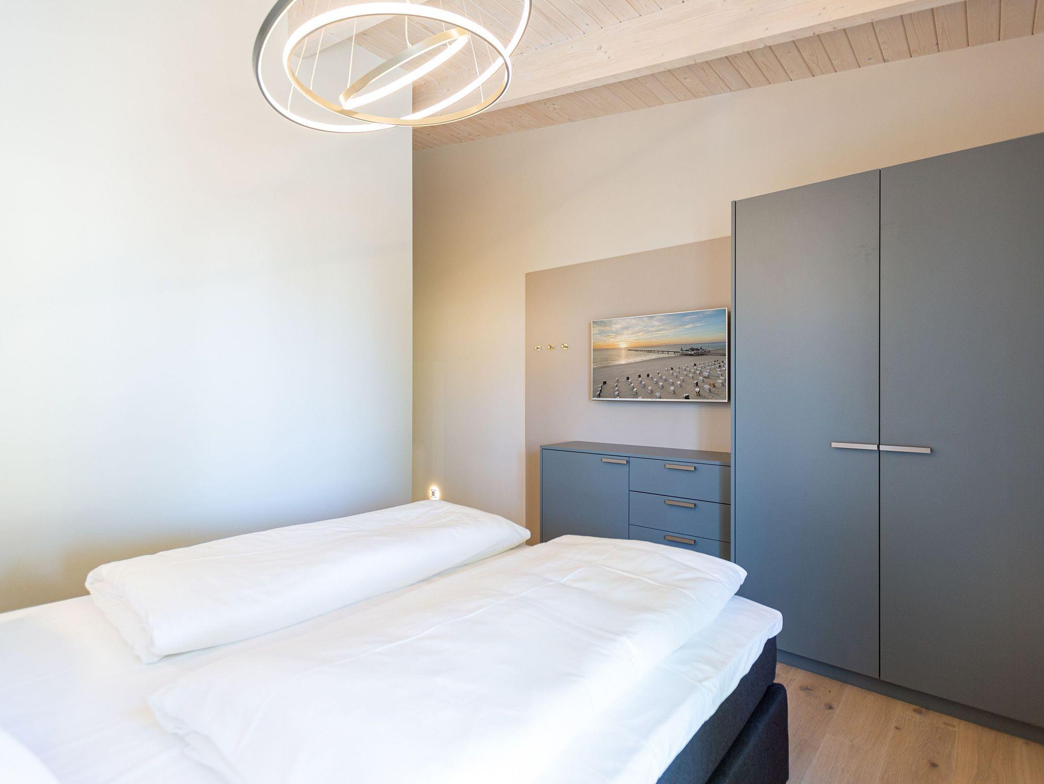 In diesen 2021 errichteten Häusern trifft Helligkeit auf Moderne und bietet Ihnen in seinen stilvoll eingerichteten Zwei- bis Drei-Zimmer Appartements Komfort auf höchster Ebene. Die offen gestalteten Wohn-Ess-Bereiche überzeugen durch ein stylisches Ambiente und ihr großzügiges Raumkonzept. Die teilweise mit Kochinseln ausgestatteten Küchen integrieren sich perfekt in den ebenso schlichten wie modernen Wohnraum. Alle Appartements verfügen über zwei Bäder oder ein Bad und ein zusätzliches Gäste-WC. Um Ihre Auszeit am Meer zusätzlich zu verschönern, wurden alle Appartements mit Gaskamin und Finnischer Sauna ausgestattet. Genießen Sie von den großzügigen Balkonen und Terrassen den Ausblick auf die parkähnliche Grünanlage oder verbringen Sie Ihren Abend auf dem frei zur Verfügung stehenden Grillplatz mit Sitzecke und Grill. Ein kostenloser PKW-Stellplatz in der Tiefgarage (Einfahrtshöhe 1,95m, Anfahrt über die Straße ?Kieferngrund? Höhe Hausnummer 17) gehört ebenso zum Komfort dieser Appartement-Häuser wie kostenfreies W-Lan. Für E-Autos steht am Objekt eine E-Ladesäule mit 2 Ladeplätzen (gesamt 22 kW) auf dem Grundstück kostenpflichtig zur Verfügung. Eine Waschmaschine und ein Trockner können Sie gegen Gebühr über die kostenlose App WeWash nutzen.