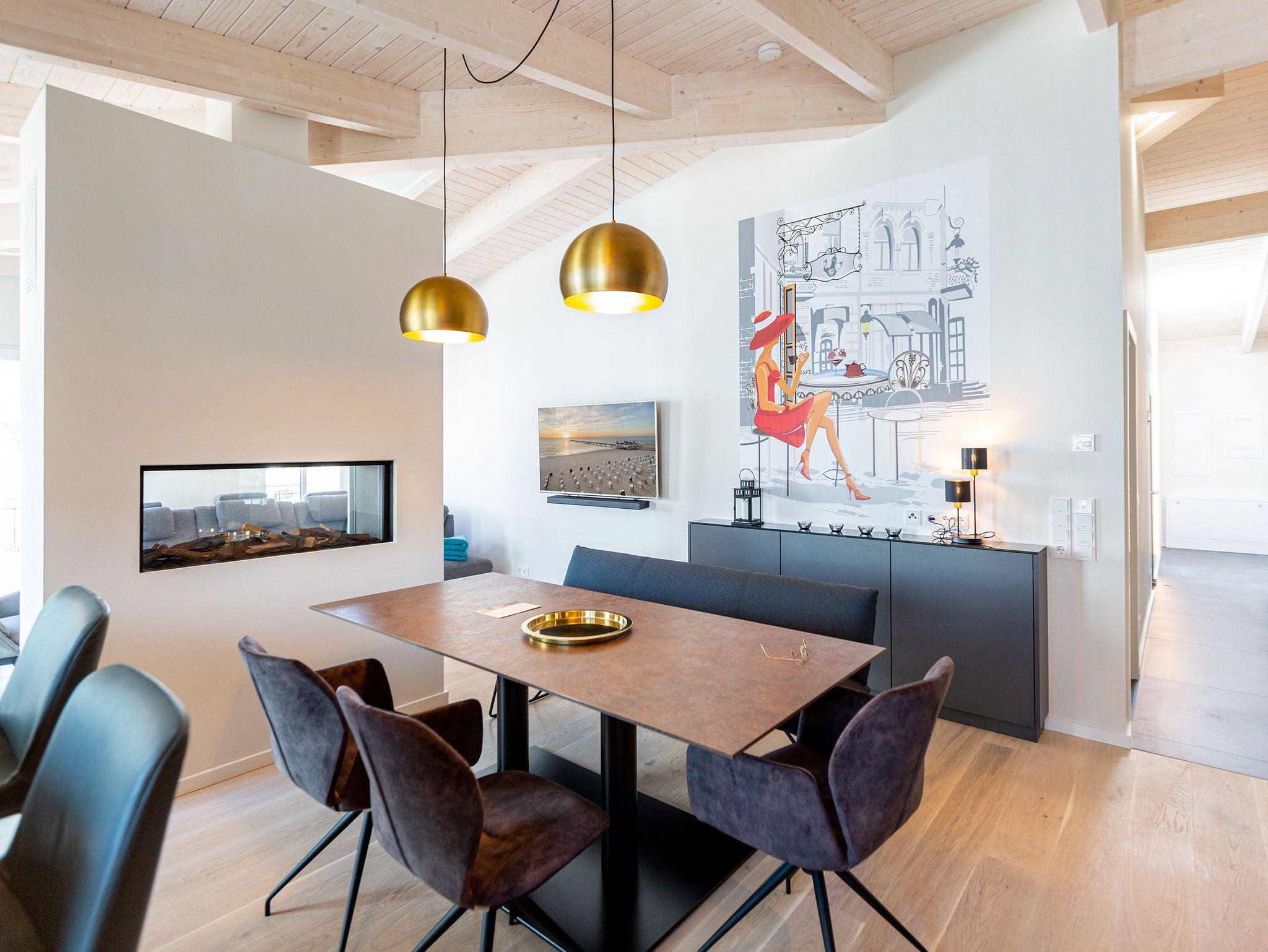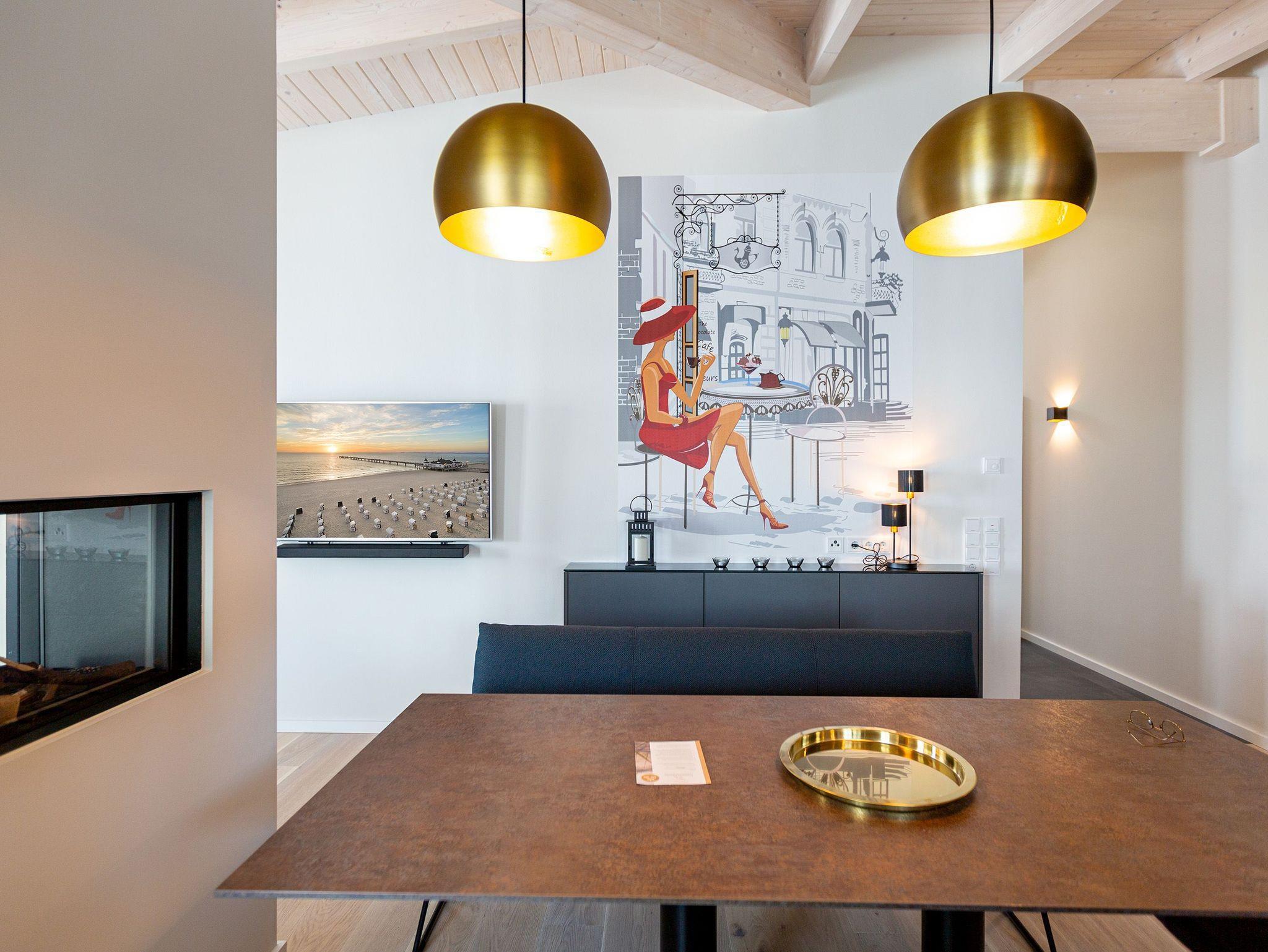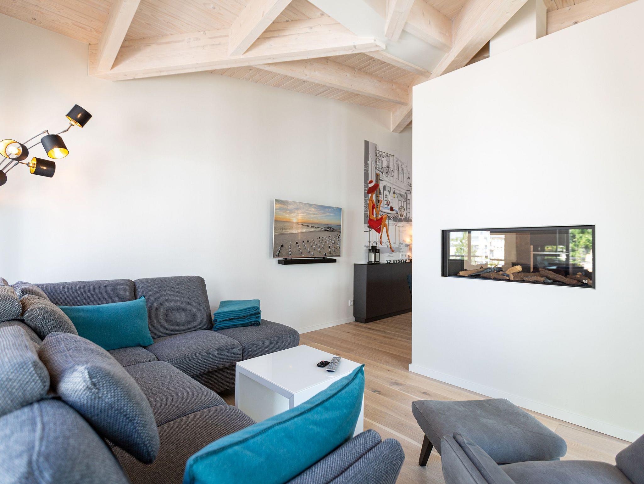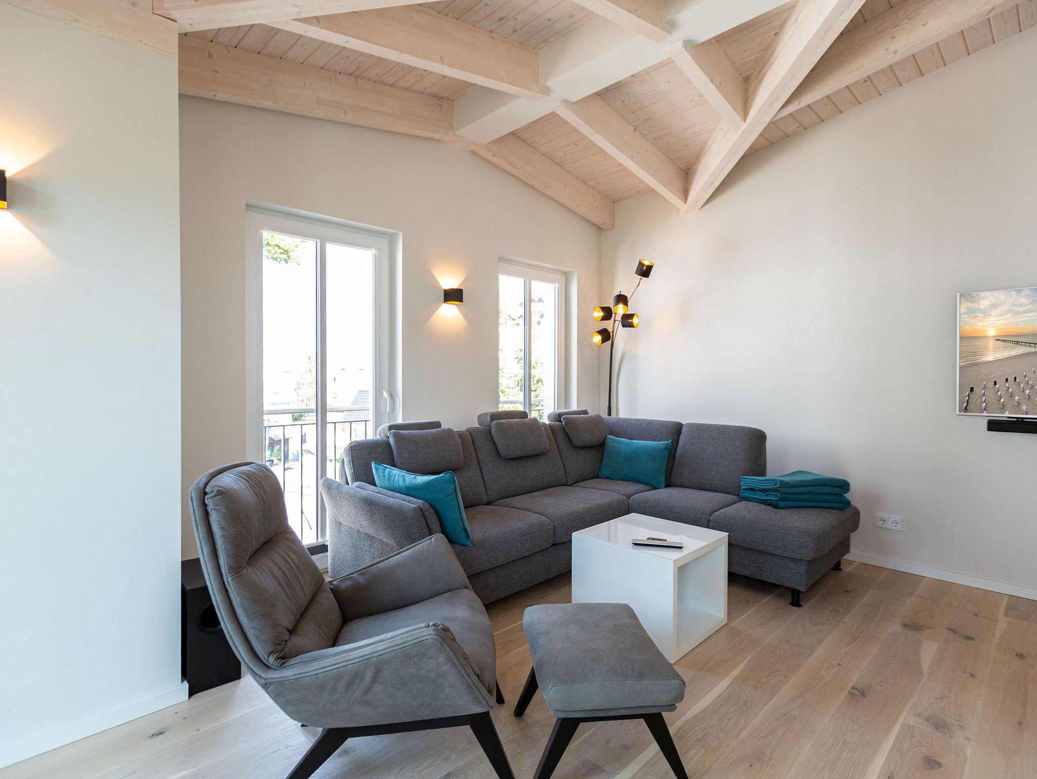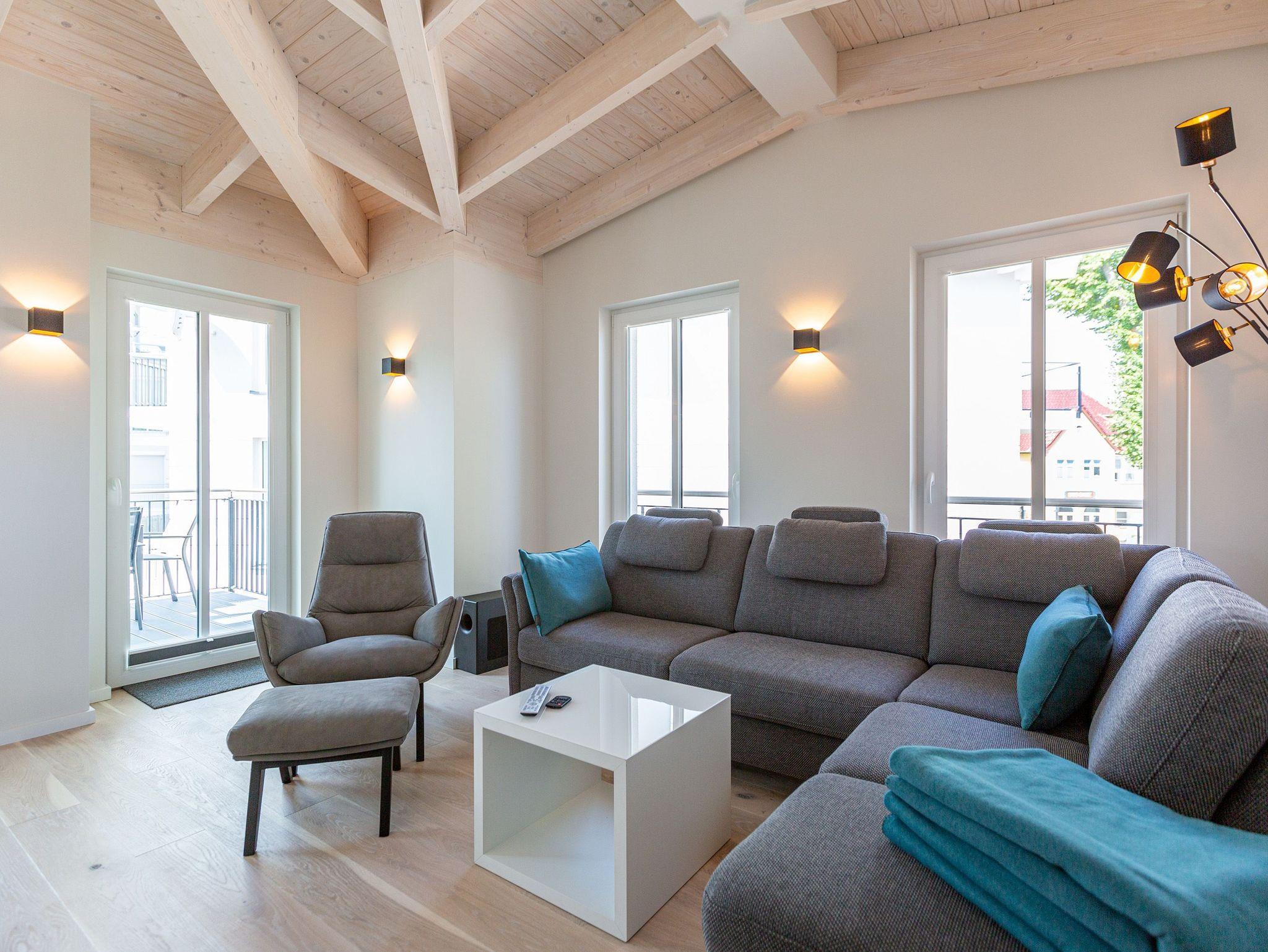 Dieses schöne Drei-Zimmer-Dachgeschossappartement für bis zu vier Personen und ein Kleinkind (bis 2 Jahre im Kinderreisebett) wartet darauf Sie auf der schönen Insel Usedom in Empfang zu nehmen. Die Schlichtheit des modernen Interieurs trifft hier auf die Wärme der sichtbaren Holzdecke und versprüht eine ebenso futuristische wie auch gemütliche Wohnatmosphäre auf 88 qm. Der offen gestaltete Wohn-Ess-Bereich besticht durch seine großzügige Wohnlandschaft und einen stylischen Esstisch für bis zu sechs Personen. Die voll ausgestattete Küche integriert sich perfekt in den Wohnraum und überzeugt durch hochwertige Neff-Geräte. Von der Kochinsel aus können Sie Ihren Gästen direkt am Tresen Ihre zubereiteten Köstlichkeiten präsentieren. Von hier haben Sie auch Zugang zum sonnigen Süd-West-Balkon. Genießen Sie während Ihres Aufenthaltes die Vorzüge des Gaskamins, der sowohl im Ess- als auch im Wohnbereich seine wohlige Wärme versprüht. Die großzügige Sofalandschaft und ein großzügiger Flat-TV mit Bluetooth-Soundsystem sorgen für gemütliche Fernsehabende. Ein Highlight sind die beiden Schlafzimmer mit Boxspringdoppelbetten (1,80m x 2,00m) mit eigenem Masterbad, Fernseher, Safe und dem Nord-West-Balkon. Bei richtiger Windrichtung grüßt das Meeresrauschen bis zu Ihrem Domizil. Selbstverständlich verfügt dieses Appartement über eine Finnische Sauna (mit Soundsystem) für einen perfekten Ausgleich nach einem langen Strandspaziergang. Kostenfreies W-Lan und ein Stellplatz in der hauseigenen Tiefgarage runden Ihren einzigartigen Urlaub auf der Insel Usedom ab. Für den Tag am Meer steht Ihnen in der Zeit ab Ende April bis ca. 24. September (je nach Witterung) ein Strandkorb am Strand zur Verfügung.