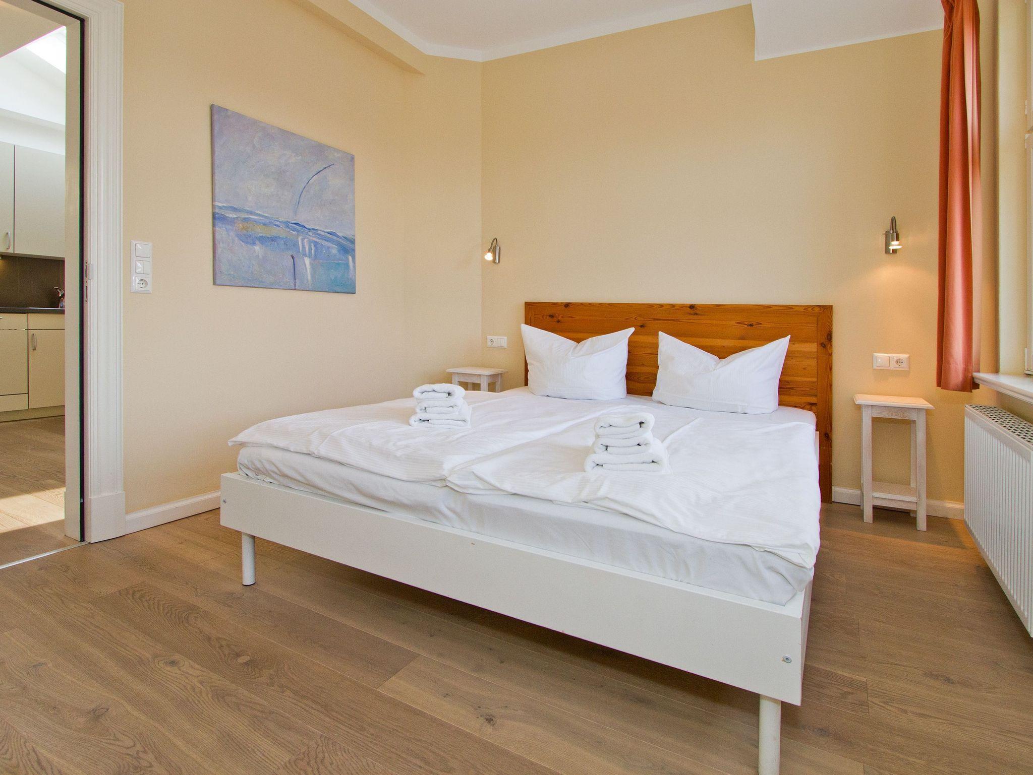 Residieren sie in der Penthousewohnung der Villa. Genießen sie den Meerblick und die Usedomer Sonne, lassen sie sich von der zeitlos-eleganten Einrichtung verwöhnen. Der aufwendig verlegte Naturholzboden, ein elegantes Bad sorgen für besten Wohnkomfort. Ein großer offener Wohnbereich mit Küche, ein zweites Wohnzimmer mit Schlafcouch, die historische Veranda mit Essbereich, ein Schlafzimmer mit Doppelbett und eine zur Südseite gelegene Dachterrasse bieten Platz für 2 bis 4 Personen. Für eine ungestörte Aufbettung im Wohnzimmer sorgt der zweite abgeschlossene Wohnbereich. Für kleine Gäste kann ein Kinderreisebett und ein Kinderhochstuhl (gegen Aufpreis) bestellt werden. Ein Pkw-Stellplatz steht am Haus unter dem Carport zur Verfügung.