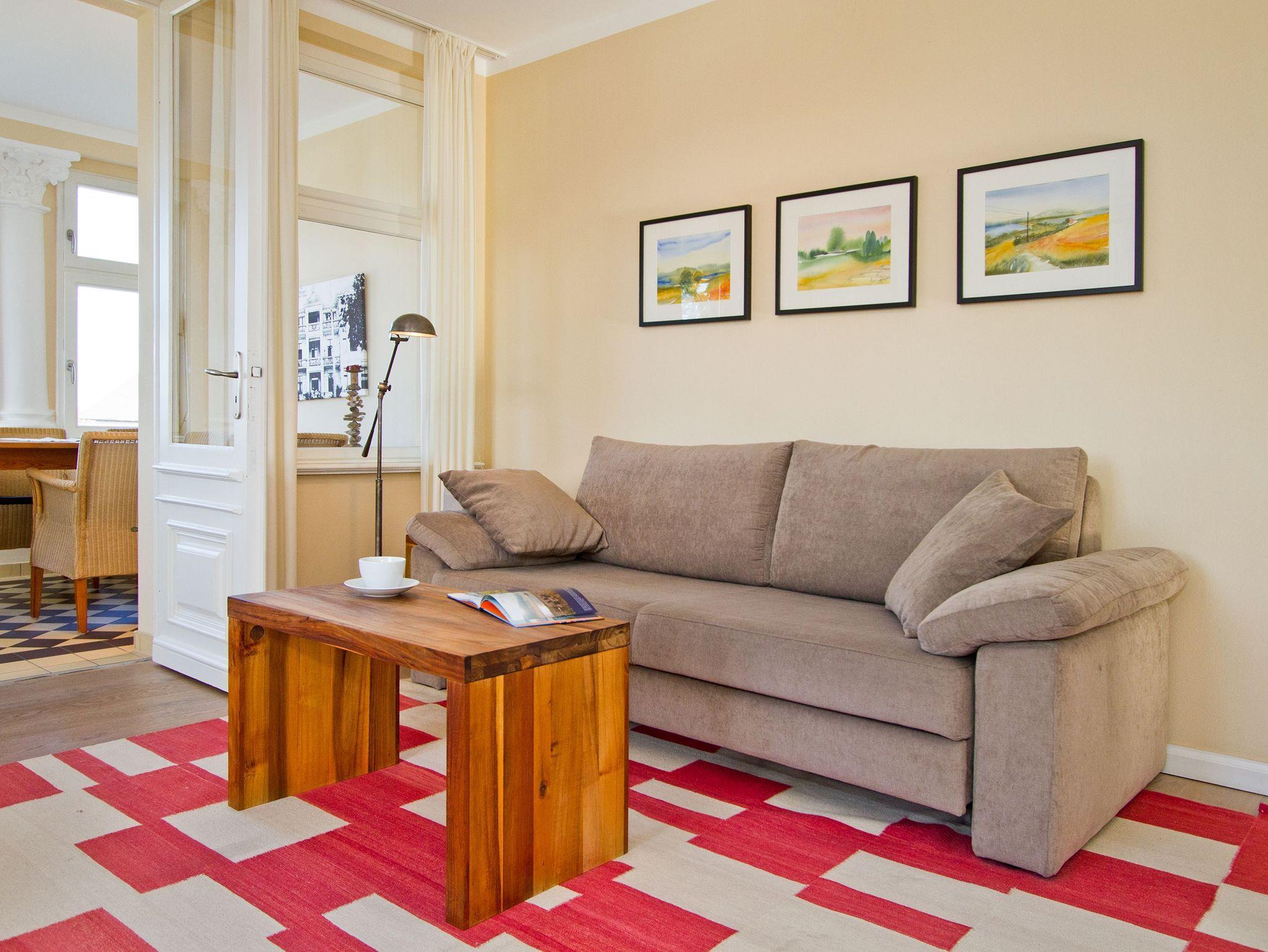 Mit diesem Domizil entscheiden Sie sich für eine exklusive Möglichkeit, Ihren Urlaub in den Kaiserbädern zu verbringen. Die 1898 im wilhelminischen Baustil errichtete Villa präsentiert Ihnen seit Januar 2005 hochherrschaftliches Wohnen in ruhiger Lage. Großzügige Räumlichkeiten, historische Veranden und Balkone sorgen für rundherum gelungene Urlaubstage. Der große Saunabereich (kostenfrei) im Untergeschoss der Villa bietet Ihnen an kälteren Tagen eine angenehme Abwechslung. Für jede Wohnung steht ein PKW-Stellplatz am Haus zur Verfügung (größtenteils überdacht), für Fahrräder gibt es teilweise separate Abstellräume (abschließbar). Waschmaschine und Trockner (im Untergeschoss) im Haus sind gegen eine Gebühr nutzbar. Das WLAN-Netz steht kostenfrei zur Verfügung.