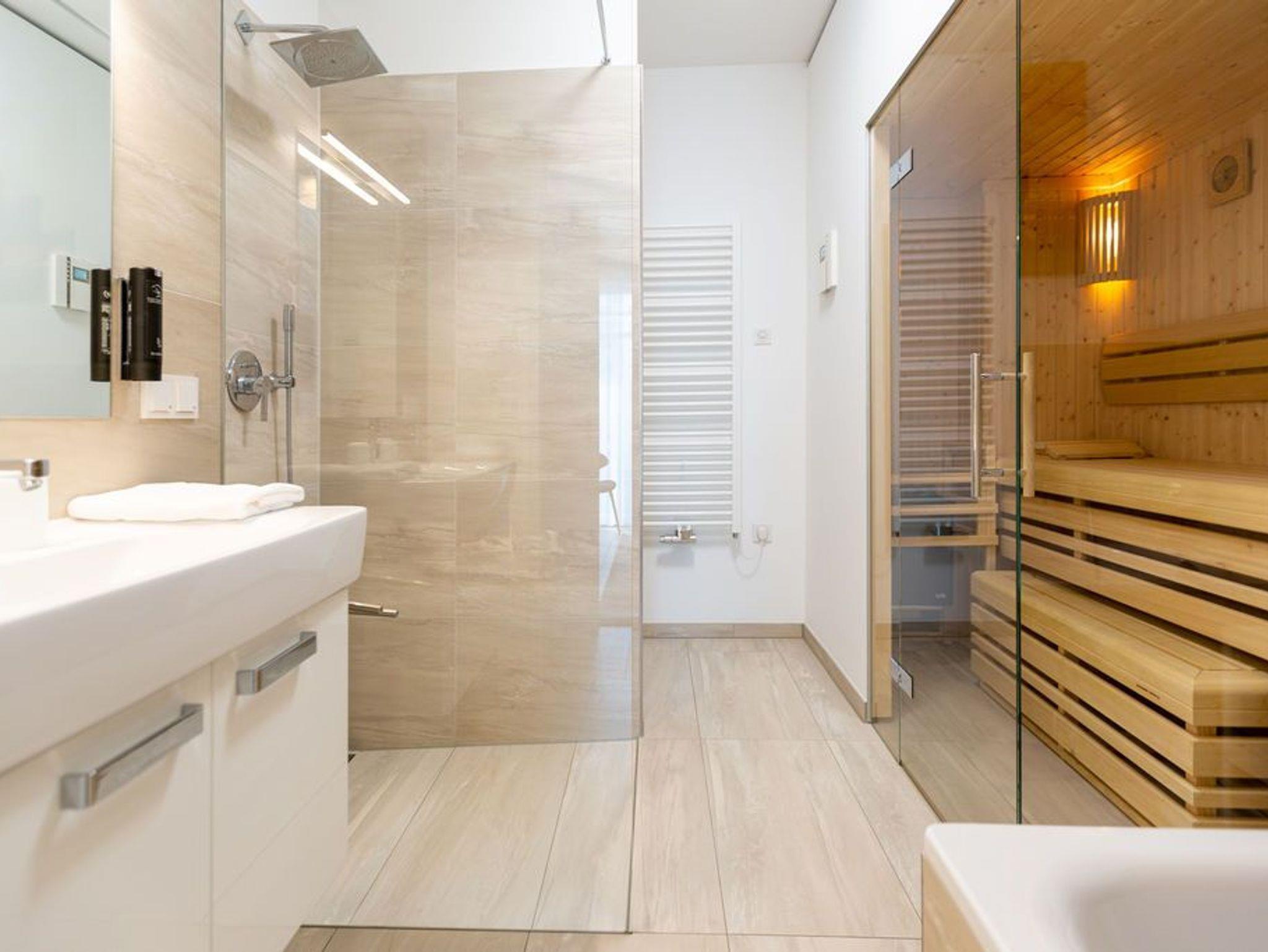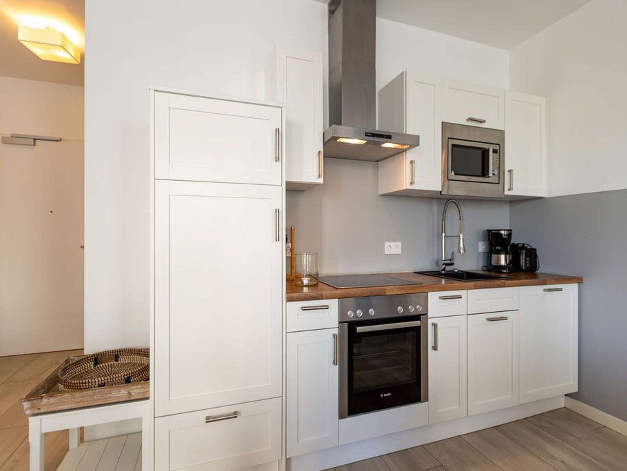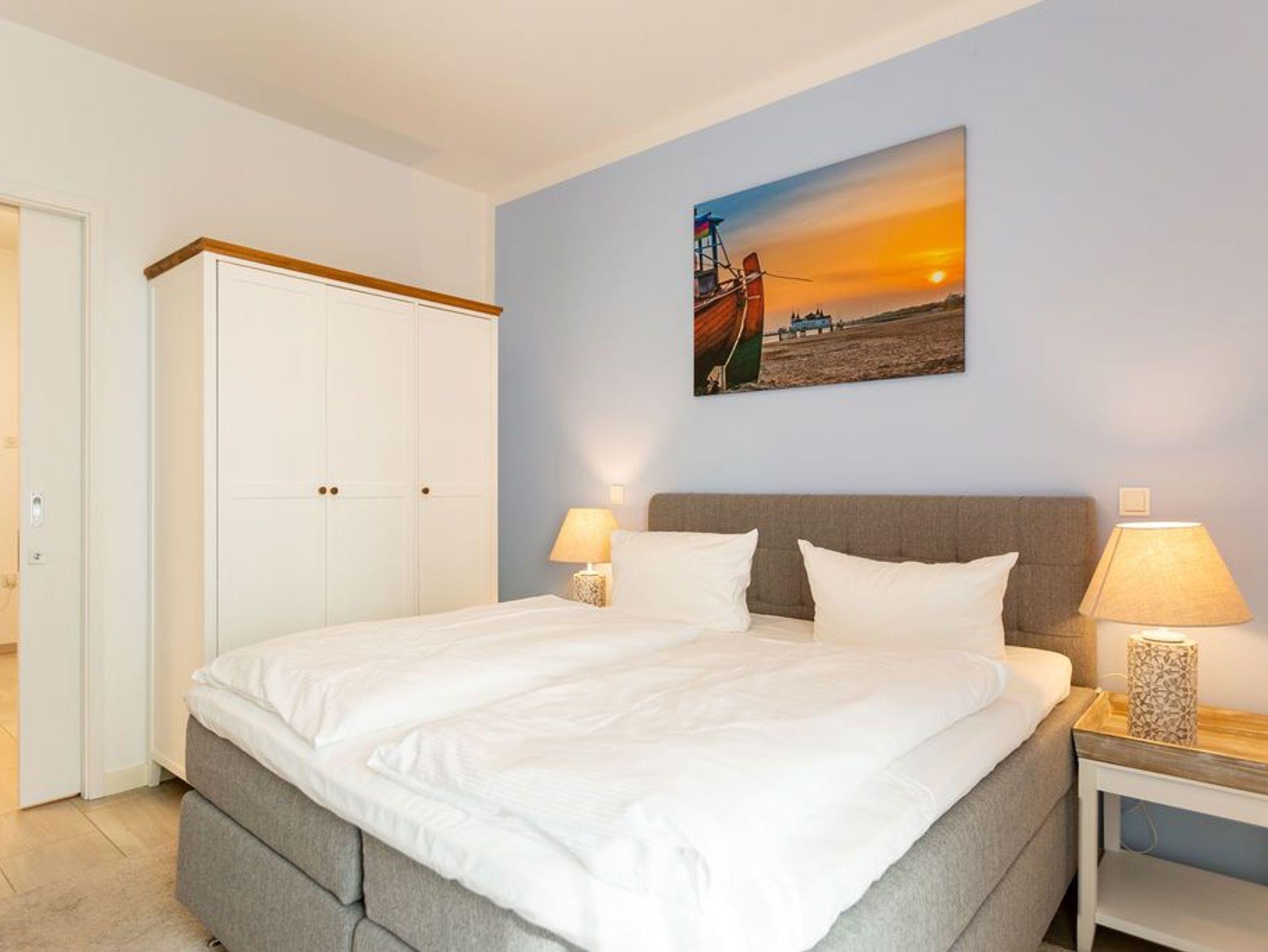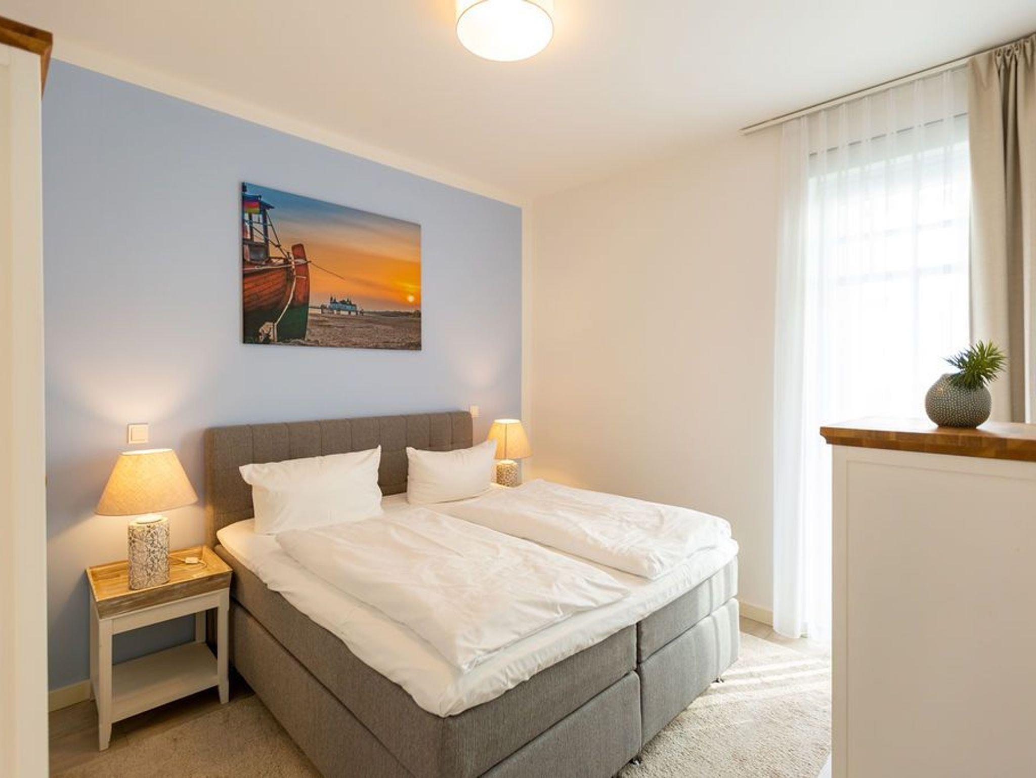 Nordisch nobel, mit einem Hauch von Industriechic präsentiert sich die 77 Quadratmeter große Ferienwohnung Nummer 5 im Erdgeschoss der Villa Westend. Sie empfängt ihre Besucher mit einem offenen und geschmackvoll eingerichteten Wohn- und Essbereich. Der hochwertige Esstisch mit großer Echtholzplatte und die skandinavischen Designstühle fallen dabei sofort ins Auge. Ebenso wie die gemütliche Sitzgruppe, die zum Relaxen vor dem Elektro-Kamin einlädt. Der zaubert ? egal ob nach einem winterfrischen Strandspaziergang oder einem sonnenreichen Sommerstrandtag ? mit seinen Flammen herrliches Wohlgefühl in Ihre Urlaubsabende. Per Knopfdruck mit oder ohne Wärme. Industrie-Designlampen setzen im Wohnraum stylische Akzente. Die offene Küche mit hochwertigen Elektrogeräten ist voll ausgestattet. Vom Wohnzimmer aus gelangen Sie auf die Terrasse, wo die Ostsee in nur 50 Metern Entfernung durch die Dünengräser glitzert. Zwei in harmonischen Farben gehaltene Schlafzimmer bieten in Boxspringdoppelbetten (1,80 m x 2,00 m) Platz für 4 Personen. In jedem Zimmer gibt es einen Flat-TV. Viel Platz für die Urlaubsgarderobe bietet je ein Kleiderschrank. In einem großen Wellnessbad, das von einem der beiden Schlafzimmer aus zugänglich ist, lässt es sich in der finnischen Sauna, der Badewanne oder unter der Regendusche wunderbar entspannen. Ein zweites Bad ist ebenfalls mit Dusche, WC und Waschtisch ausgestattet. Für den puren Urlaubsgenuss liegen Handtücher für Sie bereit und die Betten sind frisch bezogen. Es steht Ihnen ein Pkw-Stellplatz in der Tiefgarage zur Verfügung.