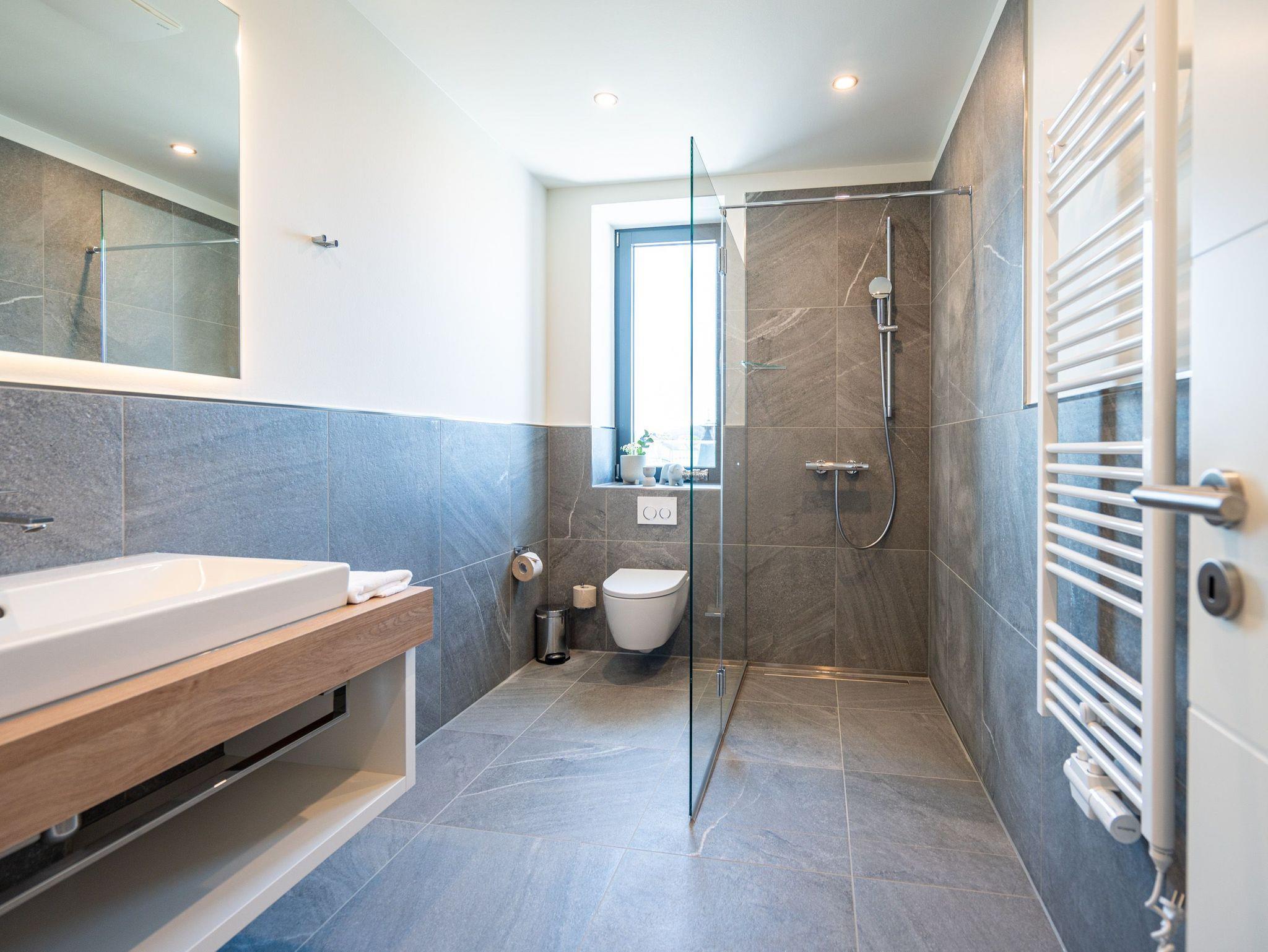 Die 2024 fertig gestellte Strandterrasse liegt direkt an der belebten Strandpromenade und bietet einen einzigartigen Ausblick auf die Grand Dame der historischen Seebrücken sowie die historische Konzertmuschel, einem beliebten Treffpunkt für Kunst und Kultur. Dahinter liegt die Ostsee ? ein Panorama, das zu den schönsten in den Kaiserbädern gehört. Es ist wie das Abtauchen in eine andere Zeit. In eine Zeit, in der man mit Stock, Sonnenschirm und Hut fürs ?Sehen und gesehen werden? über die Promenade schlenderte; aber auch in eine Zeit, in der ? damals wie heute ? Zeit einmal für eine kurze Weile keine Rolle spielt. Weil man angekommen ist im Loslassen, Entspannen und Genießen. Es ist dieser besondere Geruch nach Meeresluft und Freiheit, der in Erinnerung bleibt. Dazu die Bilder, die man mitnimmt. Von langen Strandspaziergängen, vom Lachen in fröhlich schäumenden Ostseewellen, von der Zeit in einem wunderschönen Urlaubsdomizil. Denn genau das ist die Strandterrasse mit ihren 56 modernen und exklusiven Ferienappartements direkt gegenüber der Ahlbecker Seebrücke. Die Ein-, Zwei- oder Dreizimmerwohnungen ? zwischen 40 und 70 Quadratmeter groß ? sind von einer Innenarchitektin gemeinsam mit unserem Erfahrungsschatz an Gästewünschen mit viel Liebe zum Detail und ganz individuell konzipiert worden. Entspannung und Wohlfühlen stehen an erster Stelle. Alles ist aufeinander abgestimmt und sorgt für eine gemütliche Atmosphäre. Wählen Sie zwischen einem Domizil in einem hellen, sandfarbenen Designkonzept oder einem Appartement mit anthrazitfarbenen Farbakzenten. Alle Appartements verfügen gleichermaßen über eine stilvolle und komfortable Einrichtung, die passgenau angefertigt worden ist, sowie über moderne Küchen und Bäder. Jedem Schlafzimmer ist ein eigenes Bad mit Dusche zugeordnet (außer App. B4.5). Die Appartements besitzen fast alle einen Balkon ? viele schauen sogar zur Ostsee hinaus. Die meisten Feriendomizile haben einen Elektrokamin und Infrarotsaunen. Im Erdgeschoss befindet sich ein separater Gemeinschaftsraum für Fahrräder. Außerdem besteht die Möglichkeit, im Gemeinschaftswaschraum 2 Waschmaschinen [&] Trockner zu nutzen. Ergänzt wird das Angebot durch eine Gemeinschaftssauna, die täglich von 11:00 bis 22:00 Uhr nutzbar ist. In der Tiefgarage (Einfahrtshöhe 2,03 Meter) steht für jede Wohnung 1 Pkw-Stellplatz zur Verfügung. Ist alles zur Zufriedenheit untergebracht? Dann kann der Urlaub ja beginnen. Und beim Blick vom Balkon über die Ostsee treffen sich zum Sonnenaufgang das Heute und das Damals. Gelassenheit legt sich beim Gang hinunter an den Strand auf die Seele. Jetzt darf die Zeit stehenbleiben.