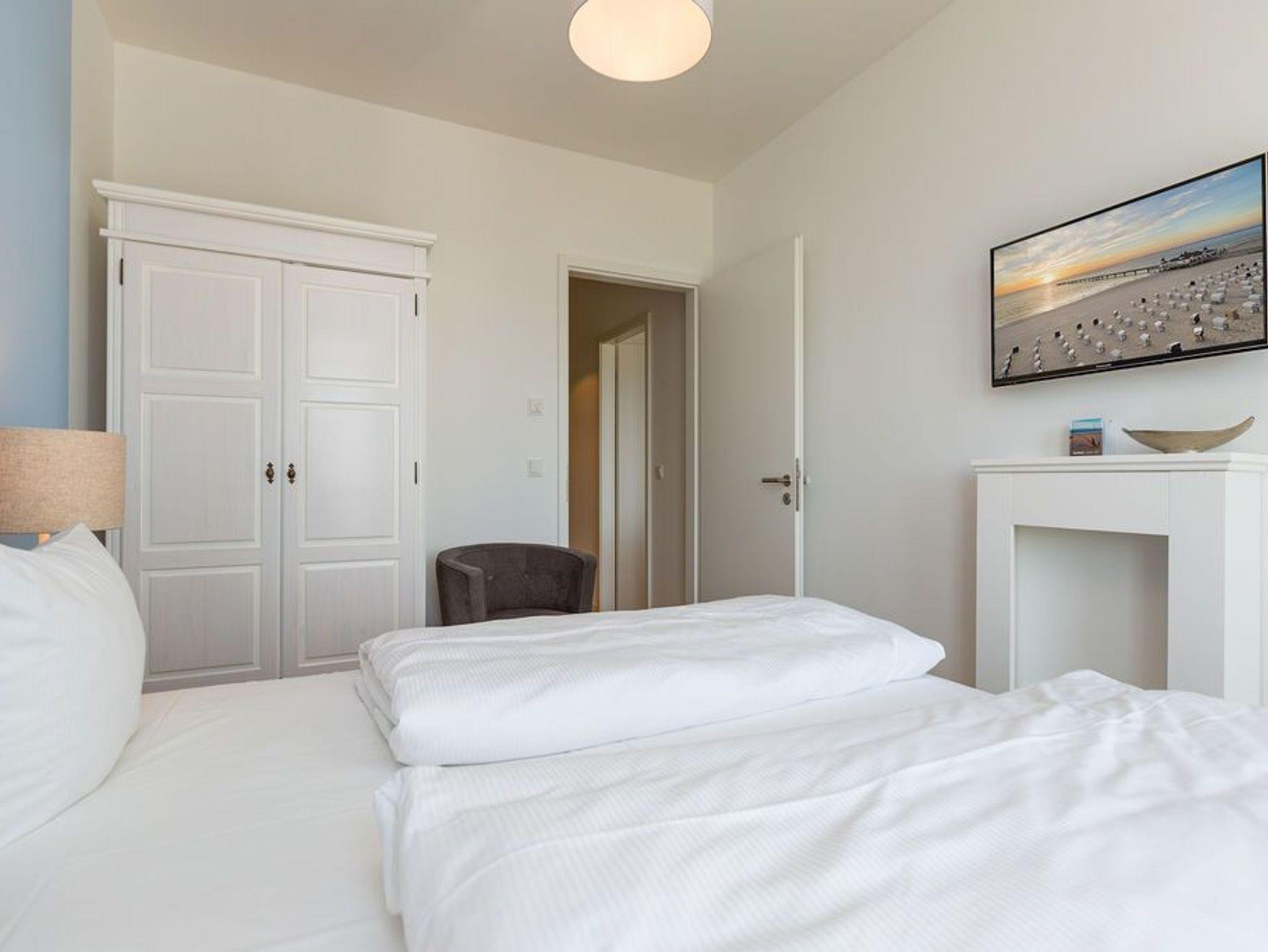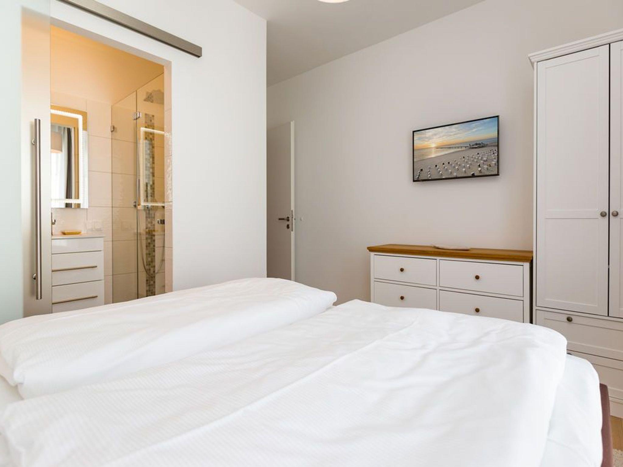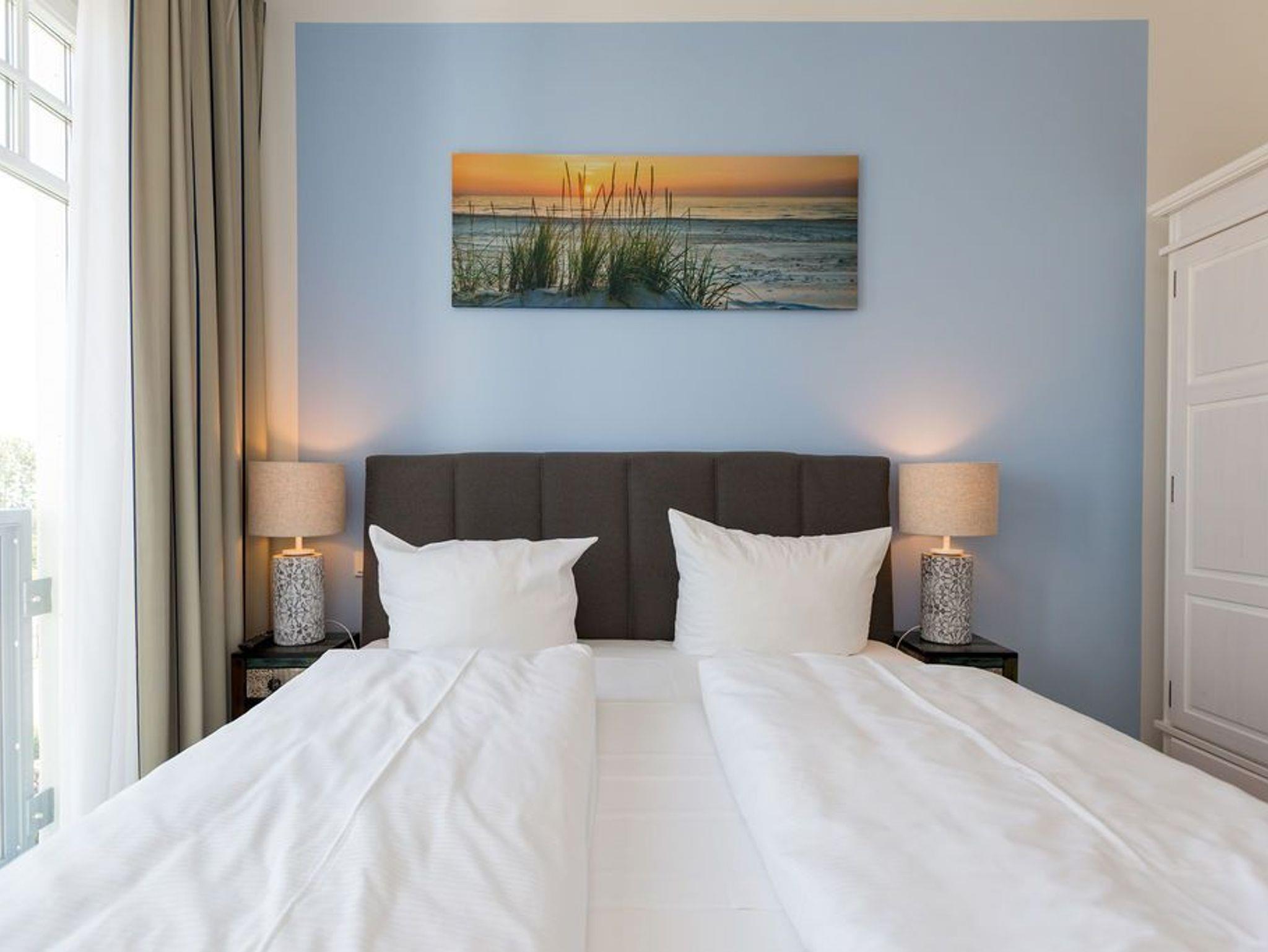 In der Ferienwohnung Nr. 12 der Villa Westend stimmt es einfach. Sie logieren unmittelbar am Meer, zum Strand sind es nur wenige Schritte. Erleben Sie den Sonnenaufgang über dem Meer von Ihrem Balkon aus. Der schöne helle Wohnbereich ist ausgestattet mit einer gemütlichen Sitzgruppe, Flat-TV [&] Elektrokamin ( mit Fernbedienung zu bedienen). Die offene Küche ist voll ausgestattet und bietet neben einem Küchentresen mit 2 Sitzplätzen ebenso einen schönen Essplatz. Von hier aus hat man Zugang zum Balkon mit Gartenmöbeln. Beide Schlafzimmer verfügen über Boxspringdoppelbetten (1,80m x 2,00m) und Flat-TV, selbst von einem der beiden hat man direkt aus dem Bett einen fantastischen Blick auf die Ostsee. Für Ihren Komfort sind die Betten bezogen und Handtücher liegen bereit ( als Erstausstattung). Die Badezimmer haben eine Dusche, WC [&] Waschtisch. Als zusätzliches Highlight der Wohnung befindet sich im größeren Bad eine Finnische Sauna. Für Ihren PKW steht 1 Stellplatz ( Nr. 30) kostenfrei zur Verfügung. Das WLAN-Netz kann ebenso kostenfrei genutzt werden.