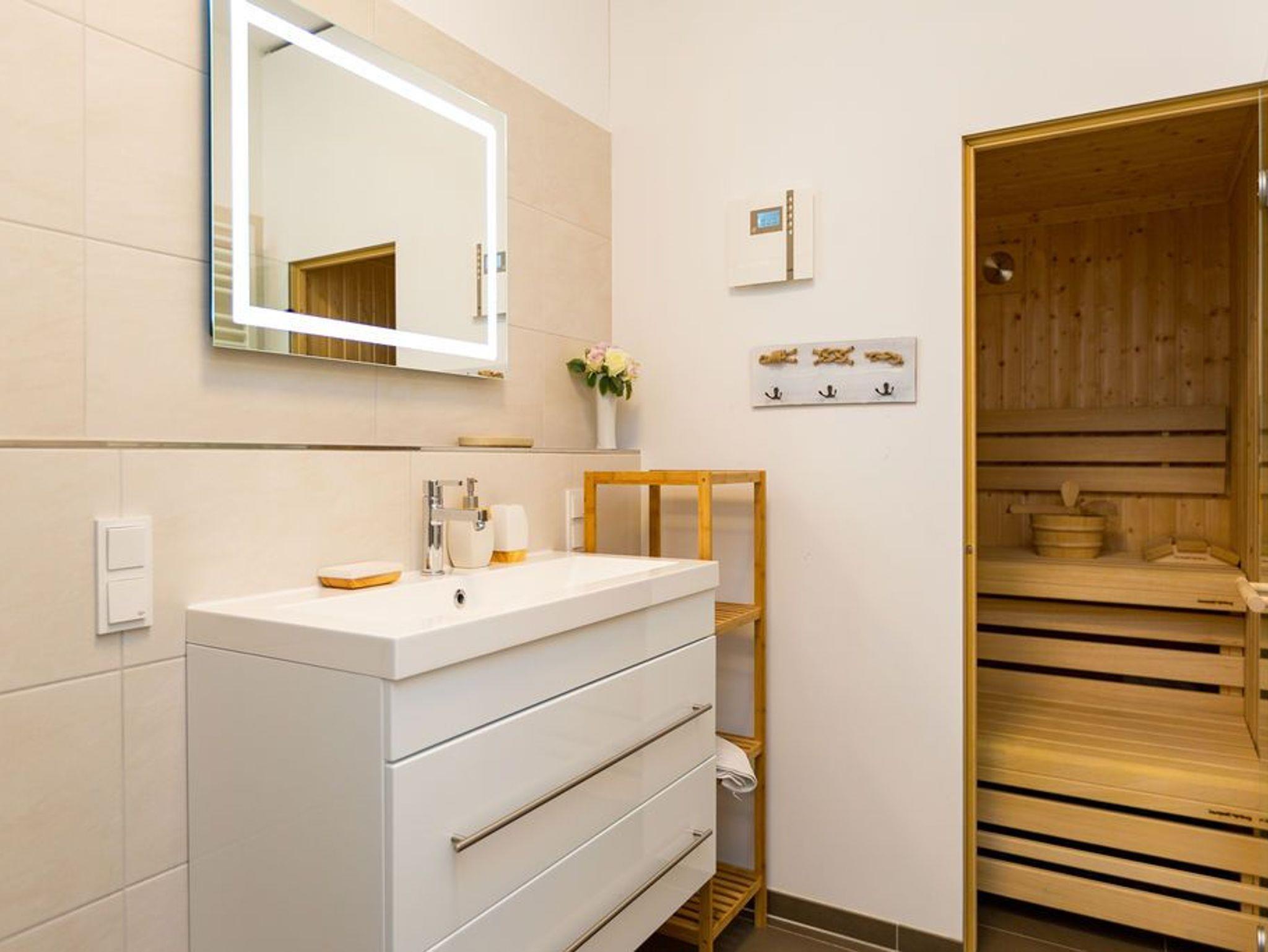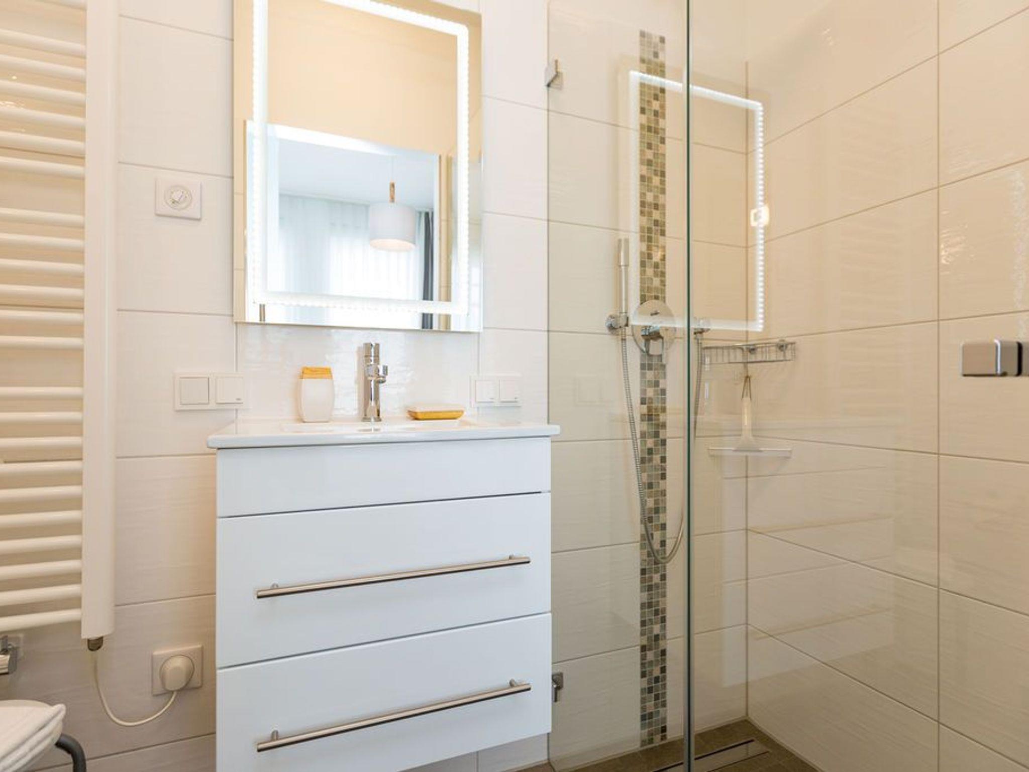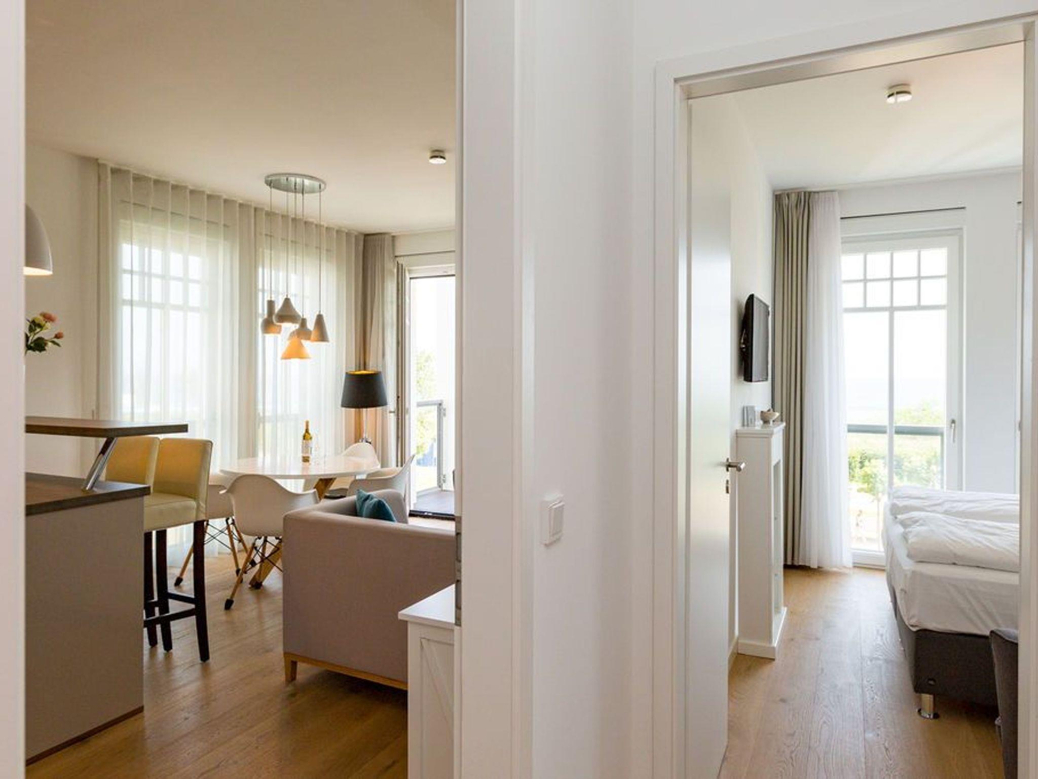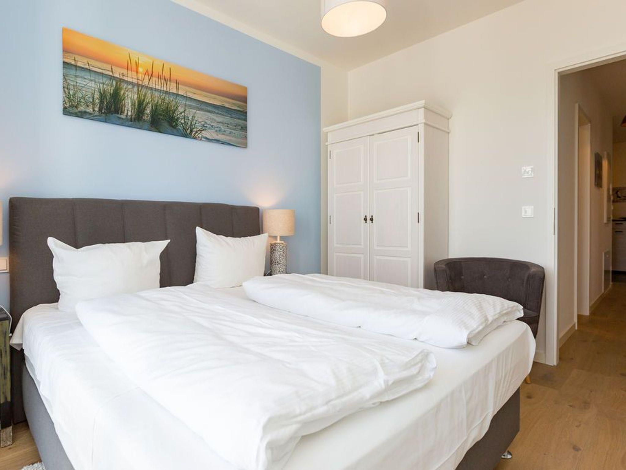 In der Ferienwohnung Nr. 12 der Villa Westend stimmt es einfach. Sie logieren unmittelbar am Meer, zum Strand sind es nur wenige Schritte. Erleben Sie den Sonnenaufgang über dem Meer von Ihrem Balkon aus. Der schöne helle Wohnbereich ist ausgestattet mit einer gemütlichen Sitzgruppe, Flat-TV [&] Elektrokamin ( mit Fernbedienung zu bedienen). Die offene Küche ist voll ausgestattet und bietet neben einem Küchentresen mit 2 Sitzplätzen ebenso einen schönen Essplatz. Von hier aus hat man Zugang zum Balkon mit Gartenmöbeln. Beide Schlafzimmer verfügen über Boxspringdoppelbetten (1,80m x 2,00m) und Flat-TV, selbst von einem der beiden hat man direkt aus dem Bett einen fantastischen Blick auf die Ostsee. Für Ihren Komfort sind die Betten bezogen und Handtücher liegen bereit ( als Erstausstattung). Die Badezimmer haben eine Dusche, WC [&] Waschtisch. Als zusätzliches Highlight der Wohnung befindet sich im größeren Bad eine Finnische Sauna. Für Ihren PKW steht 1 Stellplatz ( Nr. 30) kostenfrei zur Verfügung. Das WLAN-Netz kann ebenso kostenfrei genutzt werden.