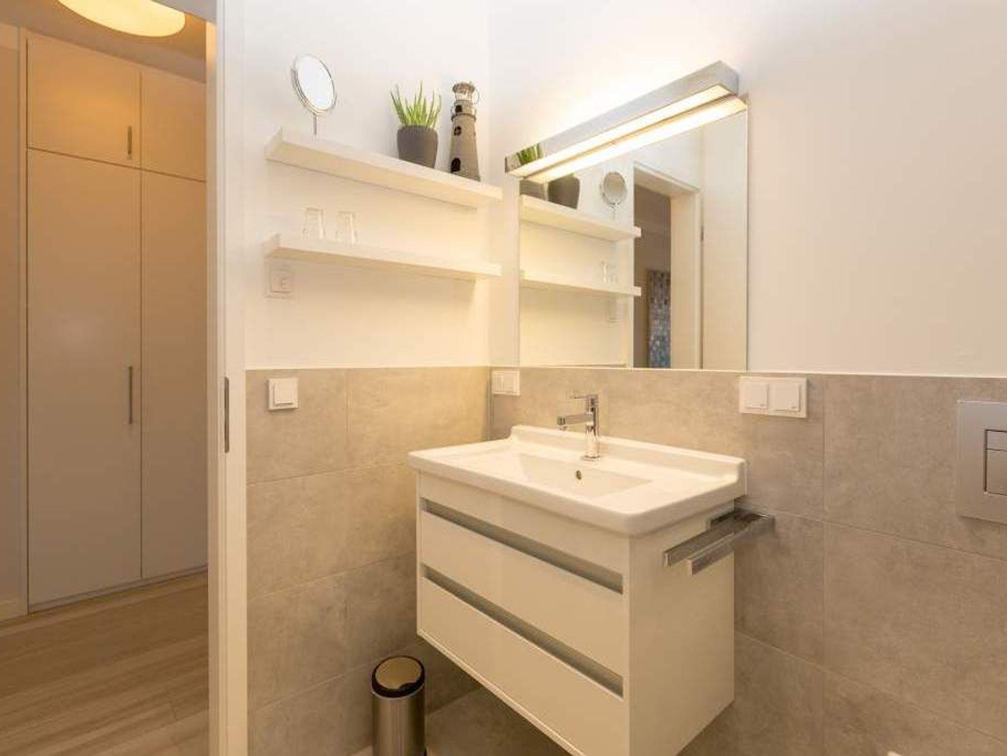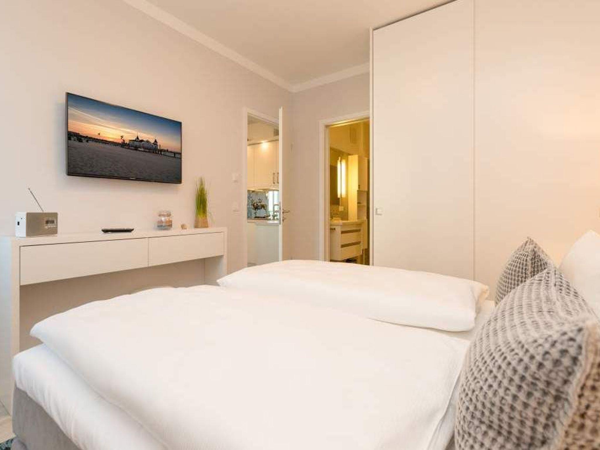 Stellen Sie sich vor, die Ostsee rauscht in sanften Wellen an den Strand. Keine 50 Meter von Ihrem Frühstückstisch auf dem Balkon entfernt. Stellen Sie sich vor, Sie schauen über den Rand Ihrer Kaffeetasse mitten hinein in die beruhigende Weite des endlosen Blaus. Urlaubsgefühl pur macht breit. Abschalten und sich einfach fallen lassen können ? auf die bequemen Relaxsessel vor dem Kamin Ihres 77 Quadratmeter großen und geräumigen Urlaubsparadieses. Nehmen Sie Ihre Freunde oder die Familie mit. Denn in dem 3-Zimmer-Appartement im 1. Obergeschoss der Villa Westend haben vier Personen Platz zum Aus- und Entspannen. Das Wohn-Ess-Zimmer ist mit einem schönen Esstisch und einer kuscheligen Sitzgruppe eingerichtet, dessen Sofa durch ausfahrbare Fußteile noch gemütlicher werden kann. Vom Wohnzimmer aus geht es auf einen kleinen Balkon mit seitlichem Blick auf die Ostsee. Elektrokamin mit Fernbedienung, Flat-TV und eine voll ausgestattete Küche lassen keine Urlaubswünsche offen. Durch die großen, bodentiefen Fenster fällt viel Sonnenlicht in das Appartement. Wie schön, dass Usedom damit reich gesegnet ist. Luftig und offen wirkt der Wohnraum zudem durch die Spiegel der Küchenrückwand. Auch das Schlafen wird zum Genuss. Die beiden Schlafzimmer verfügen über jeweils ein großes Boxspringdoppelbett (einmal 1,80 m x 2,00m sowie 1,80 m x 2,10 m) und Flat-TV. Kleiderschränke und Kommoden bieten reichlich Platz zur Ablage. Die zwei Bäder der Wohnung sind mit Dusche, WC und Waschtisch ausgestattet. Das Masterbad besitzt zudem ein Bidet und ein ganz besonderes Highlight: eine Finnische Sauna. Für Ihren sorgenfreien Urlaub liegen Handtücher bereit und die Betten sind frisch bezogen. Ein Pkw-Stellplatz steht in der Tiefgarage (Stellplatz Nummer 18) zur Verfügung. Sie wollen Ihr Urlaubsparadies auch mal verlassen, um den feinen, weißen Strandsand zu genießen? Kein Problem.