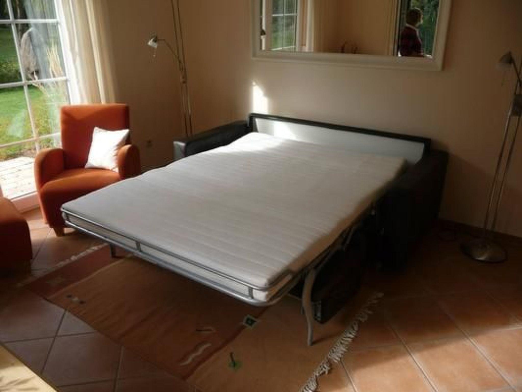 The holiday home has upscale furnishings with tasteful furnishings, underfloor heating throughout the house, non-smoking house, the following rooms are located on the ground floor: Living room: wood-burning stove, leather sofa set (can be folded down to sleep 2 more people), leather armchairs, leather sofa bed, sofa bed for 2 more people.), leather armchair, armchair, footstool, cable TV (flat TV) and BluRay player, audio system, extensive collection of games and books Kitchen / dining room: fitted kitchen with microwave, dishwasher, oven, ceramic hob, filter coffee machine, espresso machine, egg cooker, kettle, etc. and plenty of cooking utensils. and plenty of cooking utensils, large dining table, plenty of glasses, crockery and cutlery Bathroom: Shower, washbasin, WC, sauna, washing machine 1st floor:Bedroom 1: Double bed (1.80x2.00m, sprung mattresses), 2 wardrobes, TV and DVD player.Bedroom 2: Two single beds (0.90x2.00m, each with 2 mattresses of different hardness, can be extended to 4 single beds). Wardrobe, 2 highchairs, children's table, baby travel cot Bathroom: Large corner bathtub, washbasin, WC, towel dryer, hairdryer. DSL with WLAN and Internet flat rate (free of charge)Telephone with landline flat rate (free of charge)