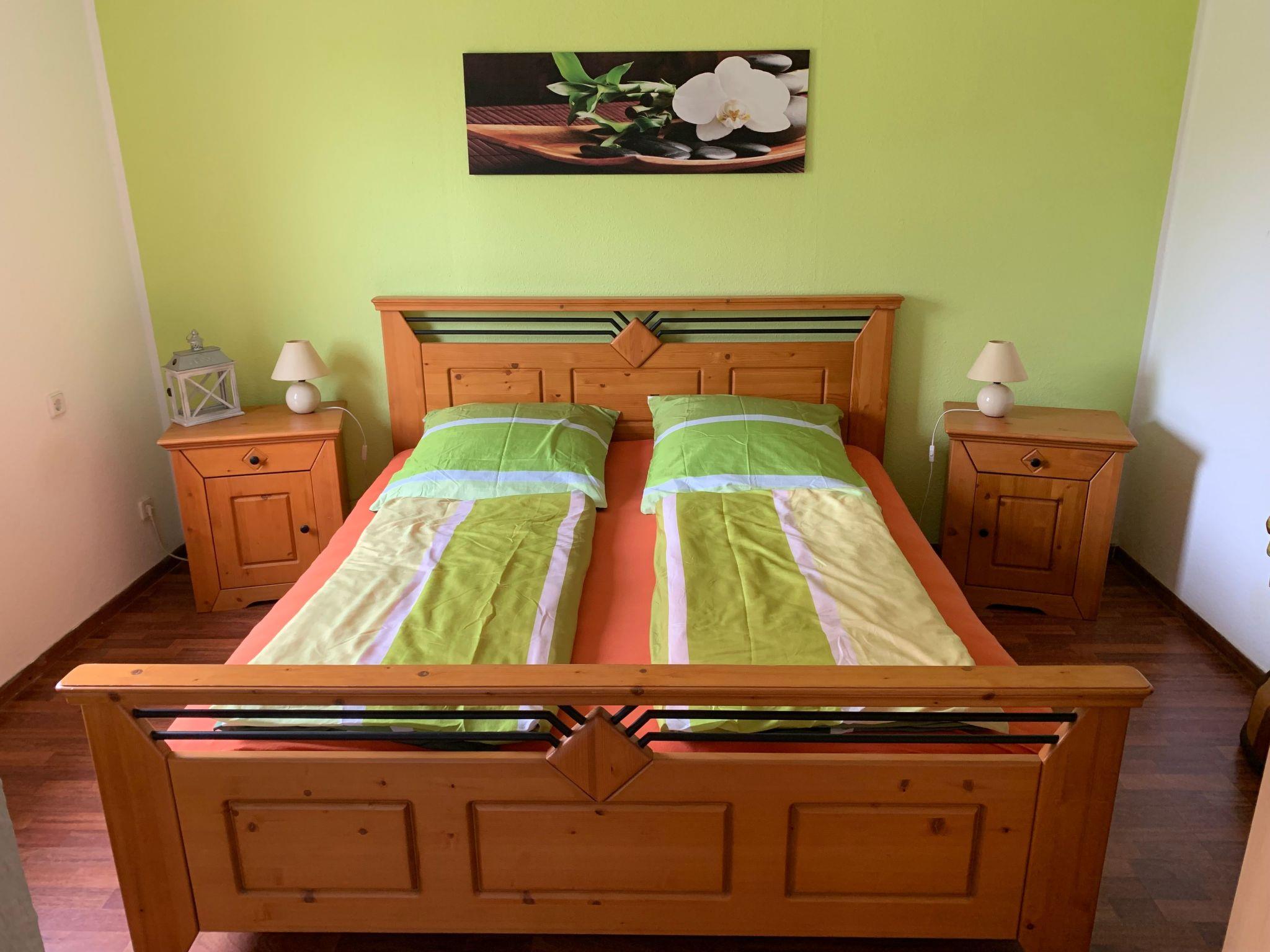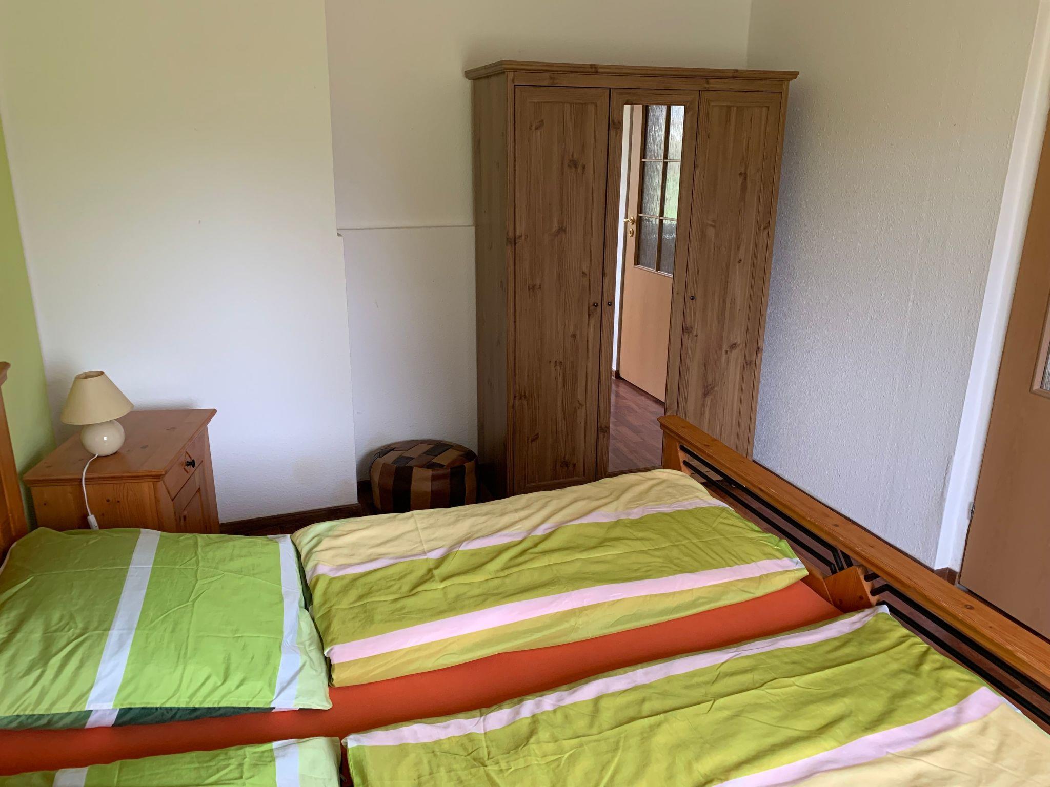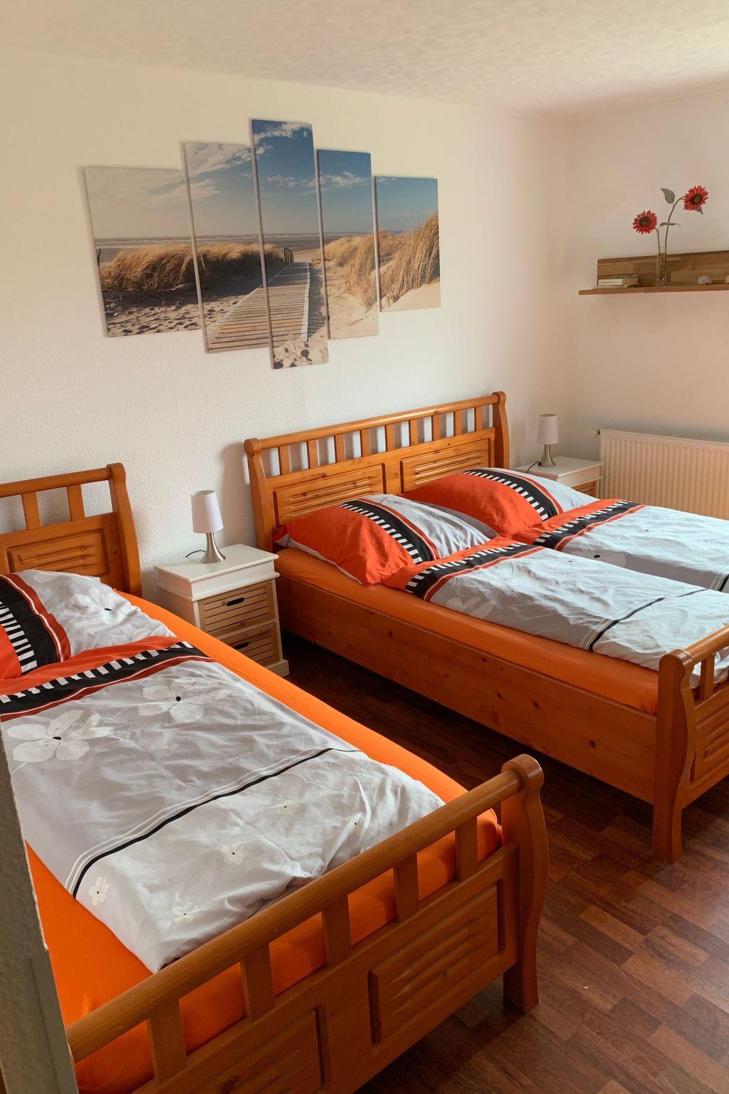 The practical and comfortable apartment of around 85m² is suitable for up to 5 people. The charming interior and cosy warmth will make you feel at home. It comprises two bedrooms, a bathroom with a shower, a fully-equipped kitchen with a fridge-freezer, a dishwasher, microwave, electric stove with a ceramic hob, an extractor fan, toaster, kettle and coffee machine. The living room provides a satellite TV, a radio/CD player and a fireplace stove. The first bedroom is furnished with a double bed, two dressers and a big cupboard. The second bedroom is furnished with a double bed, a single bed and a cupboard, There is space in the hallway for shoes and coats.