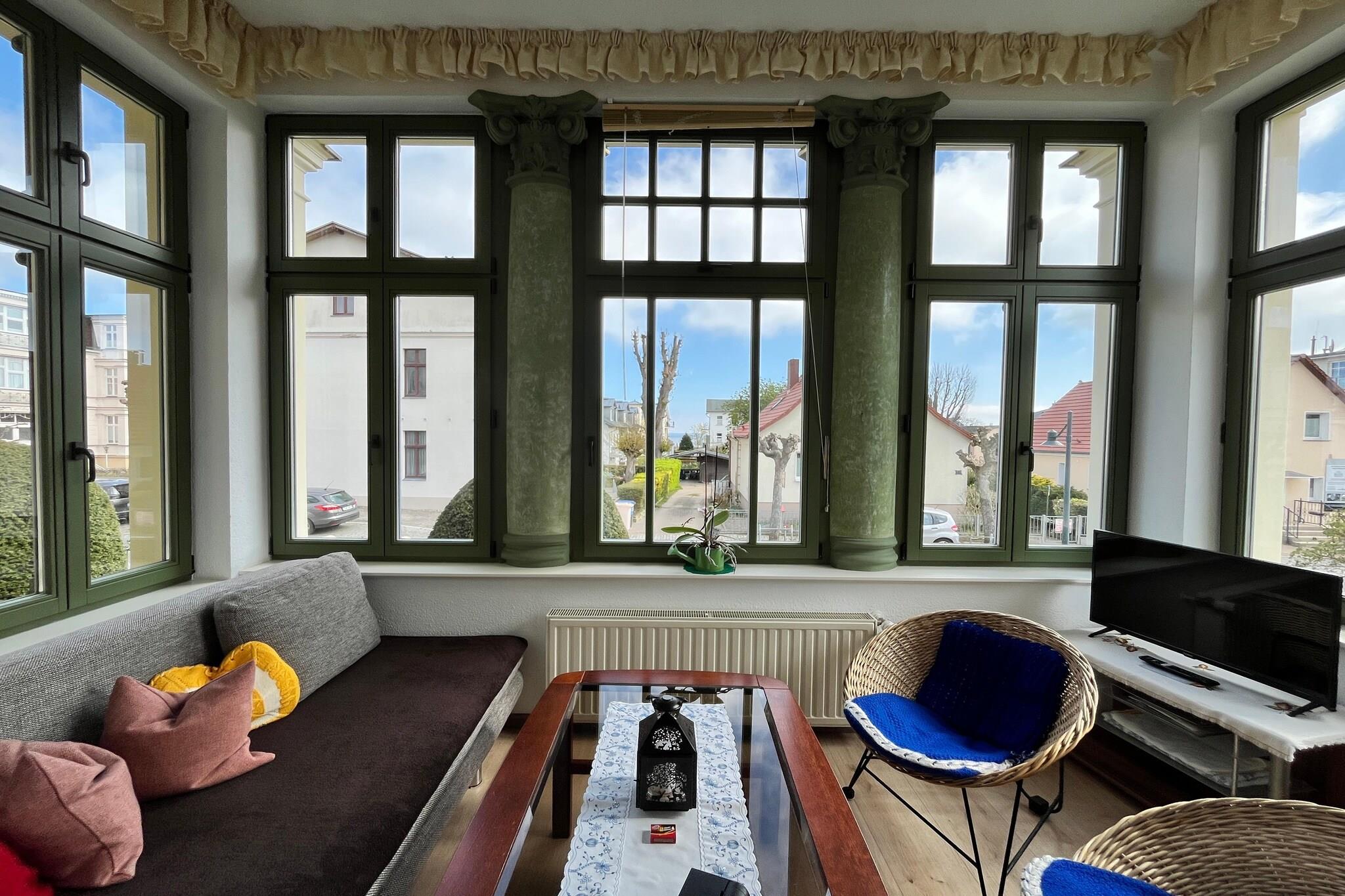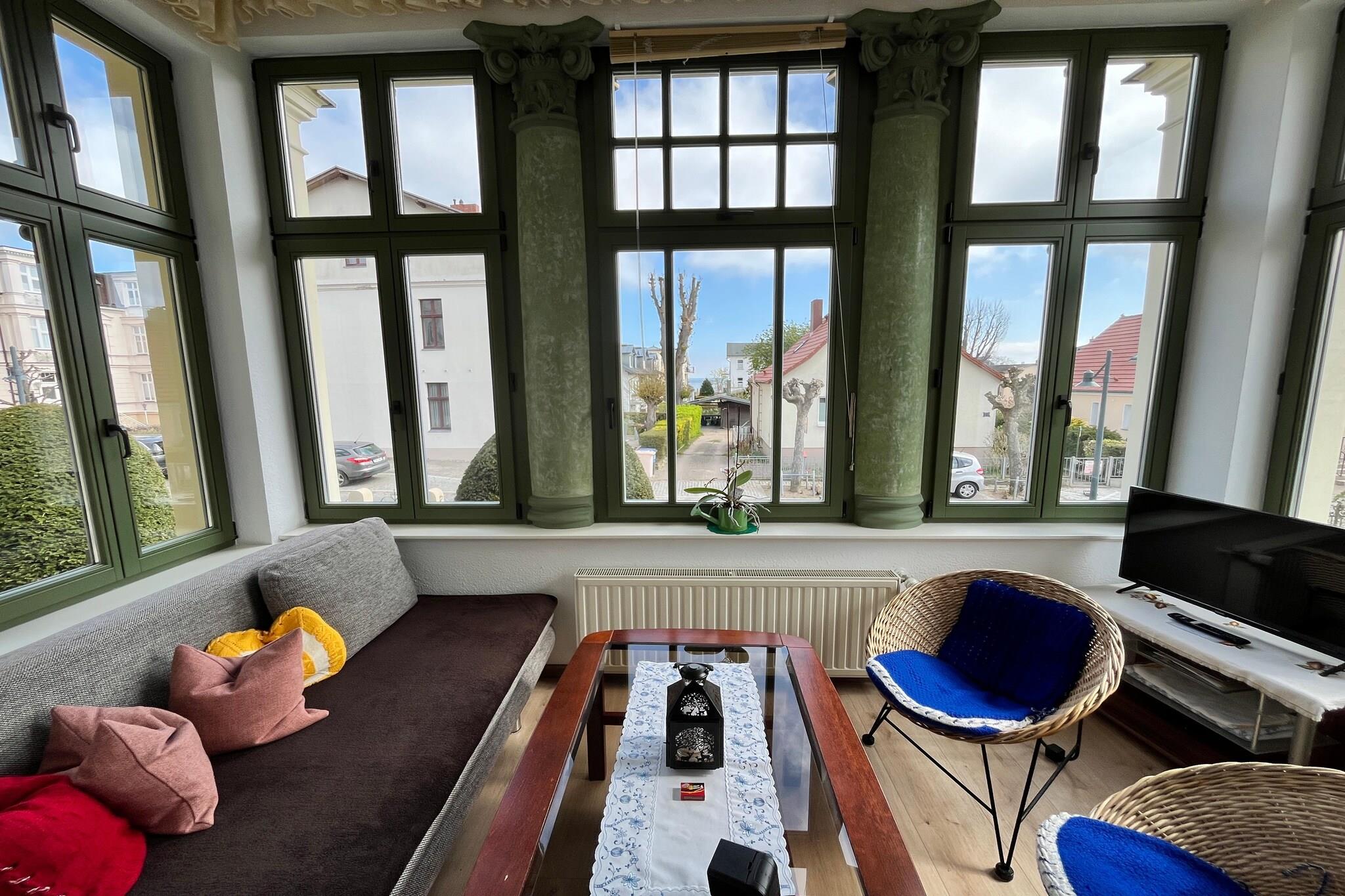 Dejlig lejlighed i stueetagen i en fuldt restaureret villa med en central beliggenhed. Den nydesignede strandpromenade ligger i umiddelbar nærhed. Ahlbeck er stedet for alle, der leder efter en bred vifte af underholdning. Her kan du ikke kun spise godt og slentre langs den lange boulevard, men også nyde en række kulturelle begivenheder. Vil du være lidt mere aktiv, kan du bruge naturen ved Østersøen og Achterwasser til lange gåture. Aktiviteter i nærheden: Værd at se:. Den historiske Ahlbeck mole og den imponerende villaer i stil med klassicistiske spa-arkitektur, som du finder langs klitten vej, der løber parallelt med strandpromenaden Centralt beliggende i de 3 kejserlige bade i Ahlbeck, Heringsdorf da Bansin er det populære OstseeTherme eventyrbad, som byder på wellness og svømmesjov for store og små Ikke egnet til personer med nedsat mobilitet
