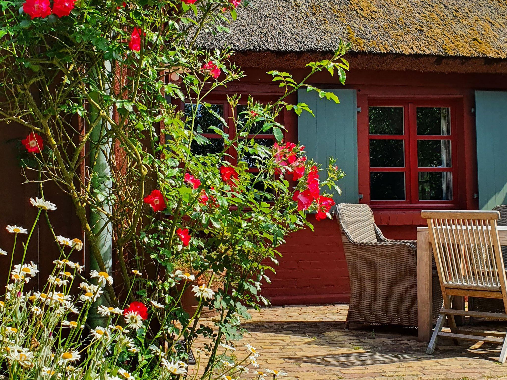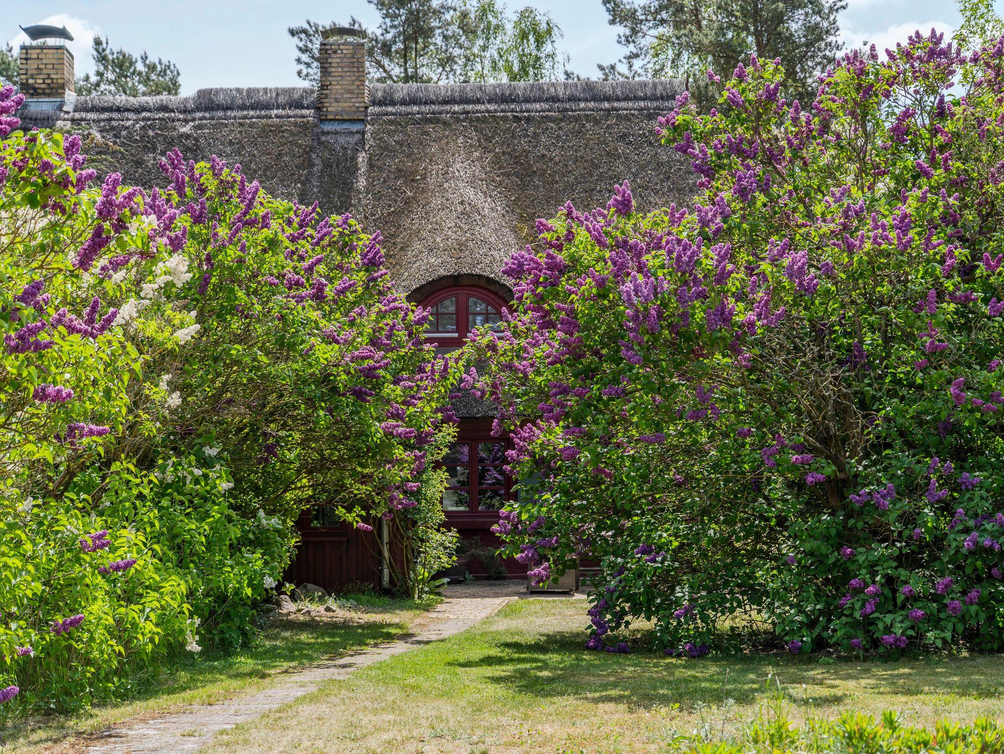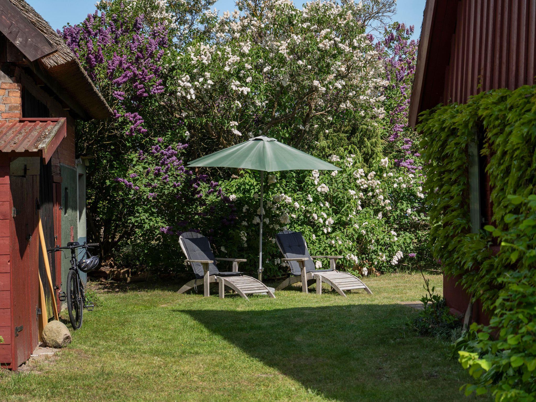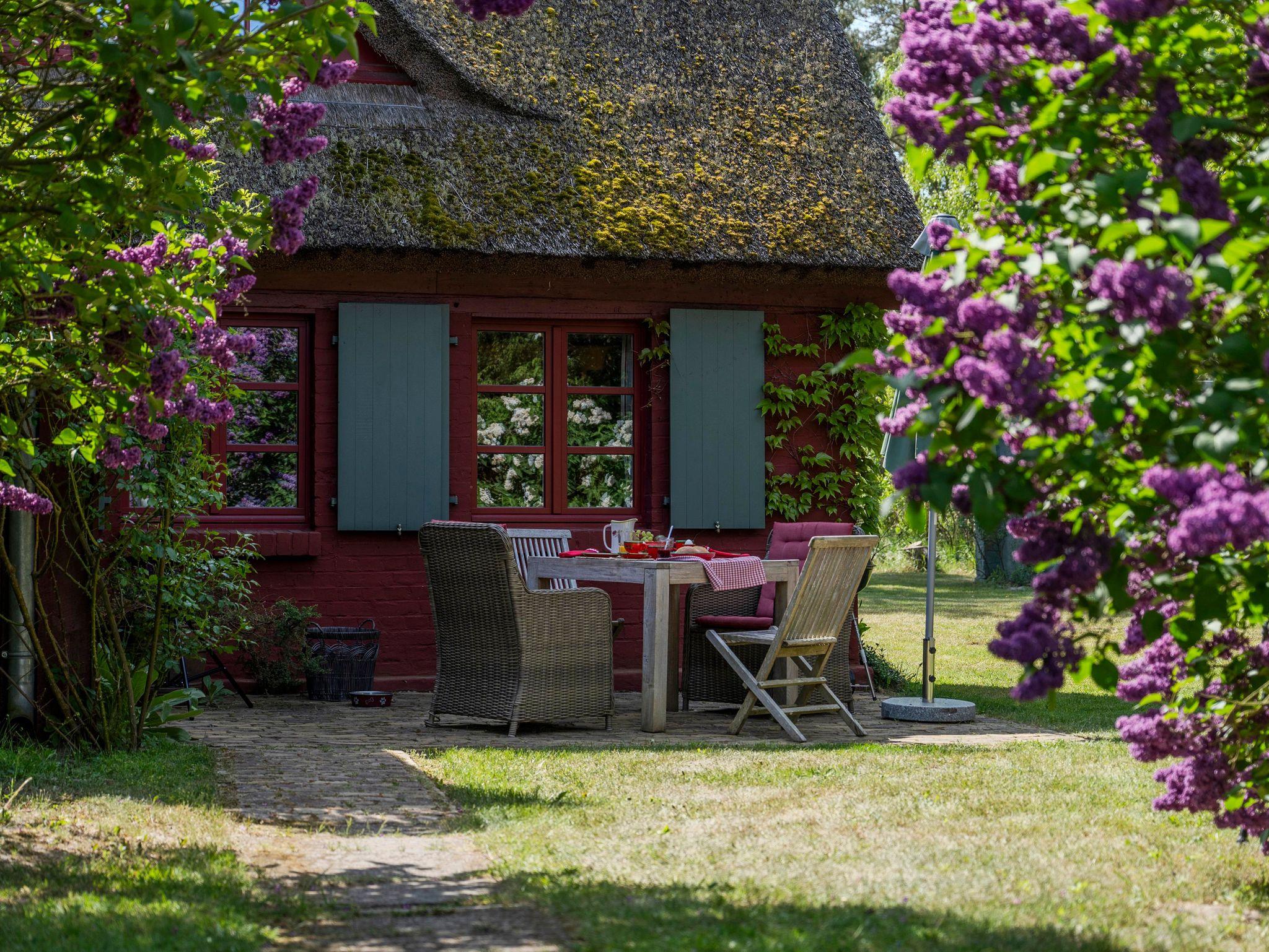 Vor dem Haus liegt die Südterrasse mit Teakholzmöbeln. Im großen Bauerngarten, der das Haus umgibt, warten weitere Rückzugsecken zum Lesen oder Dösen auf Sie. Hinter dem Grundstück beginnt ein kleiner Radrundweg, welcher zum Ahlbecker Fenn mit seinem Aussichtsturm und weiter zum Neuwarper See mit seiner Badestelle führt.