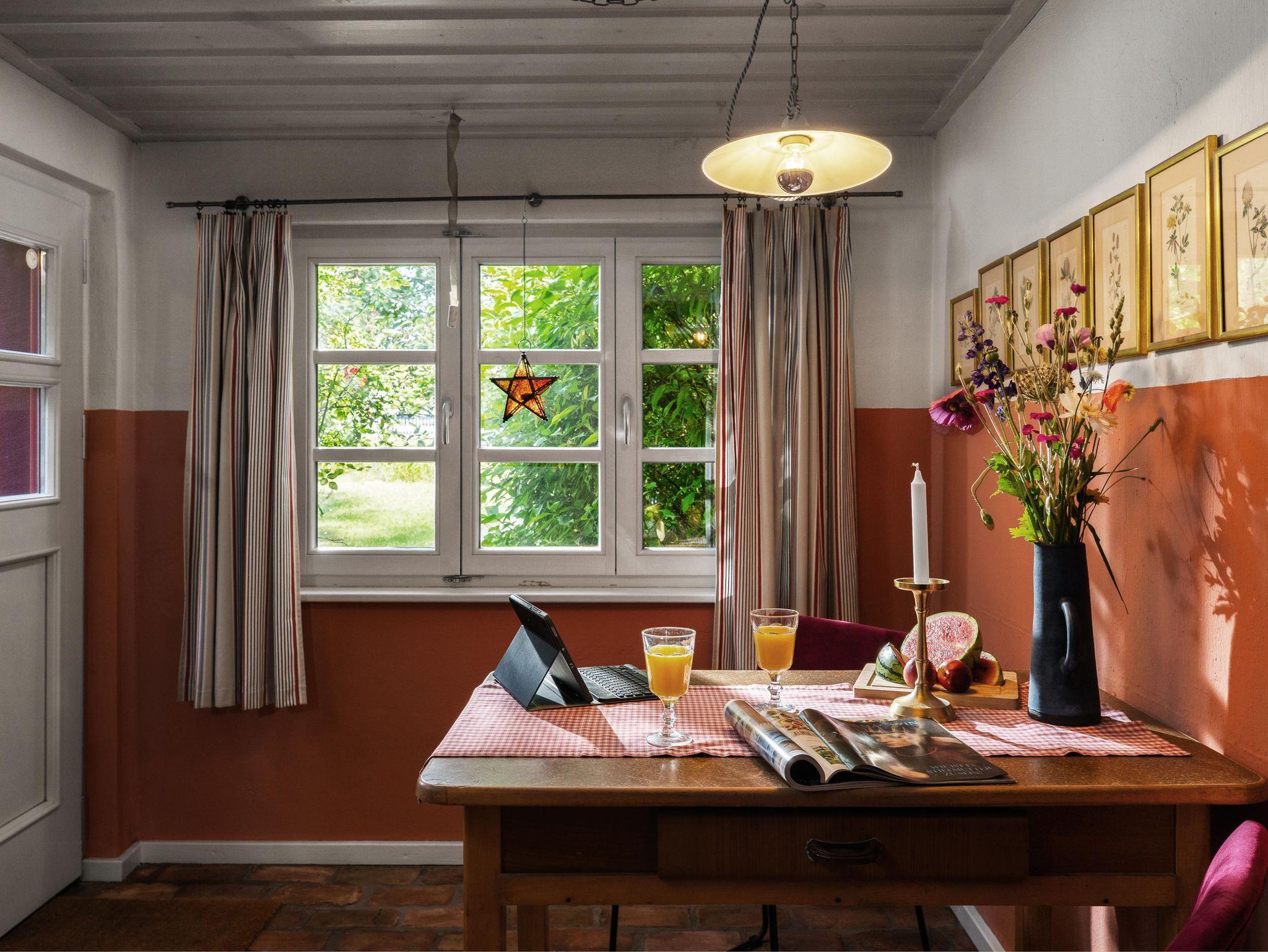 Unser Ferienhaus Roter Schwede mit seinem besonderen Charme, den individuell ausgestatteten Räumen mit antiken, zum Teil noch im Original erhaltenen und liebevoll restaurierten Möbeln wird Sie begeistern. Die leicht unregelmäßige Struktur der mit Hand verputzten Lehmwände, der Duft und die Maserung der geölten Dielen und die in Würde gealterten Fachwerkbalken sind nicht nur für Freunde historischer Gebäude etwas ganz Besonderes. Im großen, komplett umzäunten Garten, der neben der mit Teakmöbeln ausgestatteten Sonnenterrasse diverse andere Rückzugsorte bietet, kommen die Liebhaber eines naturnah und liebevoll gestalteten Gartens voll auf ihr Kosten. Und die hintere Gartenpforte führt auf verschlungenen Pfaden zu einem versteckten Naturlehrpfad und Radwanderweg, der Sie fernab der befahrenen Straßen durch die Ueckermünder Heidelandschaft in die nahegelegenen Nachbarorte des Riether Winkels führt, nach Ludwigshof und weiter nach Rieth ans Wasser.