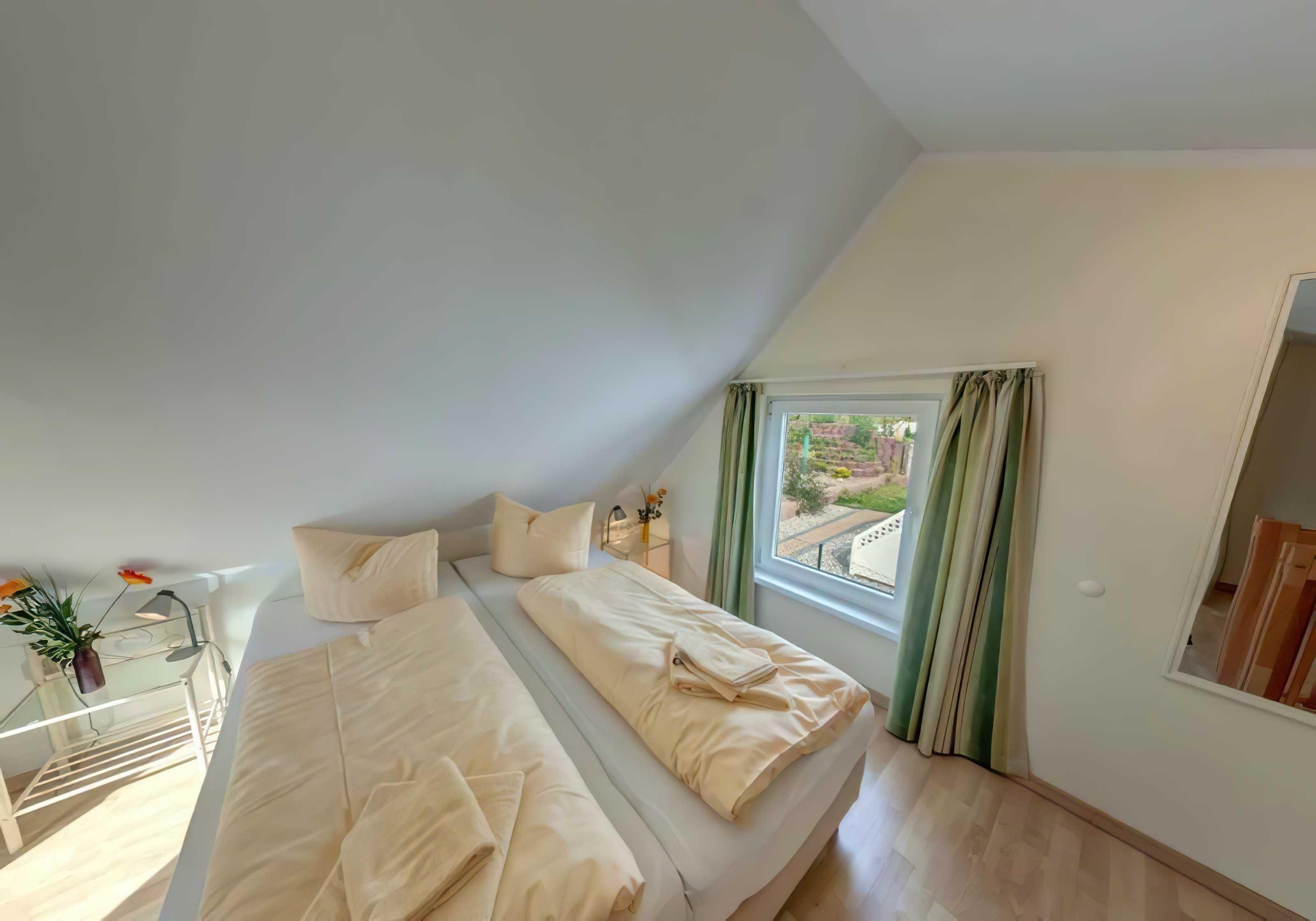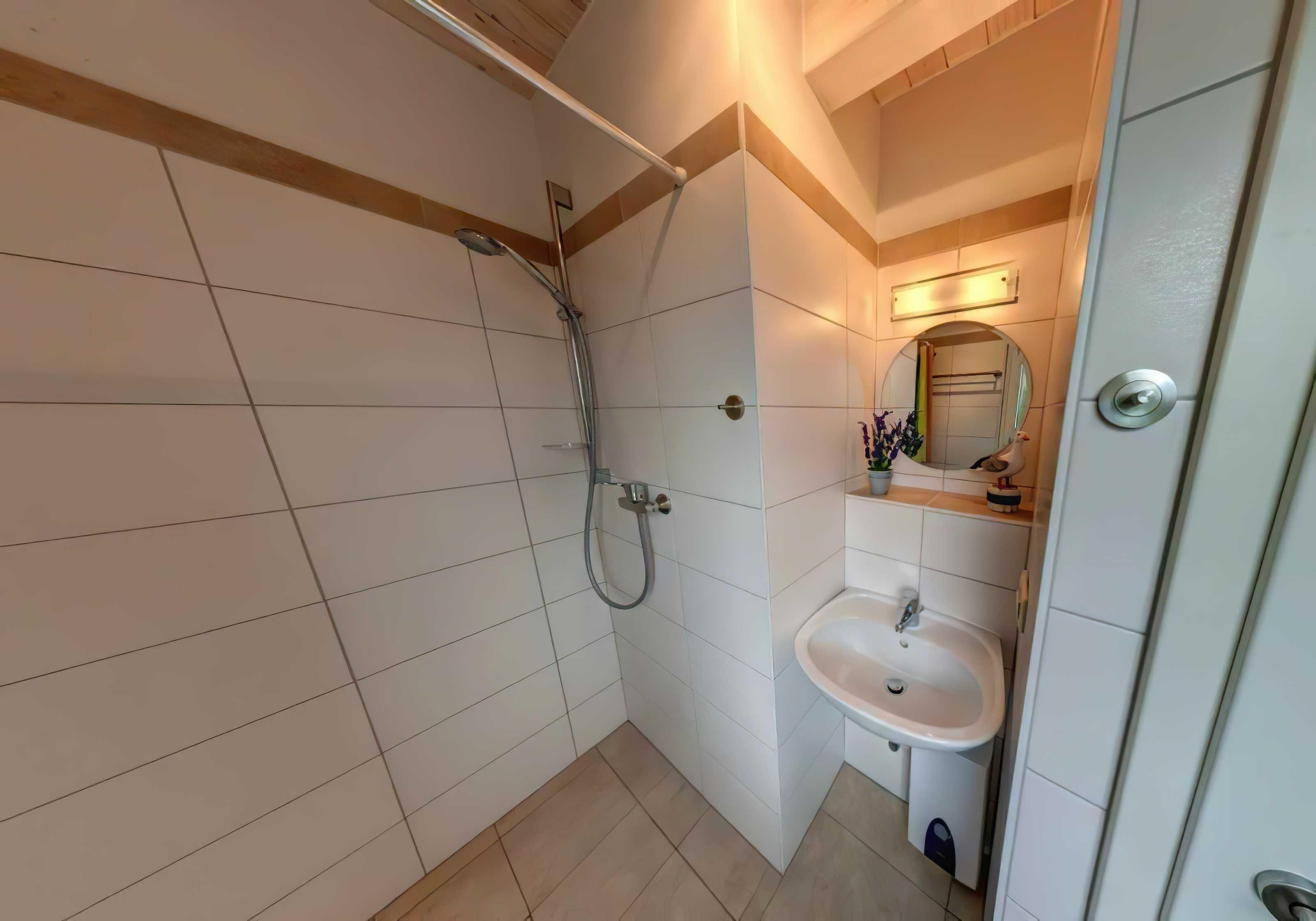 2 Etagen, ca. 54 m² (4 Personen) Zur Ausstattung gehören ein Schlafzimmer mit Doppeltbett und ein Schlafzimmer mit 2 Einzelbetten. Zur weiteren Ausstattung gehören ein Wohnzimmer mit integrierter vollausgestatteter Küche (Geschirrspüler, Ceranherd mit Backofen, Mikrowelle, Kaffeemaschine) einem Bad mit Dusche/WC und einer großen Terrasse mit Sitzmöglichkeiten.