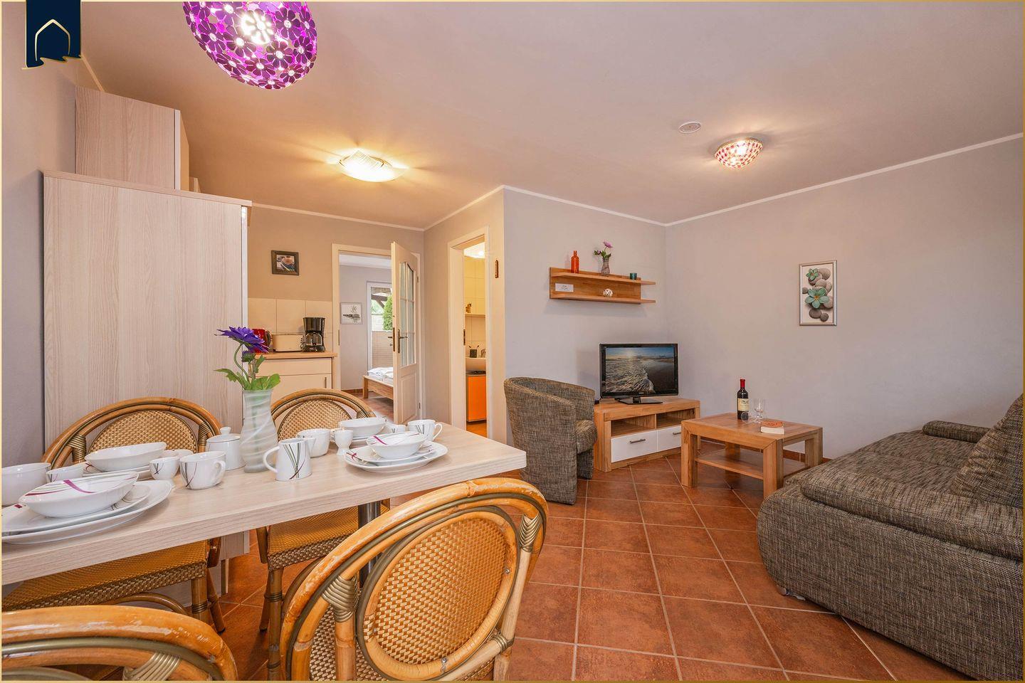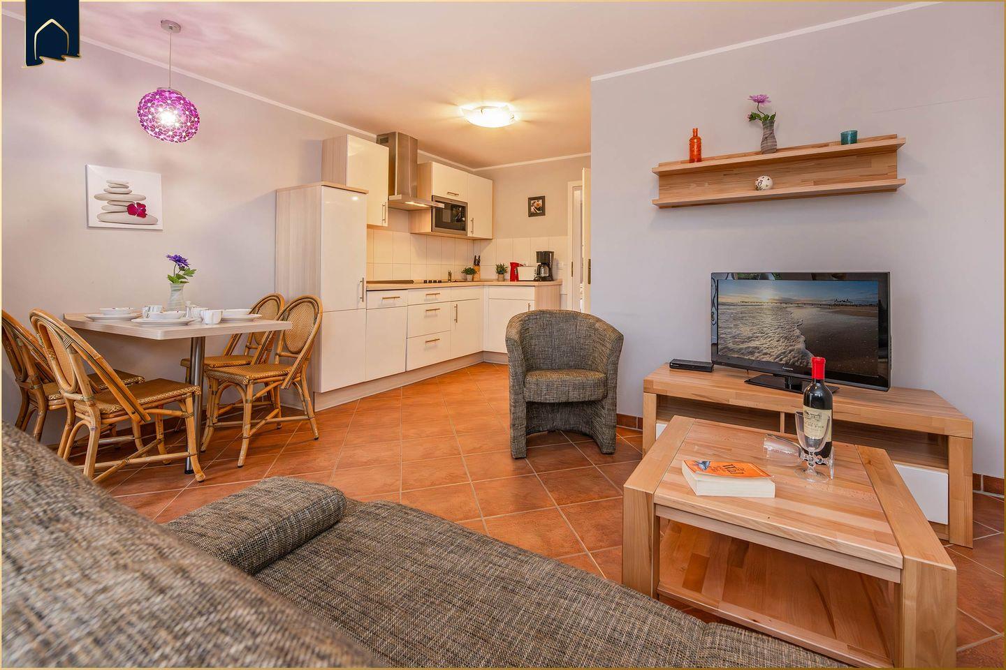 Diese gemütliche Ferienwohnung auf Usedom bietet auf 35?m² ein perfekt abgestimmtes Raumkonzept für bis zu 4 Personen. Mit einem separaten Schlafzimmer, einem komfortablen Wohnbereich mit Schlafsofa, einem modernen Badezimmer mit Dusche und einer voll ausgestatteten Küche eignet sich die Unterkunft ideal für Paare oder kleine Familien. Der gemütliche Esstisch lädt zu gemeinsamen Mahlzeiten ein, und ein Ganzkörperspiegel sowie zahlreiche Fenster sorgen für ein luftiges, freundliches Raumgefühl.