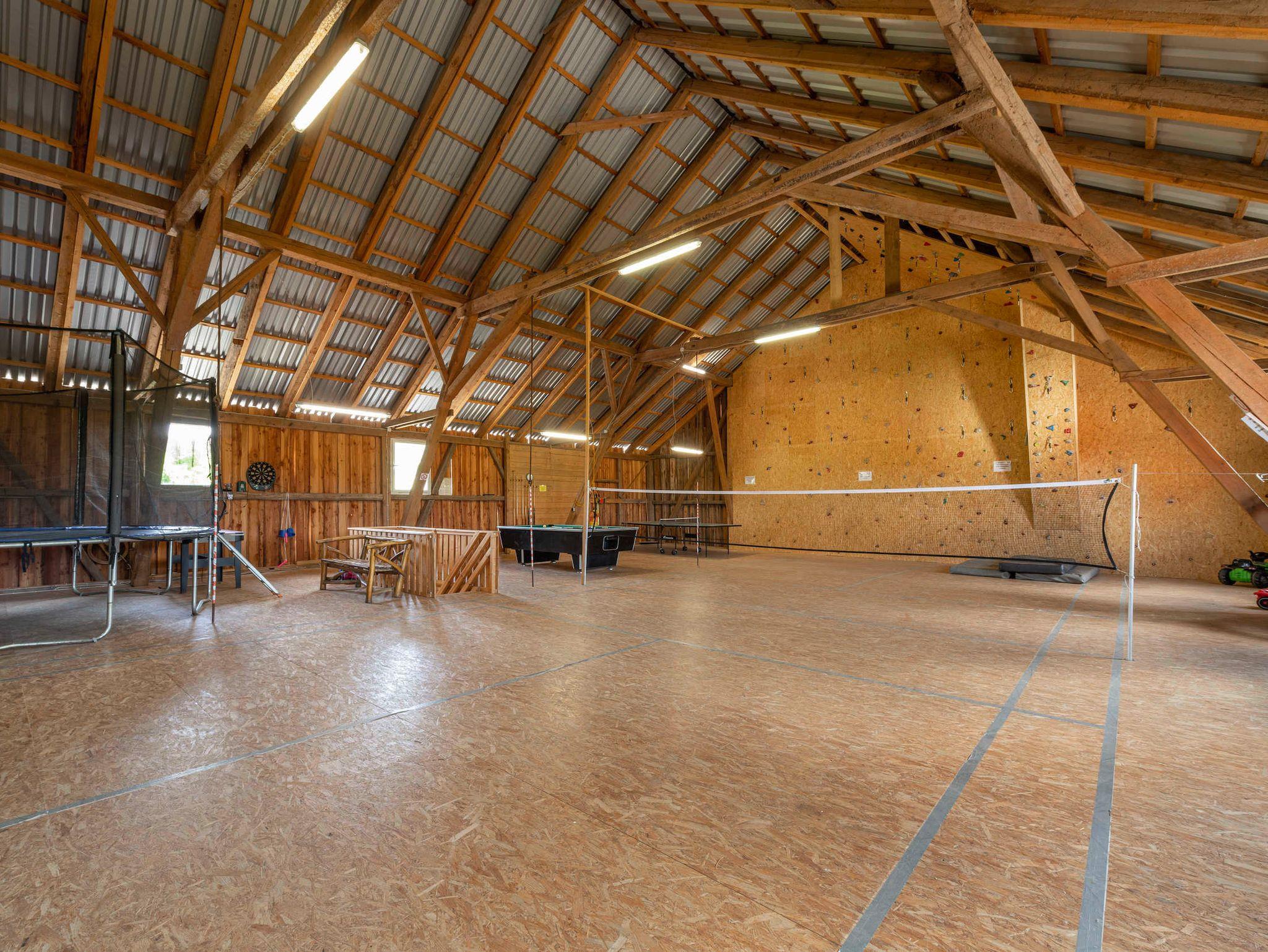 * 200 qm Indoor Spielscheune , mit original Badmintonfeld, Billard, Kicker, Tischtennis, Airhockey, Dart, Kletterwand, Riesentrampolin, Kletterturm mit Rutsche und Schaukel .... und viel Platz zum Toben und Spielen.* Spiel- und Liegewiese mit Sandkasten, Kinderspielhaus.