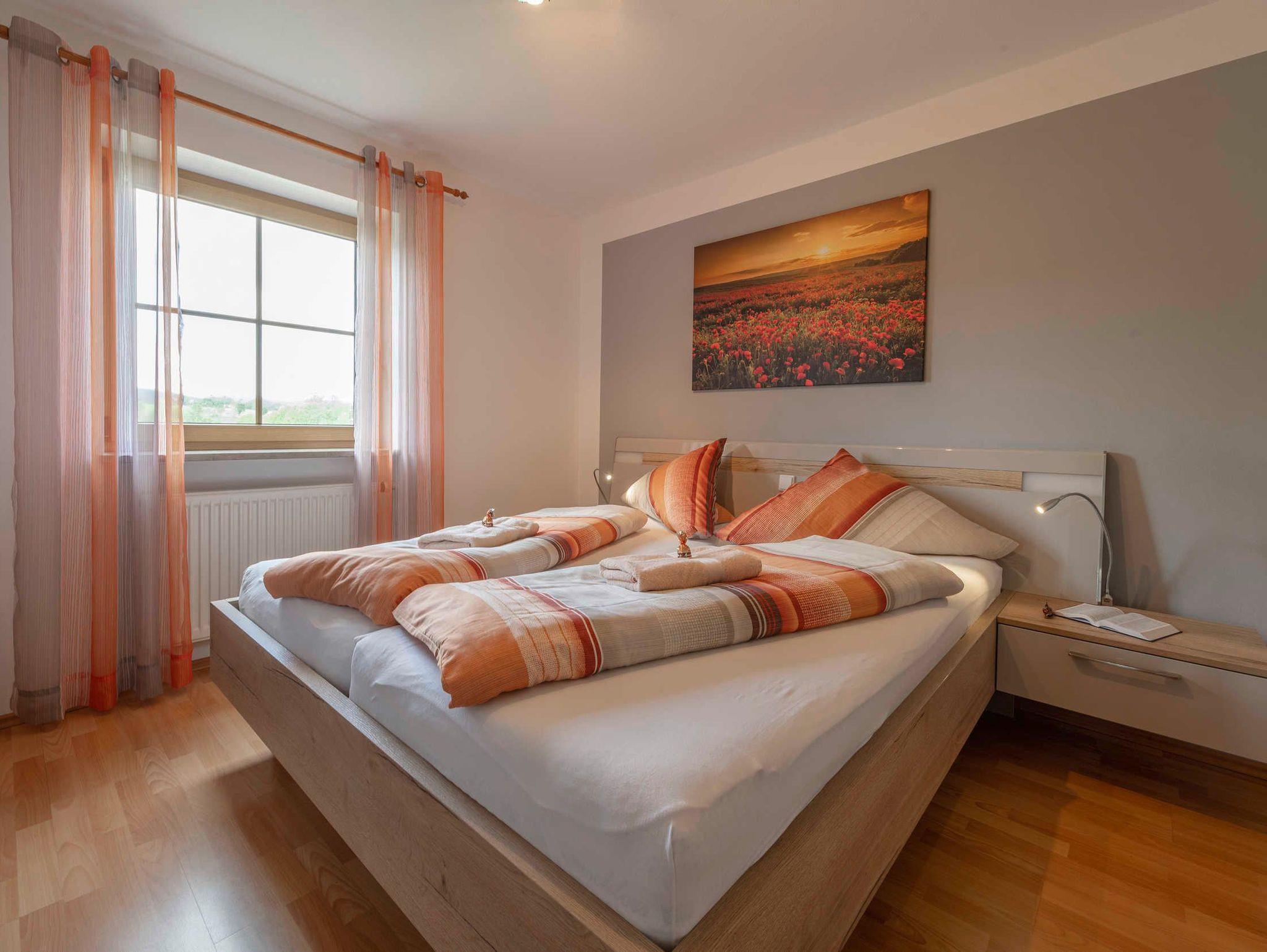 • ein Schlafzimmer, Bett 1,80 x 2,00m mit übergroßen Bettdecken und komfortabler Einstieghöhe von 58 cm, Radiowecker, Safe, kostenlose Leihbademäntel, Fliegenschutz am Fenster.