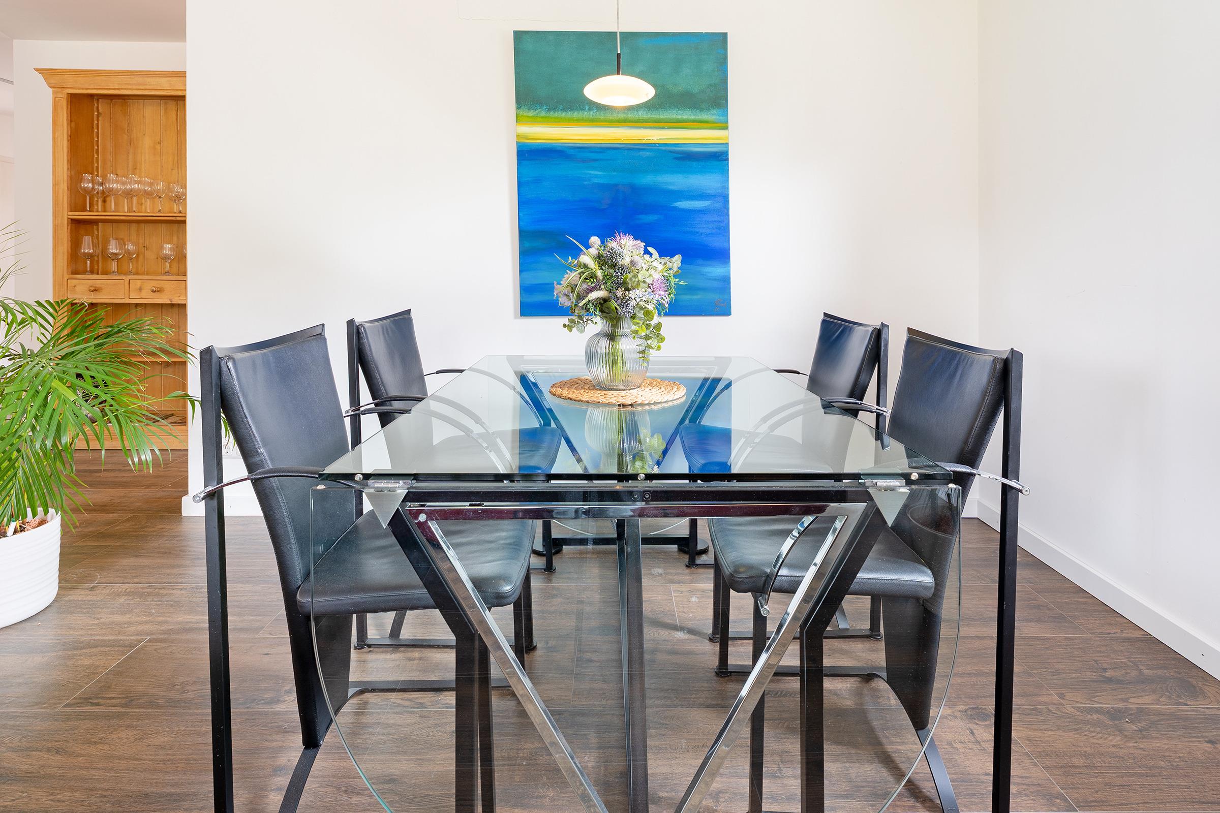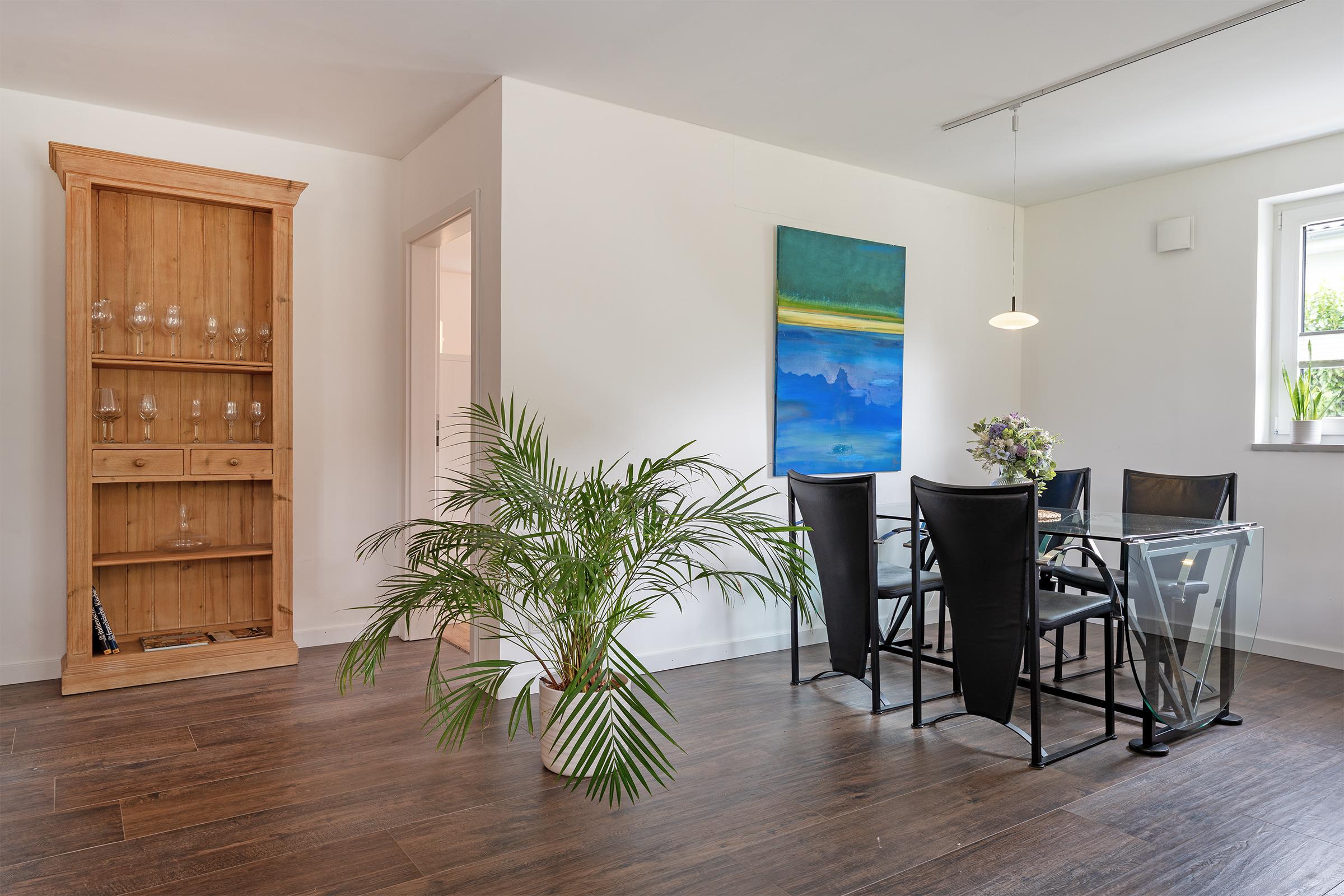 Die offene Küche lässt keine Wünsche offen: Ausgestattet mit Cerankochfeld, Gefrierschrank, Backofen, Geschirrspüler, Wasserkocher, Toaster und einer Nespresso-Maschine genießen Sie hier vollen Komfort. Der angrenzende Essbereich lädt zu gemeinsamen Mahlzeiten ein. Zwei gemütliche Schlafzimmer bieten Platz für insgesamt vier Personen – eines davon mit einem Doppelboxspringbett, das andere mit einem Schlafsofa.