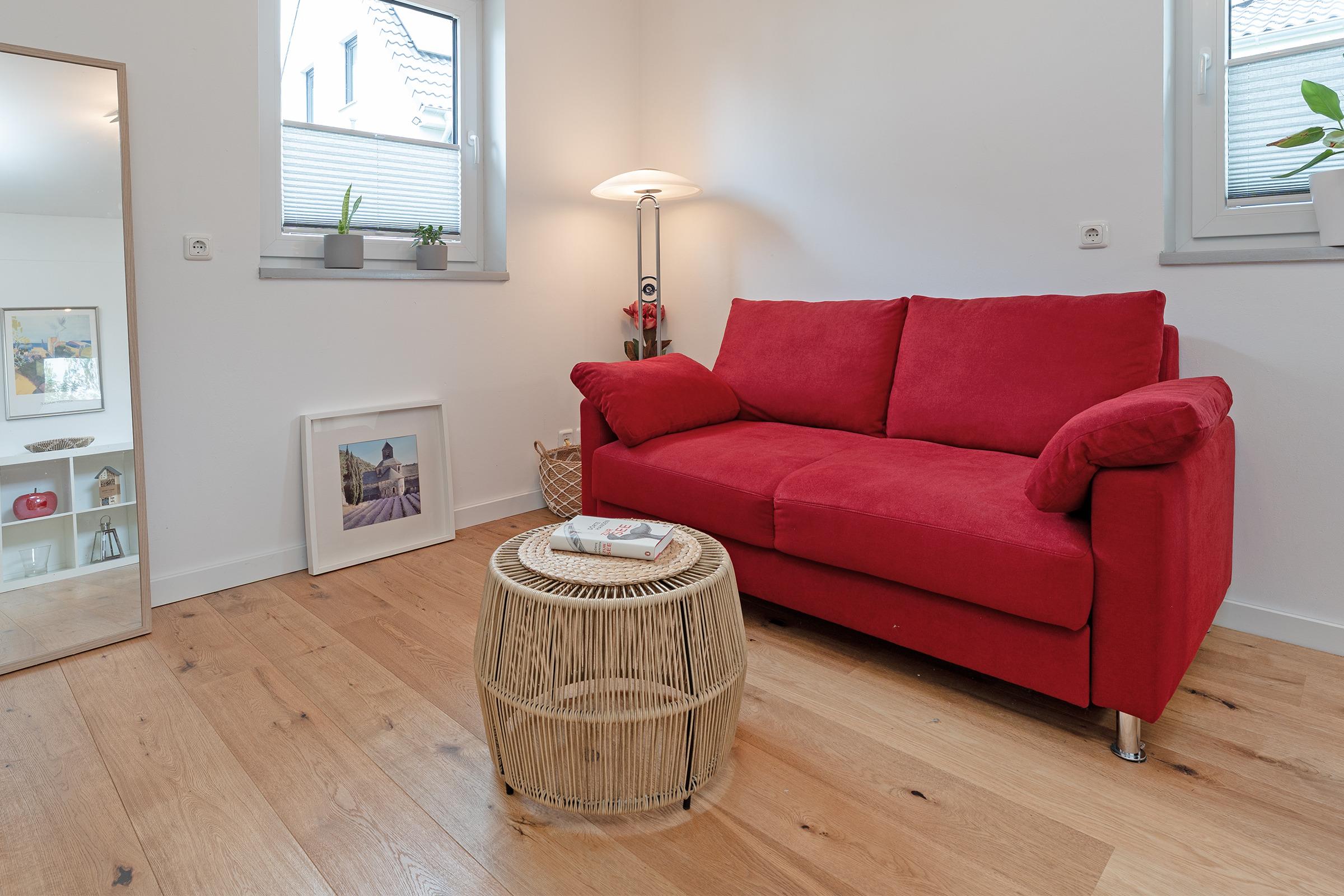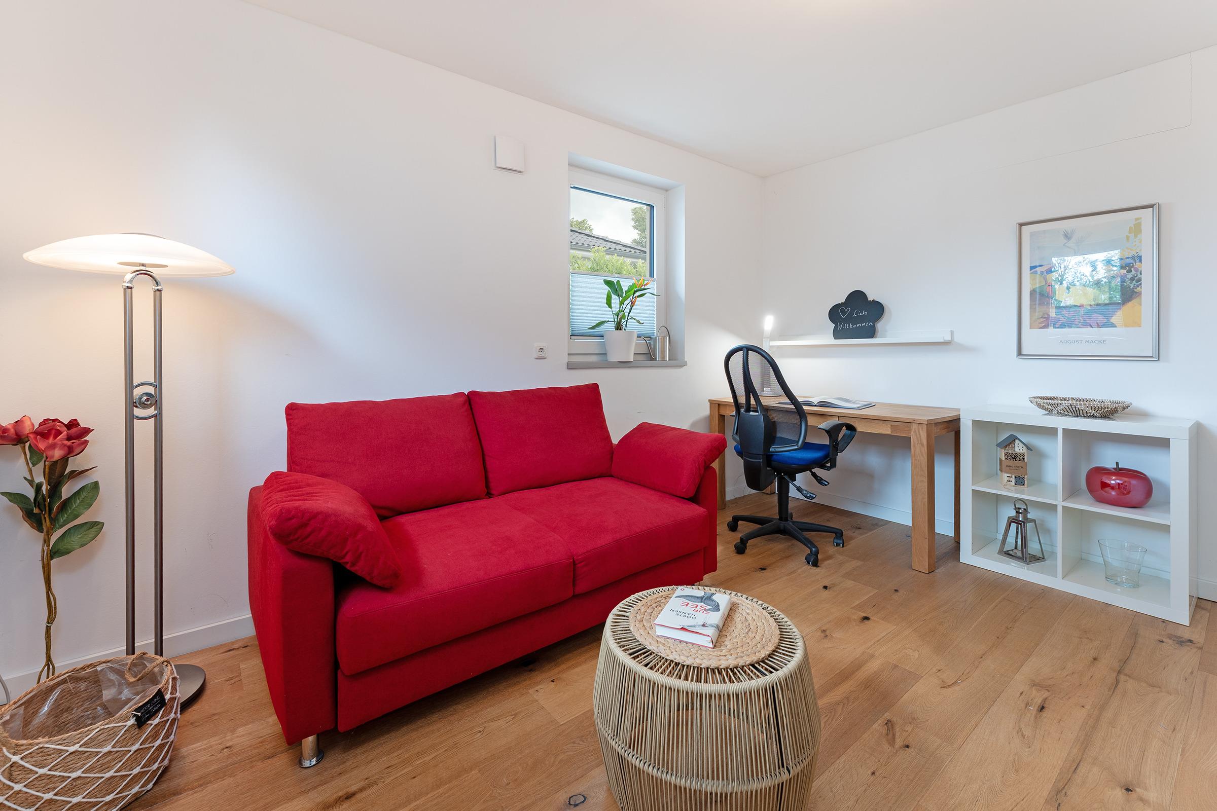 Schlafzimmer 2: 1 Schlafsofa (140x200 cm), TV, Verdunkelung: Plissee, Platz für ein Babybett vorhanden